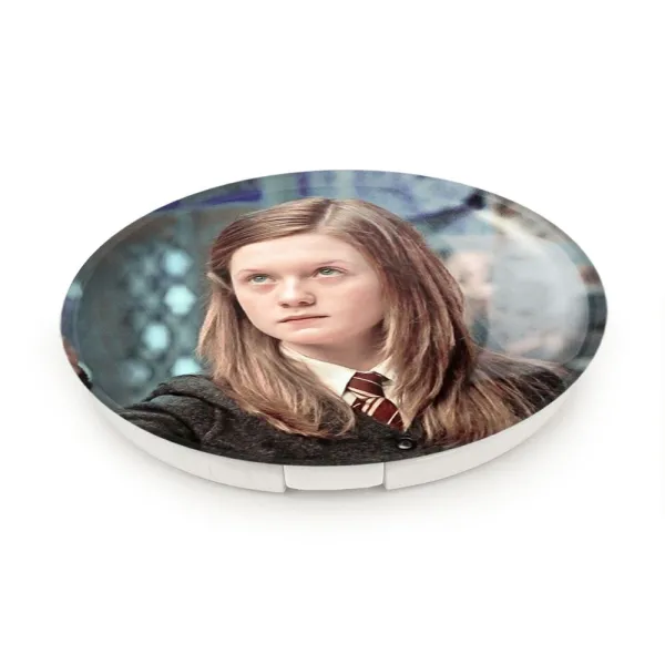 آینه های تاشو جینی هری پاتر Harry Potter خندالو، از جنس پلاستیک فشرده ABS تولید شده و به رنگ سفید می باشد. یکی از آینه ها ابعاد واقعی را نشان داده و دیگری با قابلیت بزرگنمایی، جزئیات را بهتر نمایش می دهد. ابعاد هر یک از آینه ها، دایره ای به قطر 7.5 سانت می باشد که نه خیلی بزرگ و غیر قابل استفاده در کیف آرایشی ست و نه خیلی کوچک که تصویر خاصی در آن مشاهده نشود. آینه تاشو جینی هری پاتر Harry Potter سایزی استاندارد و کارآمد دارد و در هر کیفی جا میگیرد. چاپ طرح بوسیله چاپگرهای دیجیتال شش رنگ با شفافیت و کیفیتی مثال زدنی بر روی یک وجه از بدنه ی آینه انجام گرفته و با روکش لمینت حرارتی پوشیده شده که در مقابل آسیب و خط و خش مقاوم بوده و کیفیت بالایی دارد. درب آینه بوسیله قفل بدنه ی آن، باز نمی ماند و کاملا بسته می شود و مناسب قرار گیری در کیف لوازم آرایش و کیف های کوچک دستی نیز هست. آینه های تاشو جینی هری پاتر Harry Potter خندالو با تنوع طرحی بسیار بالا، سلیقه هر نوع مخاطبی را تامین میکند.