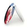 آینه های تاشو جیوو گروه کارد KARD خندالو، از جنس پلاستیک فشرده ABS تولید شده و به رنگ سفید می باشد. یکی از آینه ها ابعاد واقعی را نشان داده و دیگری با قابلیت بزرگنمایی، جزئیات را بهتر نمایش می دهد. ابعاد هر یک از آینه ها، دایره ای به قطر 7.5 سانت می باشد که نه خیلی بزرگ و غیر قابل استفاده در کیف آرایشی ست و نه خیلی کوچک که تصویر خاصی در آن مشاهده نشود. آینه تاشو جیوو گروه کارد KARD سایزی استاندارد و کارآمد دارد و در هر کیفی جا میگیرد. چاپ طرح بوسیله چاپگرهای دیجیتال شش رنگ با شفافیت و کیفیتی مثال زدنی بر روی یک وجه از بدنه ی آینه انجام گرفته و با روکش لمینت حرارتی پوشیده شده که در مقابل آسیب و خط و خش مقاوم بوده و کیفیت بالایی دارد. درب آینه بوسیله قفل بدنه ی آن، باز نمی ماند و کاملا بسته می شود و مناسب قرار گیری در کیف لوازم آرایش و کیف های کوچک دستی نیز هست. آینه های تاشو جیوو گروه کارد KARD خندالو با تنوع طرحی بسیار بالا، سلیقه هر نوع مخاطبی را تامین میکند.