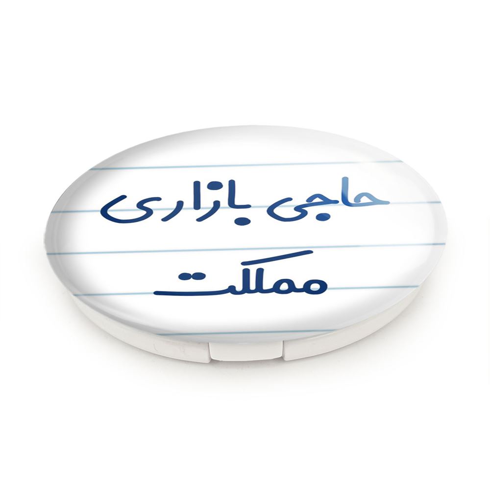 آینه های تاشو حاجی بازاری مملکت خندالو، از جنس پلاستیک فشرده ABS تولید شده و به رنگ سفید می باشد. یکی از آینه ها ابعاد واقعی را نشان داده و دیگری با قابلیت بزرگنمایی، جزئیات را بهتر نمایش می دهد. ابعاد هر یک از آینه ها، دایره ای به قطر 7.5 سانت می باشد که نه خیلی بزرگ و غیر قابل استفاده در کیف آرایشی ست و نه خیلی کوچک که تصویر خاصی در آن مشاهده نشود. آینه تاشو حاجی بازاری مملکت سایزی استاندارد و کارآمد دارد و در هر کیفی جا میگیرد. چاپ طرح بوسیله چاپگرهای دیجیتال شش رنگ با شفافیت و کیفیتی مثال زدنی بر روی یک وجه از بدنه ی آینه انجام گرفته و با روکش لمینت حرارتی پوشیده شده که در مقابل آسیب و خط و خش مقاوم بوده و کیفیت بالایی دارد. درب آینه بوسیله قفل بدنه ی آن، باز نمی ماند و کاملا بسته می شود و مناسب قرار گیری در کیف لوازم آرایش و کیف های کوچک دستی نیز هست. آینه های تاشو حاجی بازاری مملکت خندالو با تنوع طرحی بسیار بالا، سلیقه هر نوع مخاطبی را تامین میکند.