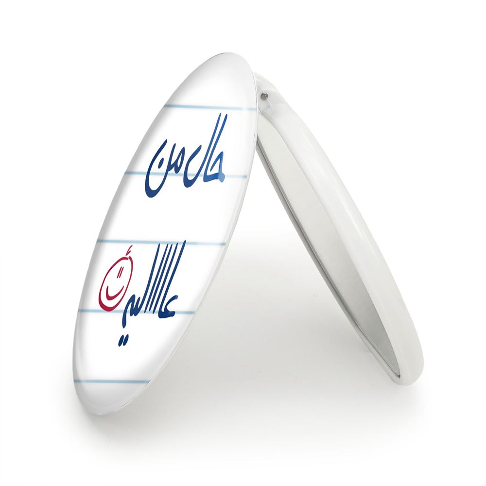 آینه های تاشو حال من عالیه خندالو، از جنس پلاستیک فشرده ABS تولید شده و به رنگ سفید می باشد. یکی از آینه ها ابعاد واقعی را نشان داده و دیگری با قابلیت بزرگنمایی، جزئیات را بهتر نمایش می دهد. ابعاد هر یک از آینه ها، دایره ای به قطر 7.5 سانت می باشد که نه خیلی بزرگ و غیر قابل استفاده در کیف آرایشی ست و نه خیلی کوچک که تصویر خاصی در آن مشاهده نشود. آینه تاشو حال من عالیه سایزی استاندارد و کارآمد دارد و در هر کیفی جا میگیرد. چاپ طرح بوسیله چاپگرهای دیجیتال شش رنگ با شفافیت و کیفیتی مثال زدنی بر روی یک وجه از بدنه ی آینه انجام گرفته و با روکش لمینت حرارتی پوشیده شده که در مقابل آسیب و خط و خش مقاوم بوده و کیفیت بالایی دارد. درب آینه بوسیله قفل بدنه ی آن، باز نمی ماند و کاملا بسته می شود و مناسب قرار گیری در کیف لوازم آرایش و کیف های کوچک دستی نیز هست. آینه های تاشو حال من عالیه خندالو با تنوع طرحی بسیار بالا، سلیقه هر نوع مخاطبی را تامین میکند.