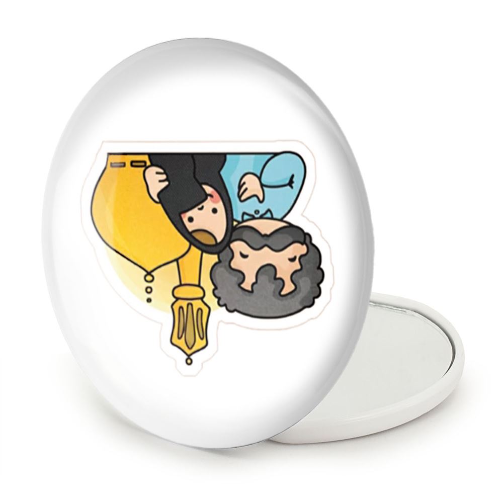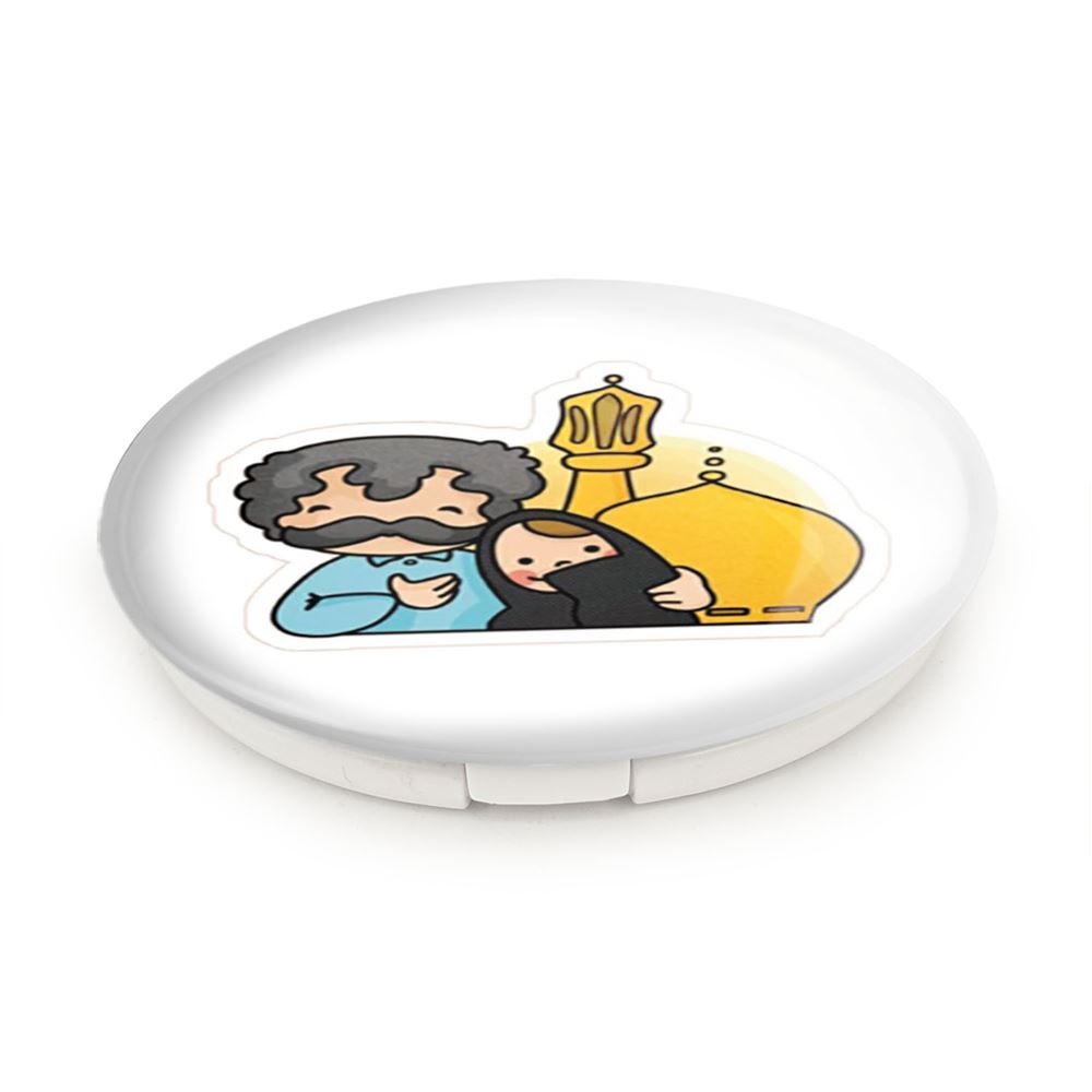 آینه های تاشو حرم امام رضا (ع) خندالو، از جنس پلاستیک فشرده ABS تولید شده و به رنگ سفید می باشد. یکی از آینه ها ابعاد واقعی را نشان داده و دیگری با قابلیت بزرگنمایی، جزئیات را بهتر نمایش می دهد. ابعاد هر یک از آینه ها، دایره ای به قطر 7.5 سانت می باشد که نه خیلی بزرگ و غیر قابل استفاده در کیف آرایشی ست و نه خیلی کوچک که تصویر خاصی در آن مشاهده نشود. آینه تاشو حرم امام رضا (ع) سایزی استاندارد و کارآمد دارد و در هر کیفی جا میگیرد. چاپ طرح بوسیله چاپگرهای دیجیتال شش رنگ با شفافیت و کیفیتی مثال زدنی بر روی یک وجه از بدنه ی آینه انجام گرفته و با روکش لمینت حرارتی پوشیده شده که در مقابل آسیب و خط و خش مقاوم بوده و کیفیت بالایی دارد. درب آینه بوسیله قفل بدنه ی آن، باز نمی ماند و کاملا بسته می شود و مناسب قرار گیری در کیف لوازم آرایش و کیف های کوچک دستی نیز هست. آینه های تاشو حرم امام رضا (ع) خندالو با تنوع طرحی بسیار بالا، سلیقه هر نوع مخاطبی را تامین میکند.
