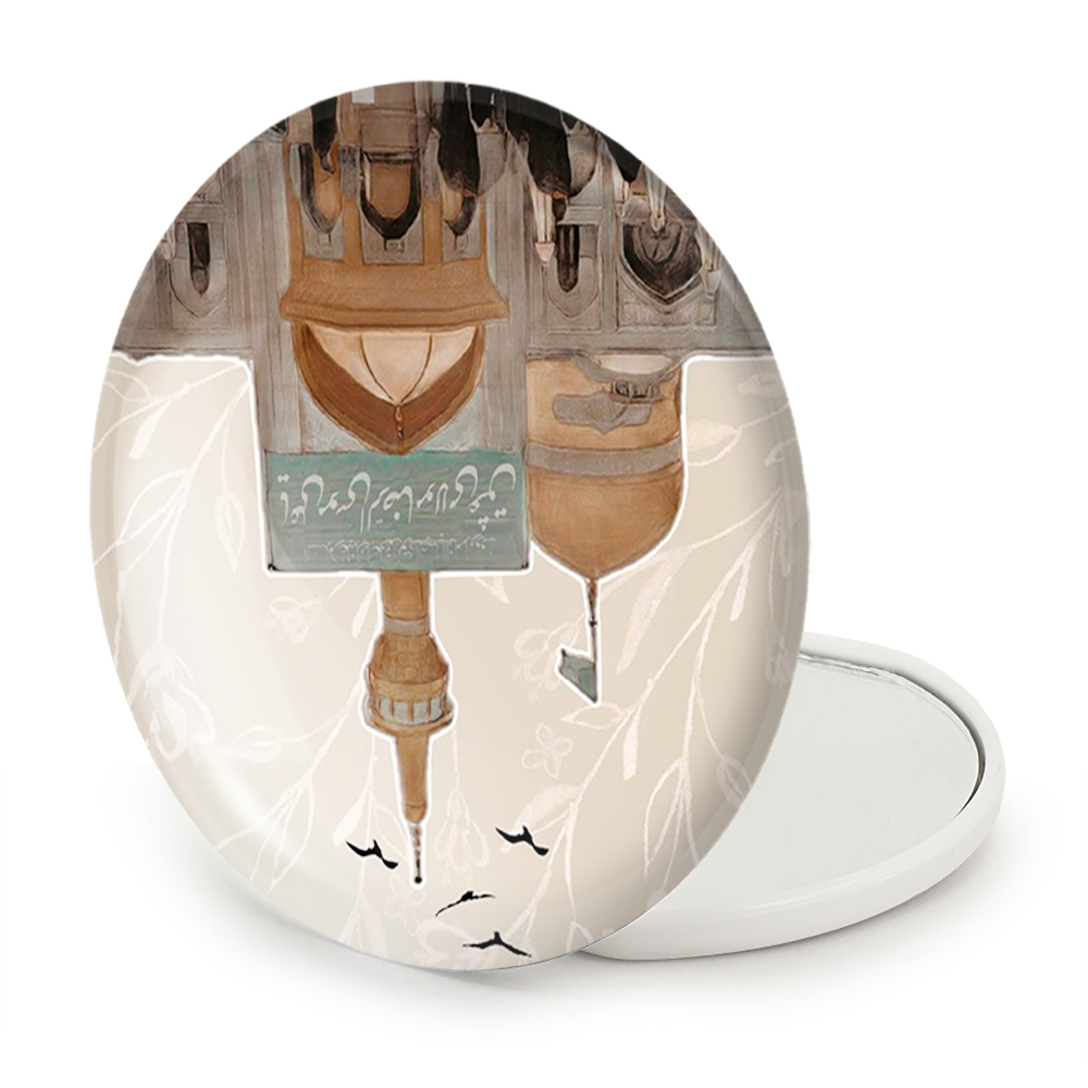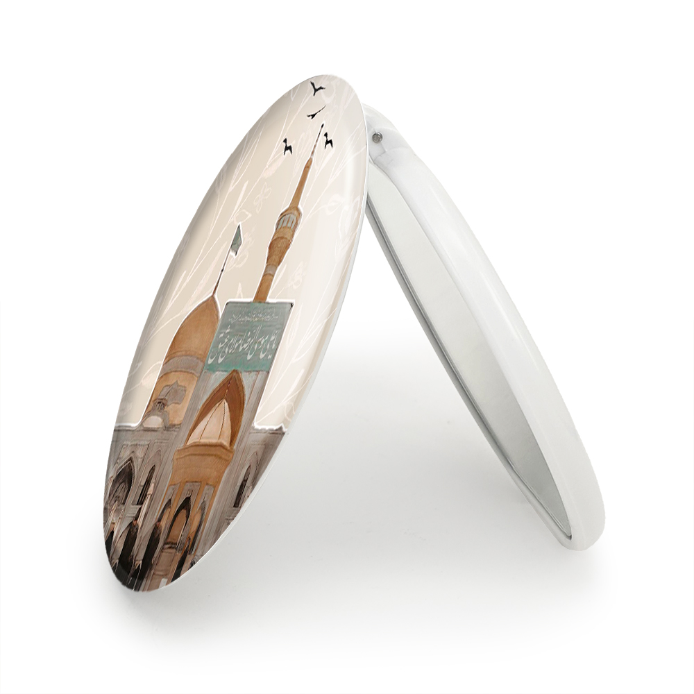 آینه های تاشو حرم امام رضا خندالو، از جنس پلاستیک فشرده ABS تولید شده و به رنگ سفید می باشد. یکی از آینه ها ابعاد واقعی را نشان داده و دیگری با قابلیت بزرگنمایی، جزئیات را بهتر نمایش می دهد.