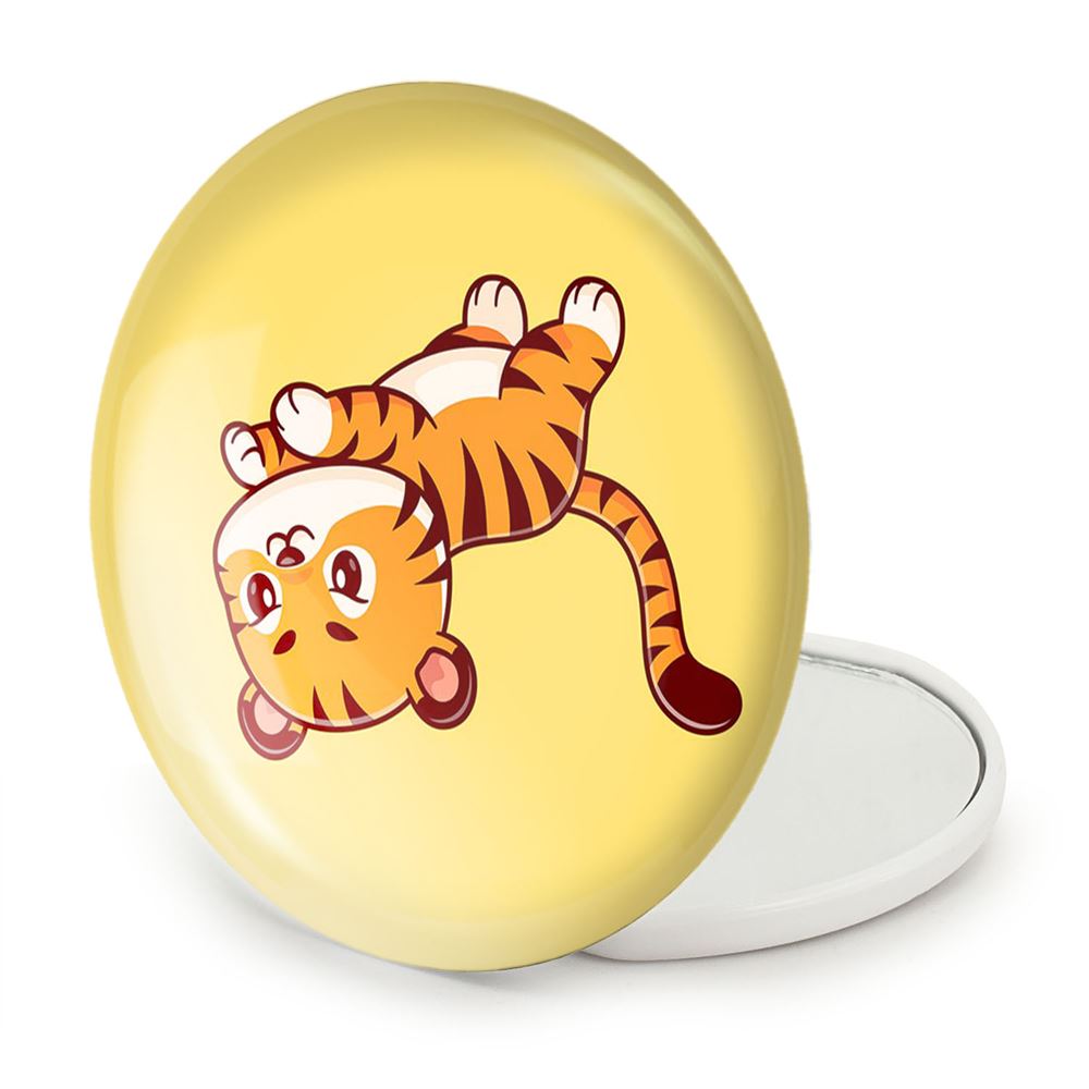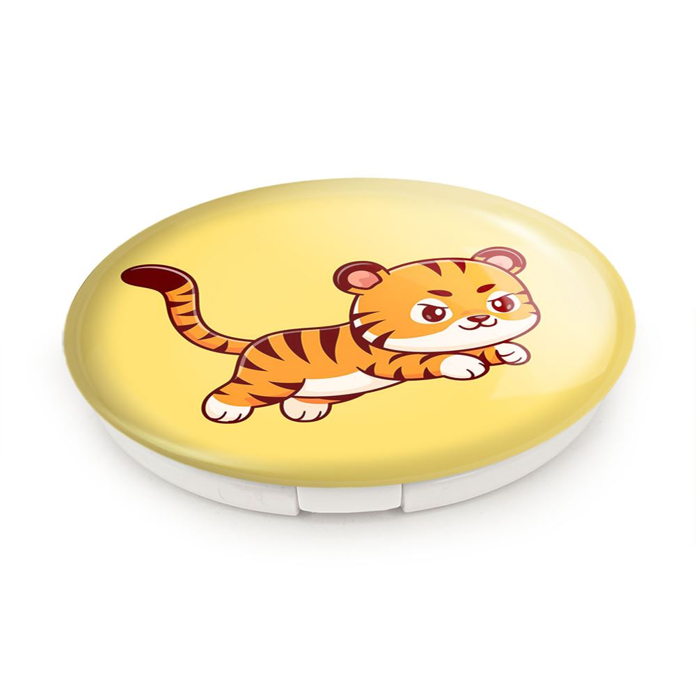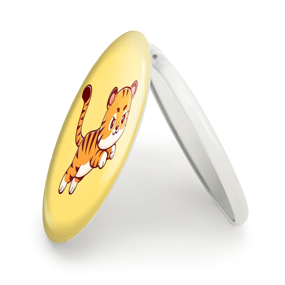 آینه های تاشو حیوانات بامزه ببر خندالو، از جنس پلاستیک فشرده ABS تولید شده و به رنگ سفید می باشد. یکی از آینه ها ابعاد واقعی را نشان داده و دیگری با قابلیت بزرگنمایی، جزئیات را بهتر نمایش می دهد. ابعاد هر یک از آینه ها، دایره ای به قطر 7.5 سانت می باشد که نه خیلی بزرگ و غیر قابل استفاده در کیف آرایشی ست و نه خیلی کوچک که تصویر خاصی در آن مشاهده نشود. آینه تاشو حیوانات بامزه ببر سایزی استاندارد و کارآمد دارد و در هر کیفی جا میگیرد. چاپ طرح بوسیله چاپگرهای دیجیتال شش رنگ با شفافیت و کیفیتی مثال زدنی بر روی یک وجه از بدنه ی آینه انجام گرفته و با روکش لمینت حرارتی پوشیده شده که در مقابل آسیب و خط و خش مقاوم بوده و کیفیت بالایی دارد. درب آینه بوسیله قفل بدنه ی آن، باز نمی ماند و کاملا بسته می شود و مناسب قرار گیری در کیف لوازم آرایش و کیف های کوچک دستی نیز هست. آینه های تاشو حیوانات بامزه ببر خندالو با تنوع طرحی بسیار بالا، سلیقه هر نوع مخاطبی را تامین میکند.