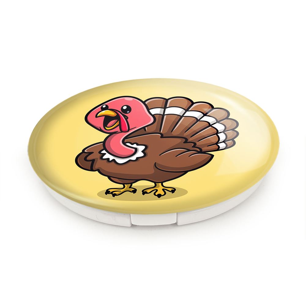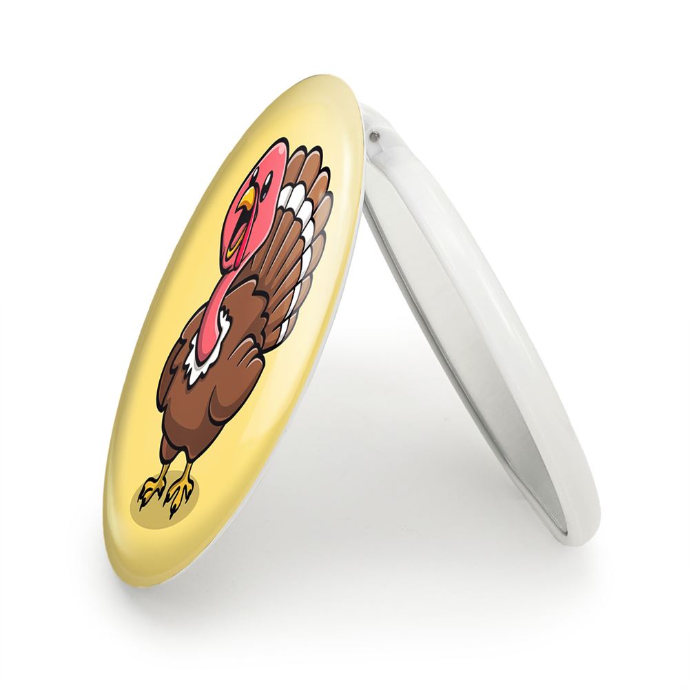آینه های تاشو حیوانات بامزه بوقلمون خندالو، از جنس پلاستیک فشرده ABS تولید شده و به رنگ سفید می باشد. یکی از آینه ها ابعاد واقعی را نشان داده و دیگری با قابلیت بزرگنمایی، جزئیات را بهتر نمایش می دهد. ابعاد هر یک از آینه ها، دایره ای به قطر 7.5 سانت می باشد که نه خیلی بزرگ و غیر قابل استفاده در کیف آرایشی ست و نه خیلی کوچک که تصویر خاصی در آن مشاهده نشود. آینه تاشو حیوانات بامزه بوقلمون سایزی استاندارد و کارآمد دارد و در هر کیفی جا میگیرد. چاپ طرح بوسیله چاپگرهای دیجیتال شش رنگ با شفافیت و کیفیتی مثال زدنی بر روی یک وجه از بدنه ی آینه انجام گرفته و با روکش لمینت حرارتی پوشیده شده که در مقابل آسیب و خط و خش مقاوم بوده و کیفیت بالایی دارد. درب آینه بوسیله قفل بدنه ی آن، باز نمی ماند و کاملا بسته می شود و مناسب قرار گیری در کیف لوازم آرایش و کیف های کوچک دستی نیز هست. آینه های تاشو حیوانات بامزه بوقلمون خندالو با تنوع طرحی بسیار بالا، سلیقه هر نوع مخاطبی را تامین میکند.