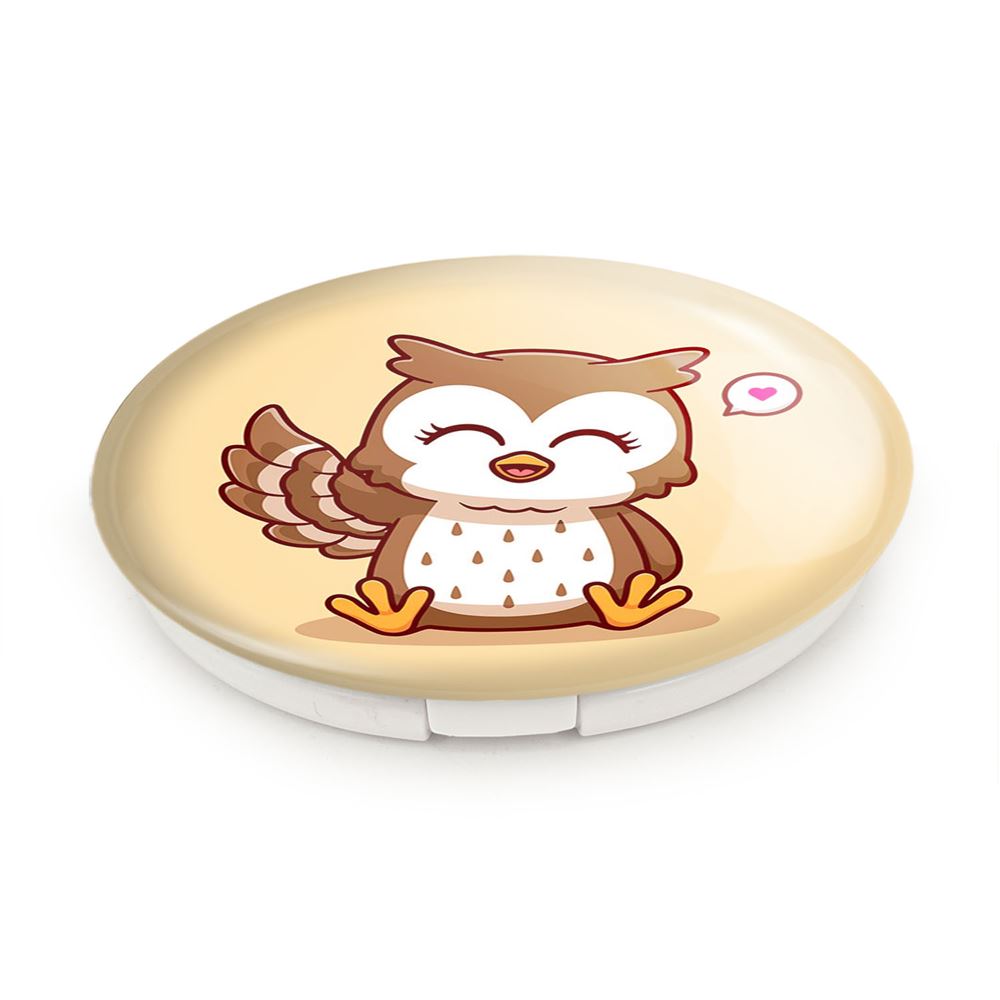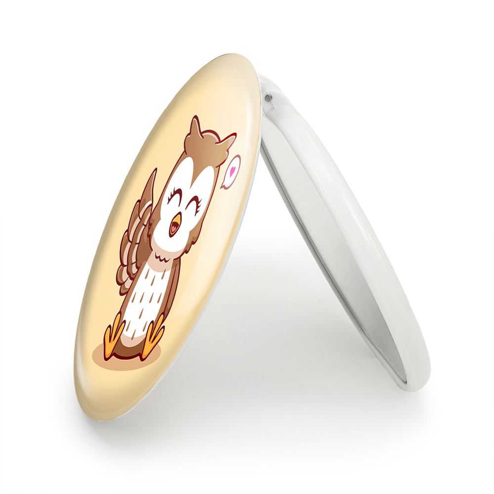 آینه های تاشو حیوانات بامزه جغد خندالو، از جنس پلاستیک فشرده ABS تولید شده و به رنگ سفید می باشد. یکی از آینه ها ابعاد واقعی را نشان داده و دیگری با قابلیت بزرگنمایی، جزئیات را بهتر نمایش می دهد. ابعاد هر یک از آینه ها، دایره ای به قطر 7.5 سانت می باشد که نه خیلی بزرگ و غیر قابل استفاده در کیف آرایشی ست و نه خیلی کوچک که تصویر خاصی در آن مشاهده نشود. آینه تاشو حیوانات بامزه جغد سایزی استاندارد و کارآمد دارد و در هر کیفی جا میگیرد. چاپ طرح بوسیله چاپگرهای دیجیتال شش رنگ با شفافیت و کیفیتی مثال زدنی بر روی یک وجه از بدنه ی آینه انجام گرفته و با روکش لمینت حرارتی پوشیده شده که در مقابل آسیب و خط و خش مقاوم بوده و کیفیت بالایی دارد. درب آینه بوسیله قفل بدنه ی آن، باز نمی ماند و کاملا بسته می شود و مناسب قرار گیری در کیف لوازم آرایش و کیف های کوچک دستی نیز هست. آینه های تاشو حیوانات بامزه جغد خندالو با تنوع طرحی بسیار بالا، سلیقه هر نوع مخاطبی را تامین میکند.