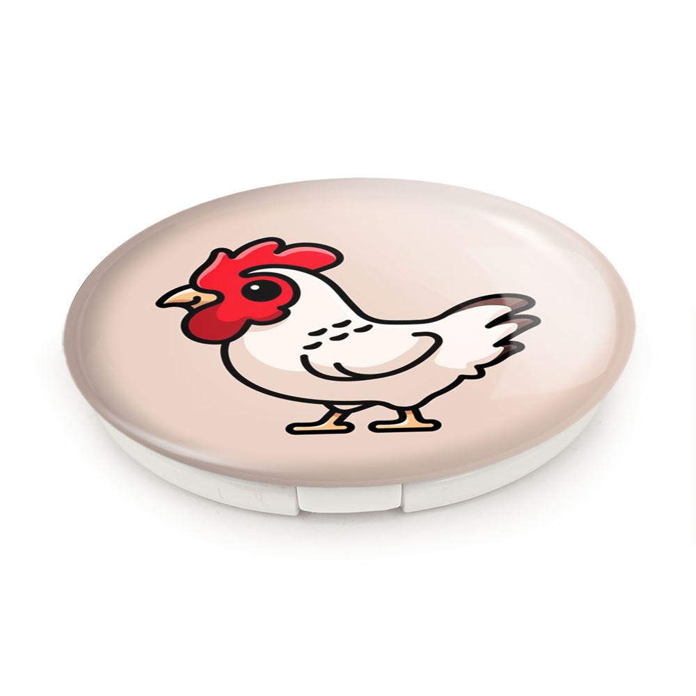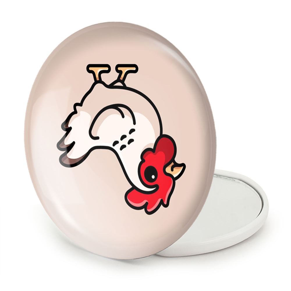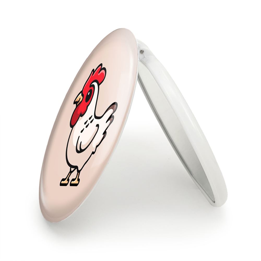 آینه های تاشو حیوانات بامزه خروس خندالو، از جنس پلاستیک فشرده ABS تولید شده و به رنگ سفید می باشد. یکی از آینه ها ابعاد واقعی را نشان داده و دیگری با قابلیت بزرگنمایی، جزئیات را بهتر نمایش می دهد. ابعاد هر یک از آینه ها، دایره ای به قطر 7.5 سانت می باشد که نه خیلی بزرگ و غیر قابل استفاده در کیف آرایشی ست و نه خیلی کوچک که تصویر خاصی در آن مشاهده نشود. آینه تاشو حیوانات بامزه خروس سایزی استاندارد و کارآمد دارد و در هر کیفی جا میگیرد. چاپ طرح بوسیله چاپگرهای دیجیتال شش رنگ با شفافیت و کیفیتی مثال زدنی بر روی یک وجه از بدنه ی آینه انجام گرفته و با روکش لمینت حرارتی پوشیده شده که در مقابل آسیب و خط و خش مقاوم بوده و کیفیت بالایی دارد. درب آینه بوسیله قفل بدنه ی آن، باز نمی ماند و کاملا بسته می شود و مناسب قرار گیری در کیف لوازم آرایش و کیف های کوچک دستی نیز هست. آینه های تاشو حیوانات بامزه خروس خندالو با تنوع طرحی بسیار بالا، سلیقه هر نوع مخاطبی را تامین میکند.