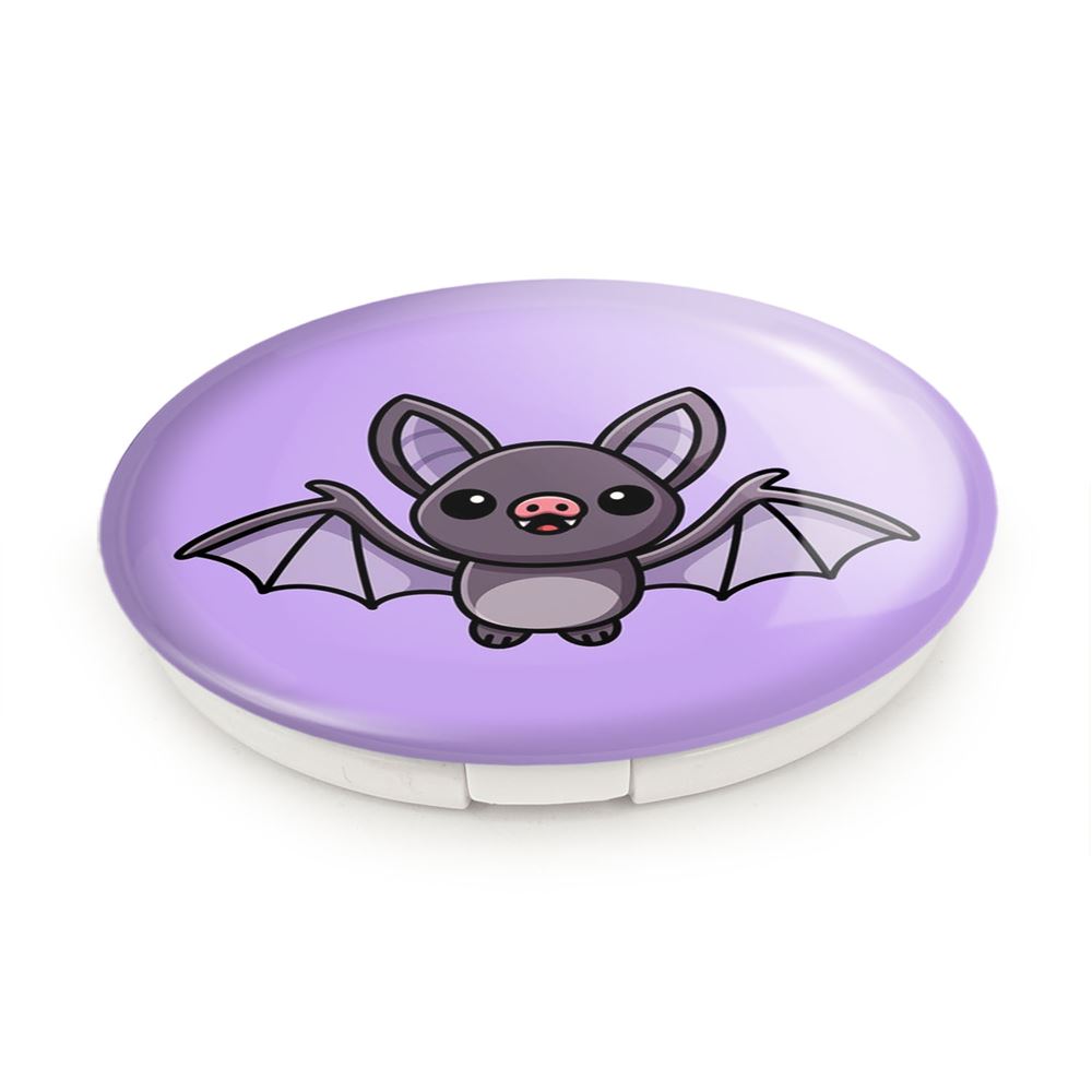 آینه های تاشو حیوانات بامزه خفاش خندالو، از جنس پلاستیک فشرده ABS تولید شده و به رنگ سفید می باشد. یکی از آینه ها ابعاد واقعی را نشان داده و دیگری با قابلیت بزرگنمایی، جزئیات را بهتر نمایش می دهد. ابعاد هر یک از آینه ها، دایره ای به قطر 7.5 سانت می باشد که نه خیلی بزرگ و غیر قابل استفاده در کیف آرایشی ست و نه خیلی کوچک که تصویر خاصی در آن مشاهده نشود. آینه تاشو حیوانات بامزه خفاش سایزی استاندارد و کارآمد دارد و در هر کیفی جا میگیرد. چاپ طرح بوسیله چاپگرهای دیجیتال شش رنگ با شفافیت و کیفیتی مثال زدنی بر روی یک وجه از بدنه ی آینه انجام گرفته و با روکش لمینت حرارتی پوشیده شده که در مقابل آسیب و خط و خش مقاوم بوده و کیفیت بالایی دارد. درب آینه بوسیله قفل بدنه ی آن، باز نمی ماند و کاملا بسته می شود و مناسب قرار گیری در کیف لوازم آرایش و کیف های کوچک دستی نیز هست. آینه های تاشو حیوانات بامزه خفاش خندالو با تنوع طرحی بسیار بالا، سلیقه هر نوع مخاطبی را تامین میکند.