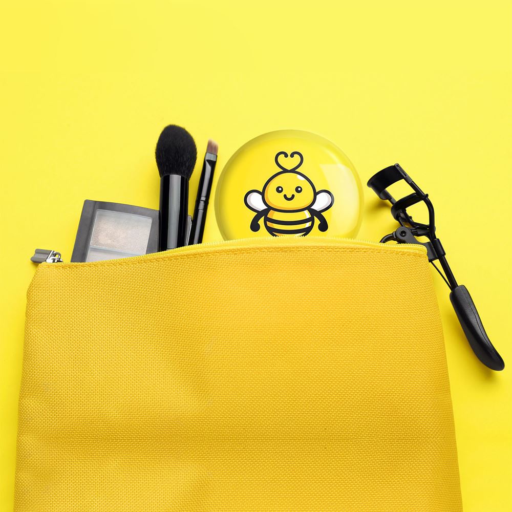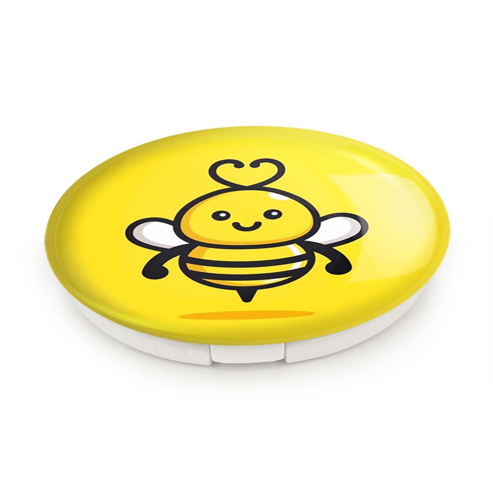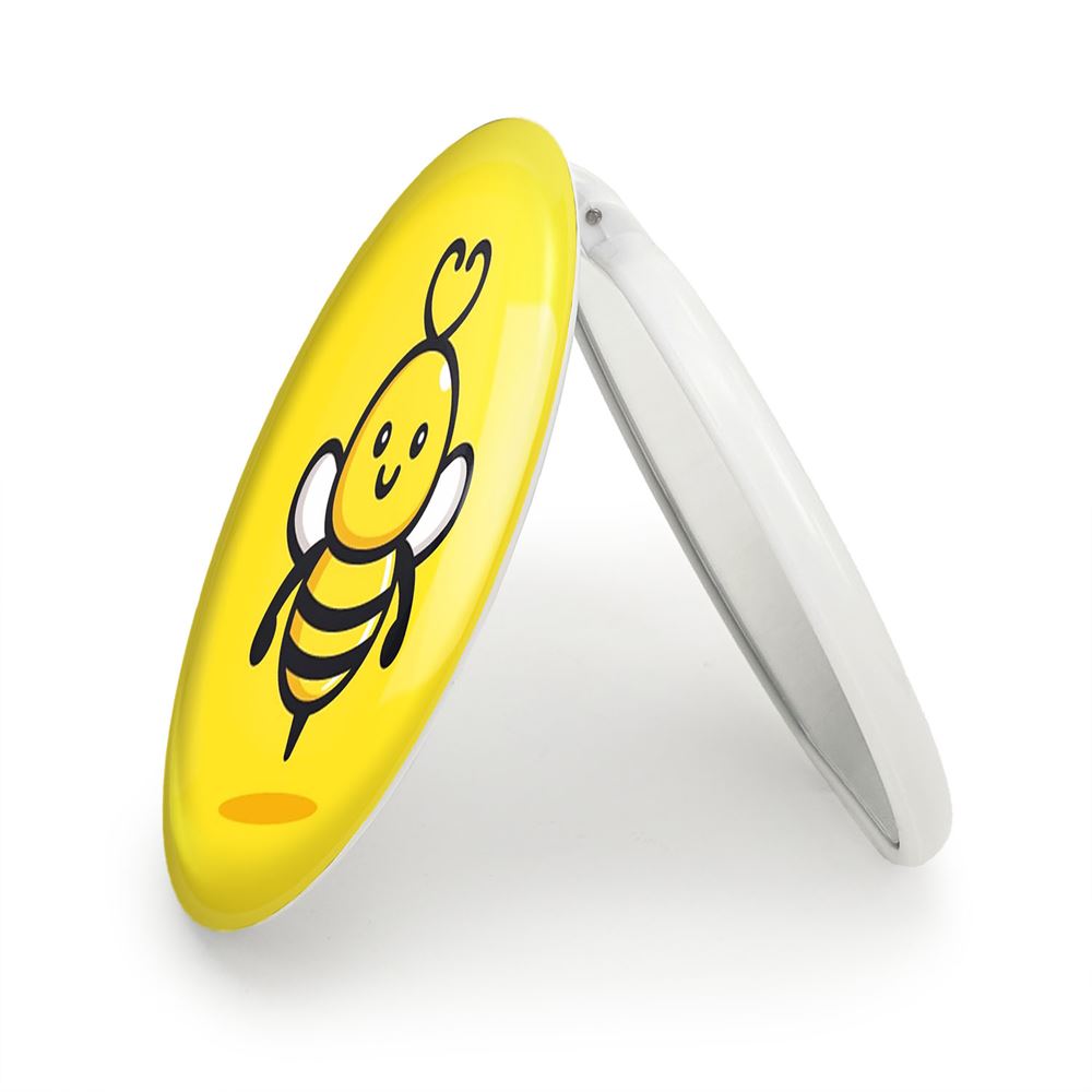 آینه های تاشو حیوانات بامزه زنبور خندالو، از جنس پلاستیک فشرده ABS تولید شده و به رنگ سفید می باشد. یکی از آینه ها ابعاد واقعی را نشان داده و دیگری با قابلیت بزرگنمایی، جزئیات را بهتر نمایش می دهد. ابعاد هر یک از آینه ها، دایره ای به قطر 7.5 سانت می باشد که نه خیلی بزرگ و غیر قابل استفاده در کیف آرایشی ست و نه خیلی کوچک که تصویر خاصی در آن مشاهده نشود. آینه تاشو حیوانات بامزه زنبور سایزی استاندارد و کارآمد دارد و در هر کیفی جا میگیرد. چاپ طرح بوسیله چاپگرهای دیجیتال شش رنگ با شفافیت و کیفیتی مثال زدنی بر روی یک وجه از بدنه ی آینه انجام گرفته و با روکش لمینت حرارتی پوشیده شده که در مقابل آسیب و خط و خش مقاوم بوده و کیفیت بالایی دارد. درب آینه بوسیله قفل بدنه ی آن، باز نمی ماند و کاملا بسته می شود و مناسب قرار گیری در کیف لوازم آرایش و کیف های کوچک دستی نیز هست. آینه های تاشو حیوانات بامزه زنبور خندالو با تنوع طرحی بسیار بالا، سلیقه هر نوع مخاطبی را تامین میکند.