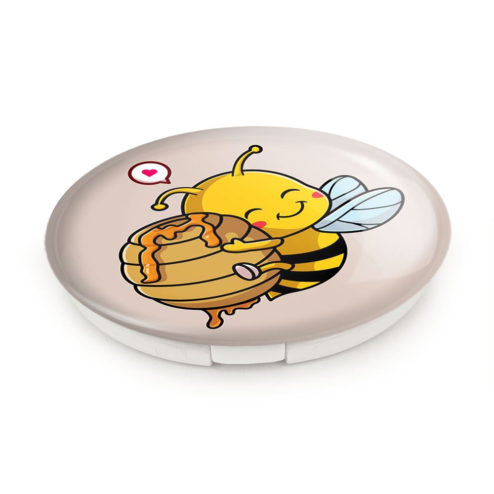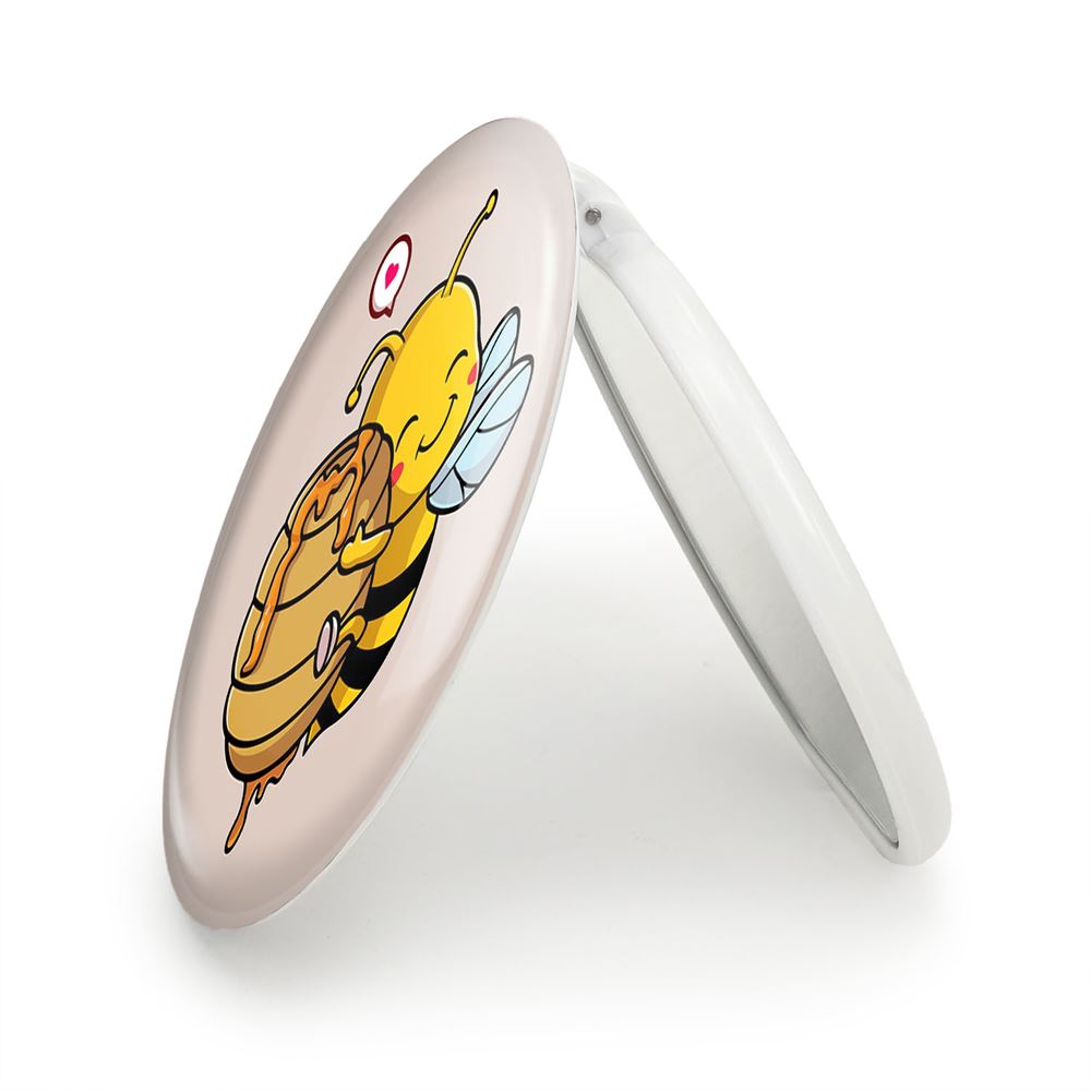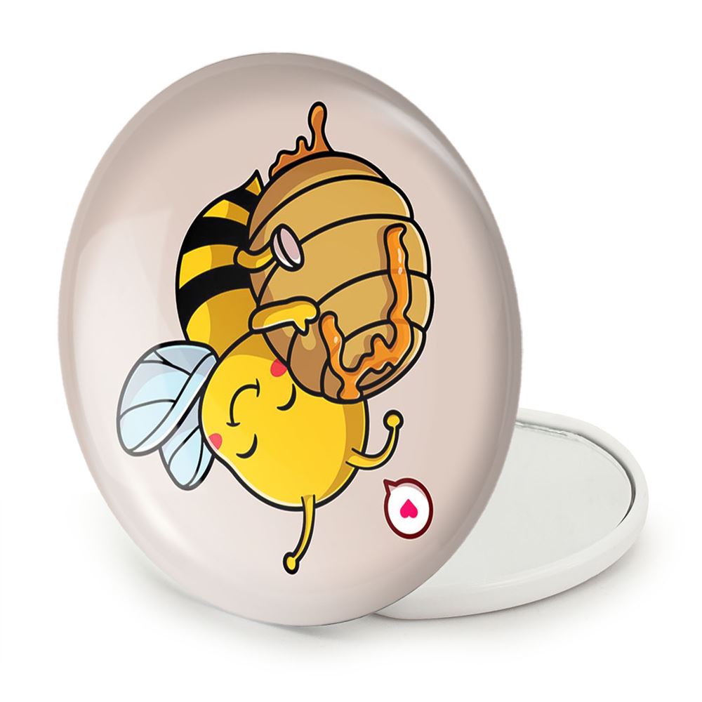 آینه های تاشو حیوانات بامزه زنبور خندالو، از جنس پلاستیک فشرده ABS تولید شده و به رنگ سفید می باشد. یکی از آینه ها ابعاد واقعی را نشان داده و دیگری با قابلیت بزرگنمایی، جزئیات را بهتر نمایش می دهد. ابعاد هر یک از آینه ها، دایره ای به قطر 7.5 سانت می باشد که نه خیلی بزرگ و غیر قابل استفاده در کیف آرایشی ست و نه خیلی کوچک که تصویر خاصی در آن مشاهده نشود. آینه تاشو حیوانات بامزه زنبور سایزی استاندارد و کارآمد دارد و در هر کیفی جا میگیرد. چاپ طرح بوسیله چاپگرهای دیجیتال شش رنگ با شفافیت و کیفیتی مثال زدنی بر روی یک وجه از بدنه ی آینه انجام گرفته و با روکش لمینت حرارتی پوشیده شده که در مقابل آسیب و خط و خش مقاوم بوده و کیفیت بالایی دارد. درب آینه بوسیله قفل بدنه ی آن، باز نمی ماند و کاملا بسته می شود و مناسب قرار گیری در کیف لوازم آرایش و کیف های کوچک دستی نیز هست. آینه های تاشو حیوانات بامزه زنبور خندالو با تنوع طرحی بسیار بالا، سلیقه هر نوع مخاطبی را تامین میکند.