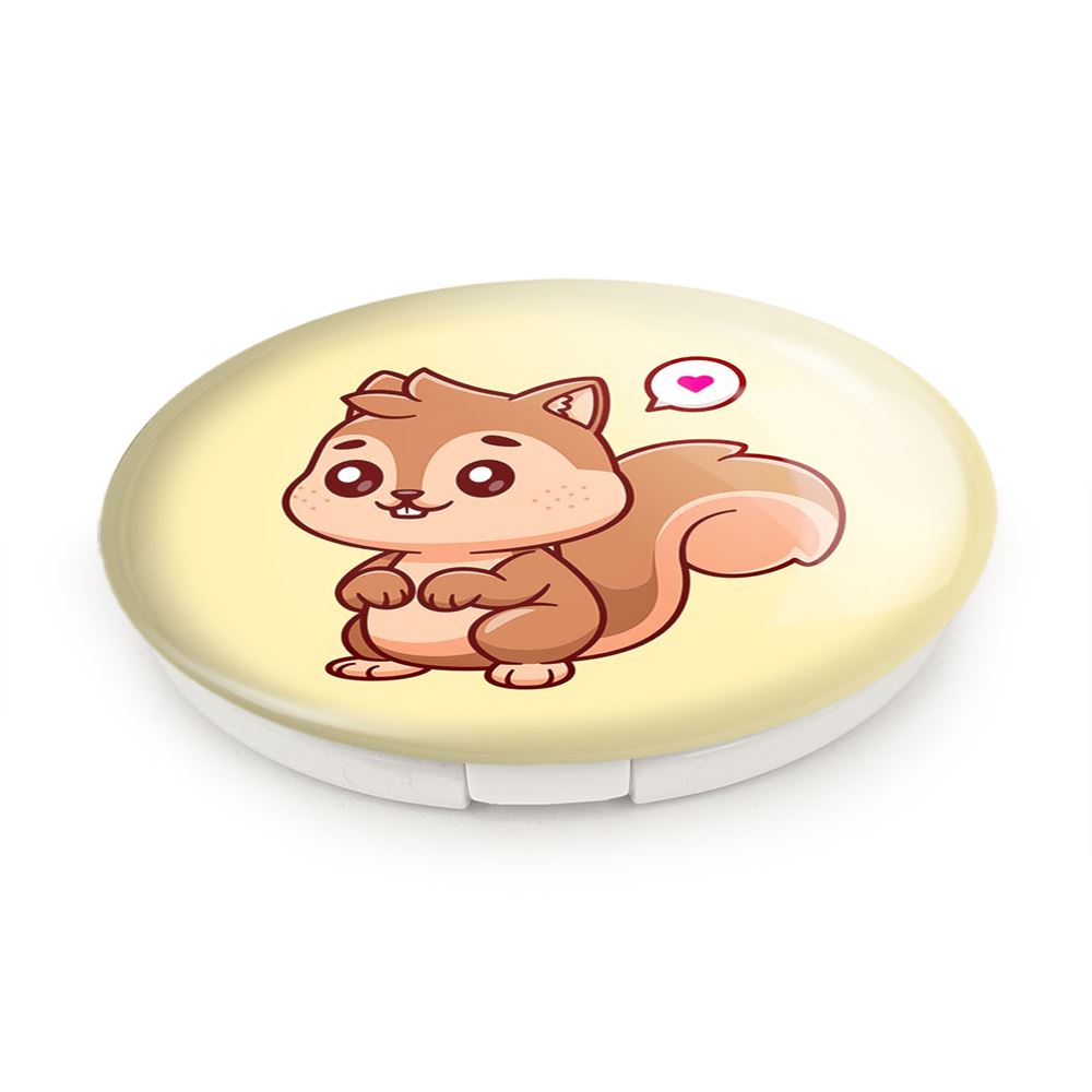 آینه های تاشو حیوانات بامزه سنجاب خندالو، از جنس پلاستیک فشرده ABS تولید شده و به رنگ سفید می باشد. یکی از آینه ها ابعاد واقعی را نشان داده و دیگری با قابلیت بزرگنمایی، جزئیات را بهتر نمایش می دهد. ابعاد هر یک از آینه ها، دایره ای به قطر 7.5 سانت می باشد که نه خیلی بزرگ و غیر قابل استفاده در کیف آرایشی ست و نه خیلی کوچک که تصویر خاصی در آن مشاهده نشود. آینه تاشو حیوانات بامزه سنجاب سایزی استاندارد و کارآمد دارد و در هر کیفی جا میگیرد. چاپ طرح بوسیله چاپگرهای دیجیتال شش رنگ با شفافیت و کیفیتی مثال زدنی بر روی یک وجه از بدنه ی آینه انجام گرفته و با روکش لمینت حرارتی پوشیده شده که در مقابل آسیب و خط و خش مقاوم بوده و کیفیت بالایی دارد. درب آینه بوسیله قفل بدنه ی آن، باز نمی ماند و کاملا بسته می شود و مناسب قرار گیری در کیف لوازم آرایش و کیف های کوچک دستی نیز هست. آینه های تاشو حیوانات بامزه سنجاب خندالو با تنوع طرحی بسیار بالا، سلیقه هر نوع مخاطبی را تامین میکند.