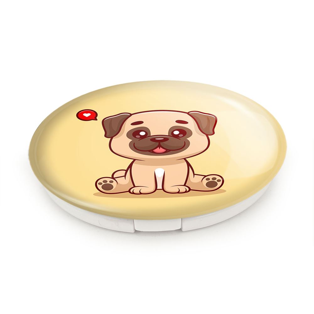 آینه های تاشو حیوانات بامزه سگ خندالو، از جنس پلاستیک فشرده ABS تولید شده و به رنگ سفید می باشد. یکی از آینه ها ابعاد واقعی را نشان داده و دیگری با قابلیت بزرگنمایی، جزئیات را بهتر نمایش می دهد. ابعاد هر یک از آینه ها، دایره ای به قطر 7.5 سانت می باشد که نه خیلی بزرگ و غیر قابل استفاده در کیف آرایشی ست و نه خیلی کوچک که تصویر خاصی در آن مشاهده نشود. آینه تاشو حیوانات بامزه سگ سایزی استاندارد و کارآمد دارد و در هر کیفی جا میگیرد. چاپ طرح بوسیله چاپگرهای دیجیتال شش رنگ با شفافیت و کیفیتی مثال زدنی بر روی یک وجه از بدنه ی آینه انجام گرفته و با روکش لمینت حرارتی پوشیده شده که در مقابل آسیب و خط و خش مقاوم بوده و کیفیت بالایی دارد. درب آینه بوسیله قفل بدنه ی آن، باز نمی ماند و کاملا بسته می شود و مناسب قرار گیری در کیف لوازم آرایش و کیف های کوچک دستی نیز هست. آینه های تاشو حیوانات بامزه سگ خندالو با تنوع طرحی بسیار بالا، سلیقه هر نوع مخاطبی را تامین میکند.
