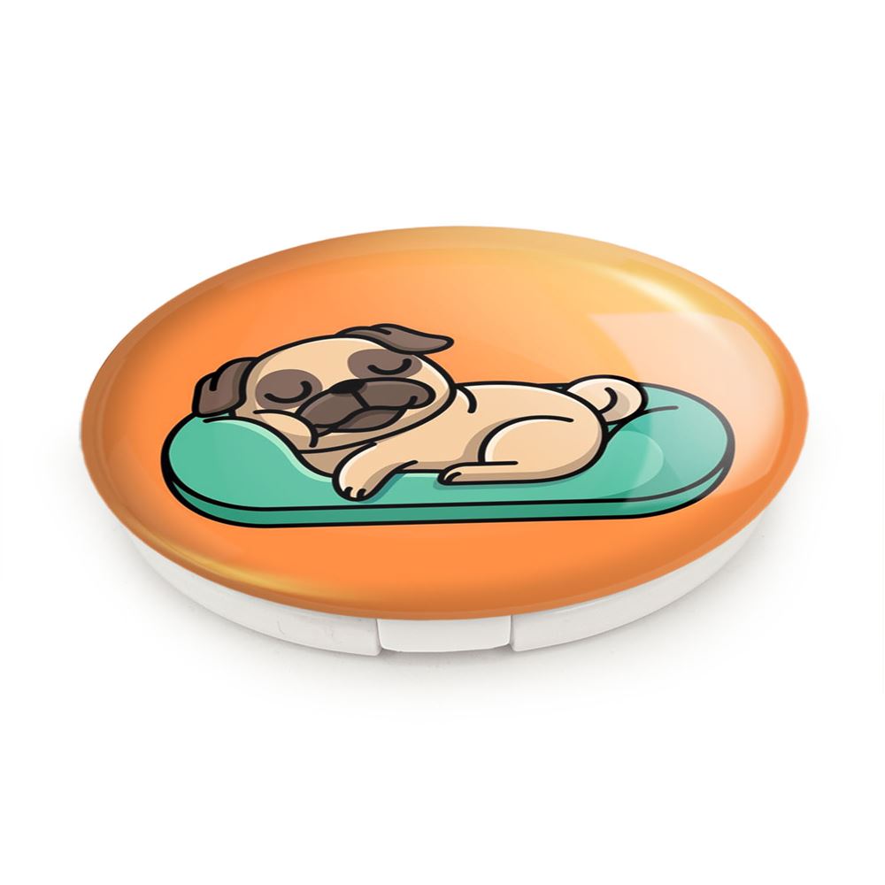 آینه های تاشو حیوانات بامزه سگ خندالو، از جنس پلاستیک فشرده ABS تولید شده و به رنگ سفید می باشد. یکی از آینه ها ابعاد واقعی را نشان داده و دیگری با قابلیت بزرگنمایی، جزئیات را بهتر نمایش می دهد. ابعاد هر یک از آینه ها، دایره ای به قطر 7.5 سانت می باشد که نه خیلی بزرگ و غیر قابل استفاده در کیف آرایشی ست و نه خیلی کوچک که تصویر خاصی در آن مشاهده نشود. آینه تاشو حیوانات بامزه سگ سایزی استاندارد و کارآمد دارد و در هر کیفی جا میگیرد. چاپ طرح بوسیله چاپگرهای دیجیتال شش رنگ با شفافیت و کیفیتی مثال زدنی بر روی یک وجه از بدنه ی آینه انجام گرفته و با روکش لمینت حرارتی پوشیده شده که در مقابل آسیب و خط و خش مقاوم بوده و کیفیت بالایی دارد. درب آینه بوسیله قفل بدنه ی آن، باز نمی ماند و کاملا بسته می شود و مناسب قرار گیری در کیف لوازم آرایش و کیف های کوچک دستی نیز هست. آینه های تاشو حیوانات بامزه سگ خندالو با تنوع طرحی بسیار بالا، سلیقه هر نوع مخاطبی را تامین میکند.