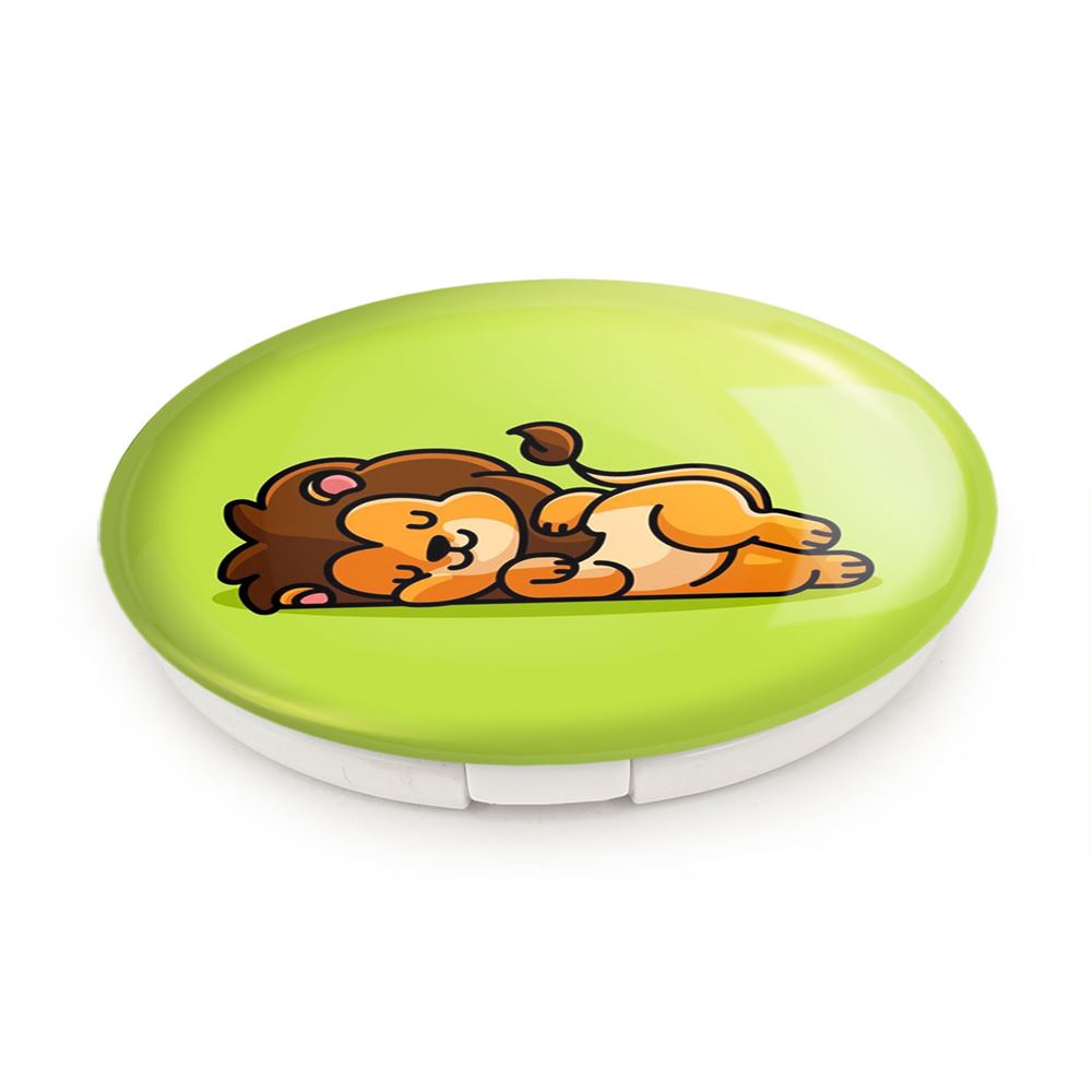 آینه های تاشو حیوانات بامزه شیر خندالو، از جنس پلاستیک فشرده ABS تولید شده و به رنگ سفید می باشد. یکی از آینه ها ابعاد واقعی را نشان داده و دیگری با قابلیت بزرگنمایی، جزئیات را بهتر نمایش می دهد. ابعاد هر یک از آینه ها، دایره ای به قطر 7.5 سانت می باشد که نه خیلی بزرگ و غیر قابل استفاده در کیف آرایشی ست و نه خیلی کوچک که تصویر خاصی در آن مشاهده نشود. آینه تاشو حیوانات بامزه شیر سایزی استاندارد و کارآمد دارد و در هر کیفی جا میگیرد. چاپ طرح بوسیله چاپگرهای دیجیتال شش رنگ با شفافیت و کیفیتی مثال زدنی بر روی یک وجه از بدنه ی آینه انجام گرفته و با روکش لمینت حرارتی پوشیده شده که در مقابل آسیب و خط و خش مقاوم بوده و کیفیت بالایی دارد. درب آینه بوسیله قفل بدنه ی آن، باز نمی ماند و کاملا بسته می شود و مناسب قرار گیری در کیف لوازم آرایش و کیف های کوچک دستی نیز هست. آینه های تاشو حیوانات بامزه شیر خندالو با تنوع طرحی بسیار بالا، سلیقه هر نوع مخاطبی را تامین میکند.