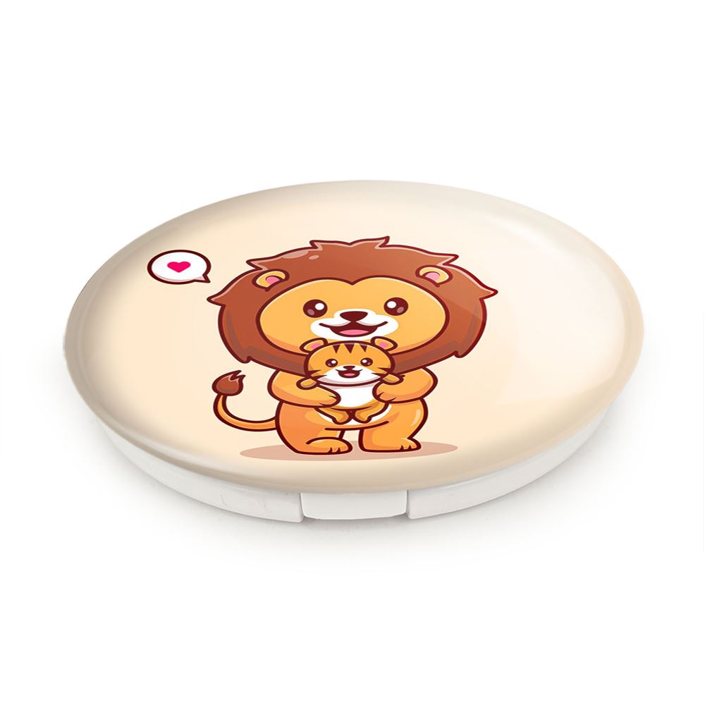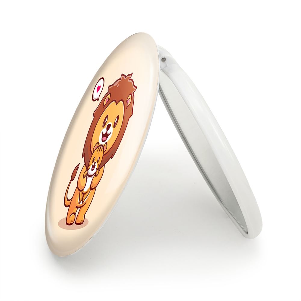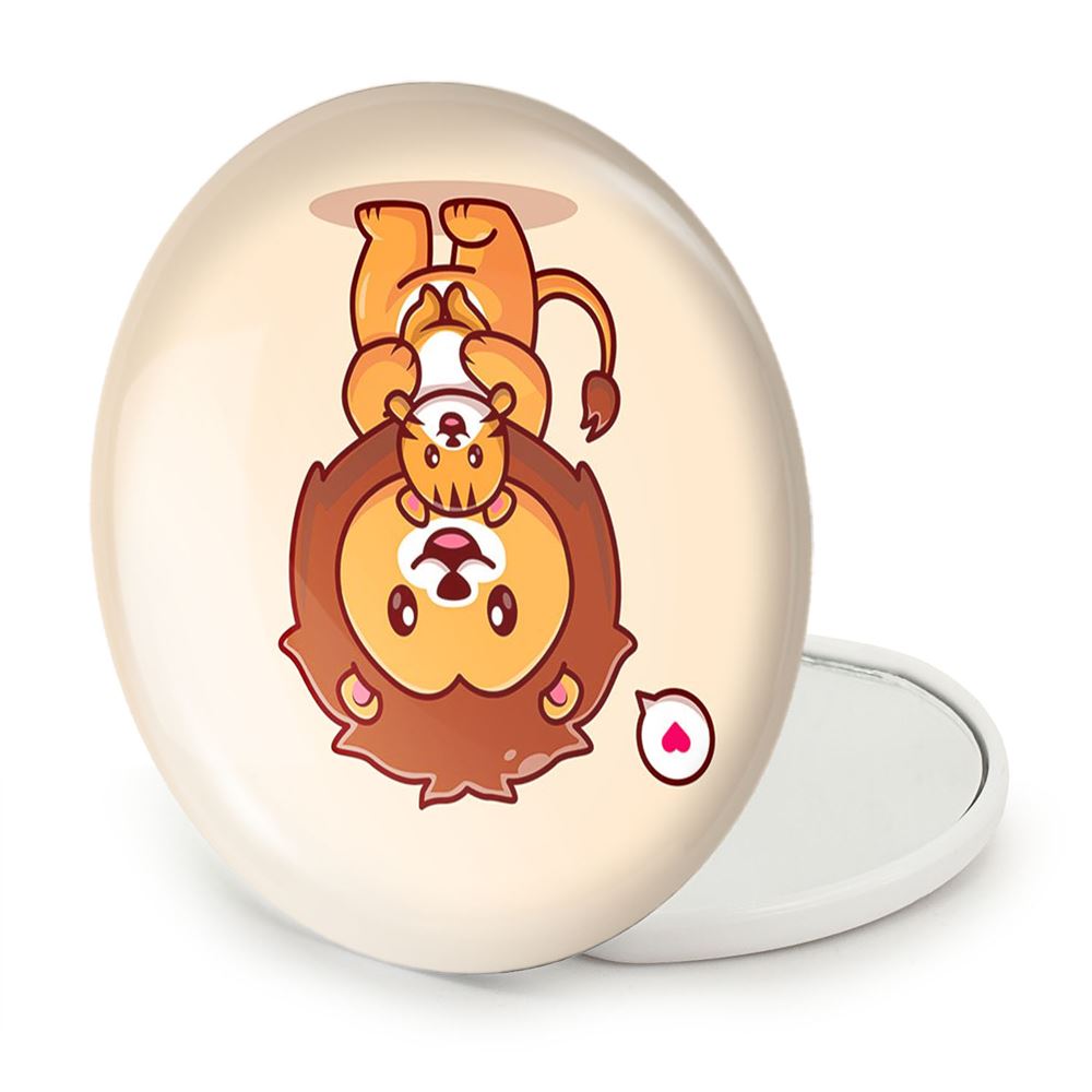 آینه های تاشو حیوانات بامزه شیر خندالو، از جنس پلاستیک فشرده ABS تولید شده و به رنگ سفید می باشد. یکی از آینه ها ابعاد واقعی را نشان داده و دیگری با قابلیت بزرگنمایی، جزئیات را بهتر نمایش می دهد. ابعاد هر یک از آینه ها، دایره ای به قطر 7.5 سانت می باشد که نه خیلی بزرگ و غیر قابل استفاده در کیف آرایشی ست و نه خیلی کوچک که تصویر خاصی در آن مشاهده نشود. آینه تاشو حیوانات بامزه شیر سایزی استاندارد و کارآمد دارد و در هر کیفی جا میگیرد. چاپ طرح بوسیله چاپگرهای دیجیتال شش رنگ با شفافیت و کیفیتی مثال زدنی بر روی یک وجه از بدنه ی آینه انجام گرفته و با روکش لمینت حرارتی پوشیده شده که در مقابل آسیب و خط و خش مقاوم بوده و کیفیت بالایی دارد. درب آینه بوسیله قفل بدنه ی آن، باز نمی ماند و کاملا بسته می شود و مناسب قرار گیری در کیف لوازم آرایش و کیف های کوچک دستی نیز هست. آینه های تاشو حیوانات بامزه شیر خندالو با تنوع طرحی بسیار بالا، سلیقه هر نوع مخاطبی را تامین میکند.