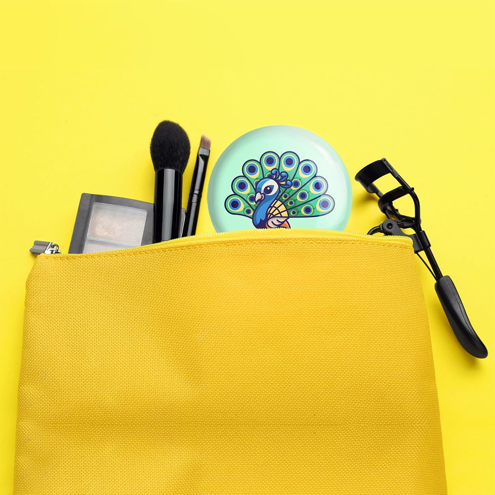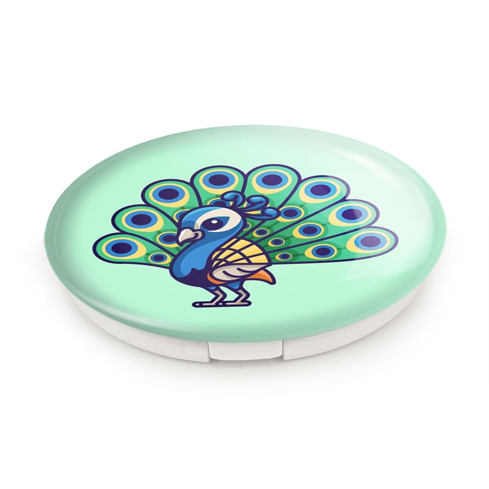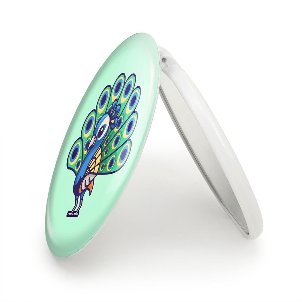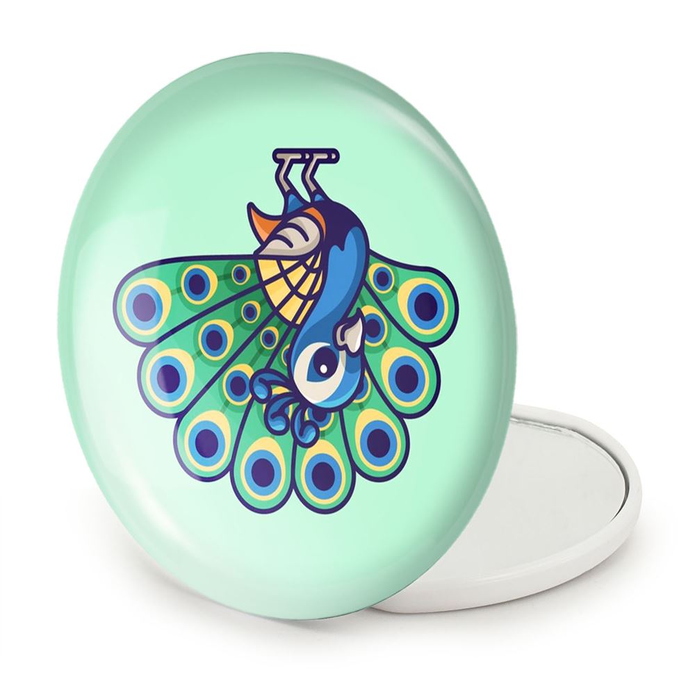 آینه های تاشو حیوانات بامزه طاووس خندالو، از جنس پلاستیک فشرده ABS تولید شده و به رنگ سفید می باشد. یکی از آینه ها ابعاد واقعی را نشان داده و دیگری با قابلیت بزرگنمایی، جزئیات را بهتر نمایش می دهد. ابعاد هر یک از آینه ها، دایره ای به قطر 7.5 سانت می باشد که نه خیلی بزرگ و غیر قابل استفاده در کیف آرایشی ست و نه خیلی کوچک که تصویر خاصی در آن مشاهده نشود. آینه تاشو حیوانات بامزه طاووس سایزی استاندارد و کارآمد دارد و در هر کیفی جا میگیرد. چاپ طرح بوسیله چاپگرهای دیجیتال شش رنگ با شفافیت و کیفیتی مثال زدنی بر روی یک وجه از بدنه ی آینه انجام گرفته و با روکش لمینت حرارتی پوشیده شده که در مقابل آسیب و خط و خش مقاوم بوده و کیفیت بالایی دارد. درب آینه بوسیله قفل بدنه ی آن، باز نمی ماند و کاملا بسته می شود و مناسب قرار گیری در کیف لوازم آرایش و کیف های کوچک دستی نیز هست. آینه های تاشو حیوانات بامزه طاووس خندالو با تنوع طرحی بسیار بالا، سلیقه هر نوع مخاطبی را تامین میکند.