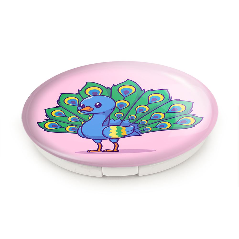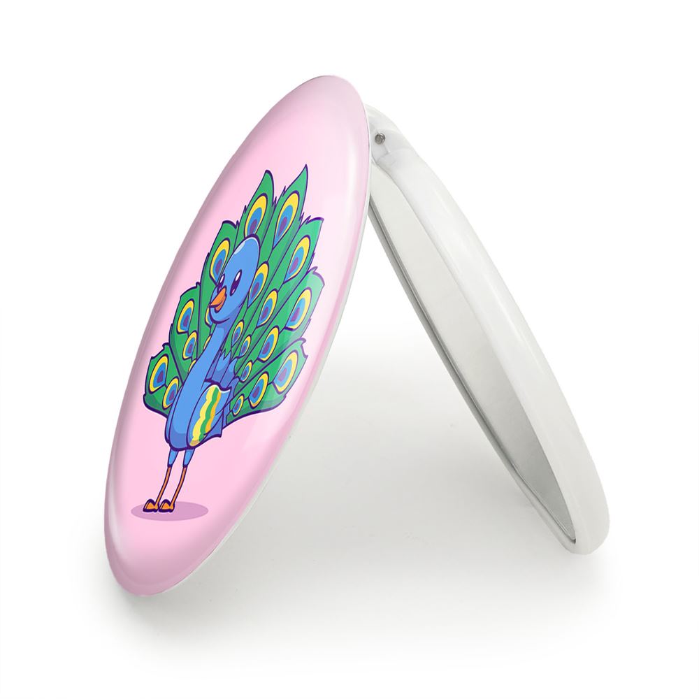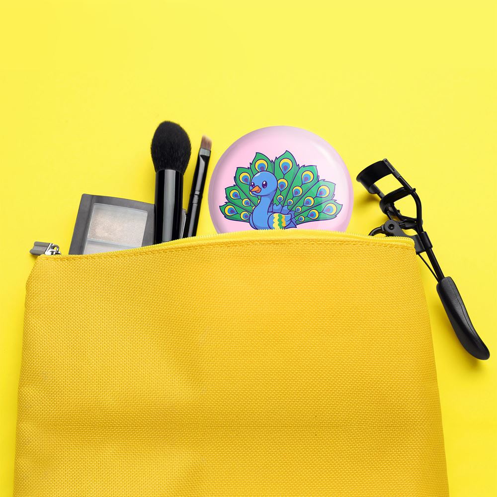 آینه های تاشو حیوانات بامزه طاووس خندالو، از جنس پلاستیک فشرده ABS تولید شده و به رنگ سفید می باشد. یکی از آینه ها ابعاد واقعی را نشان داده و دیگری با قابلیت بزرگنمایی، جزئیات را بهتر نمایش می دهد. ابعاد هر یک از آینه ها، دایره ای به قطر 7.5 سانت می باشد که نه خیلی بزرگ و غیر قابل استفاده در کیف آرایشی ست و نه خیلی کوچک که تصویر خاصی در آن مشاهده نشود. آینه تاشو حیوانات بامزه طاووس سایزی استاندارد و کارآمد دارد و در هر کیفی جا میگیرد. چاپ طرح بوسیله چاپگرهای دیجیتال شش رنگ با شفافیت و کیفیتی مثال زدنی بر روی یک وجه از بدنه ی آینه انجام گرفته و با روکش لمینت حرارتی پوشیده شده که در مقابل آسیب و خط و خش مقاوم بوده و کیفیت بالایی دارد. درب آینه بوسیله قفل بدنه ی آن، باز نمی ماند و کاملا بسته می شود و مناسب قرار گیری در کیف لوازم آرایش و کیف های کوچک دستی نیز هست. آینه های تاشو حیوانات بامزه طاووس خندالو با تنوع طرحی بسیار بالا، سلیقه هر نوع مخاطبی را تامین میکند.