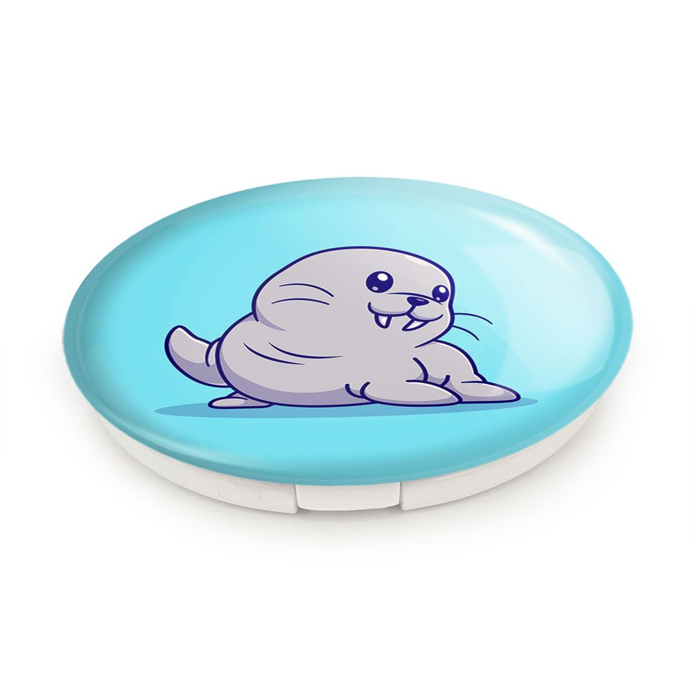 آینه های تاشو حیوانات بامزه فک خندالو، از جنس پلاستیک فشرده ABS تولید شده و به رنگ سفید می باشد. یکی از آینه ها ابعاد واقعی را نشان داده و دیگری با قابلیت بزرگنمایی، جزئیات را بهتر نمایش می دهد. ابعاد هر یک از آینه ها، دایره ای به قطر 7.5 سانت می باشد که نه خیلی بزرگ و غیر قابل استفاده در کیف آرایشی ست و نه خیلی کوچک که تصویر خاصی در آن مشاهده نشود. آینه تاشو حیوانات بامزه فک سایزی استاندارد و کارآمد دارد و در هر کیفی جا میگیرد. چاپ طرح بوسیله چاپگرهای دیجیتال شش رنگ با شفافیت و کیفیتی مثال زدنی بر روی یک وجه از بدنه ی آینه انجام گرفته و با روکش لمینت حرارتی پوشیده شده که در مقابل آسیب و خط و خش مقاوم بوده و کیفیت بالایی دارد. درب آینه بوسیله قفل بدنه ی آن، باز نمی ماند و کاملا بسته می شود و مناسب قرار گیری در کیف لوازم آرایش و کیف های کوچک دستی نیز هست. آینه های تاشو حیوانات بامزه فک خندالو با تنوع طرحی بسیار بالا، سلیقه هر نوع مخاطبی را تامین میکند.