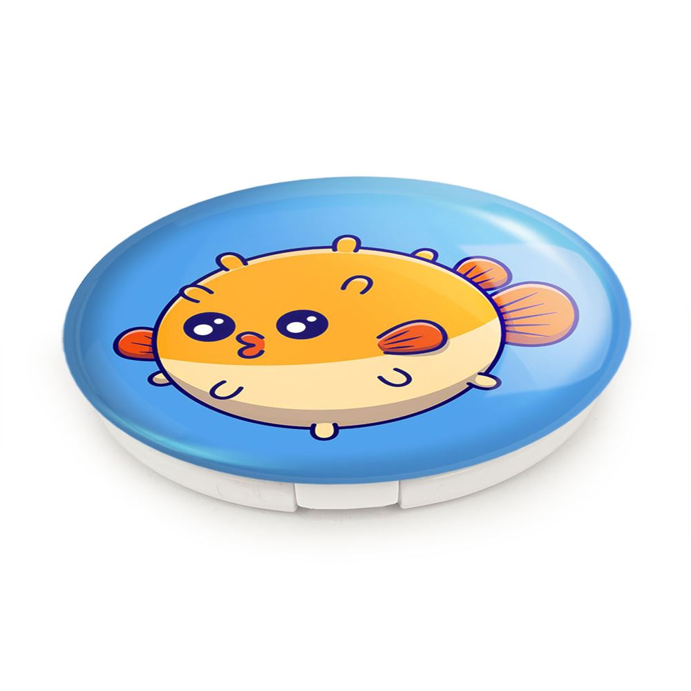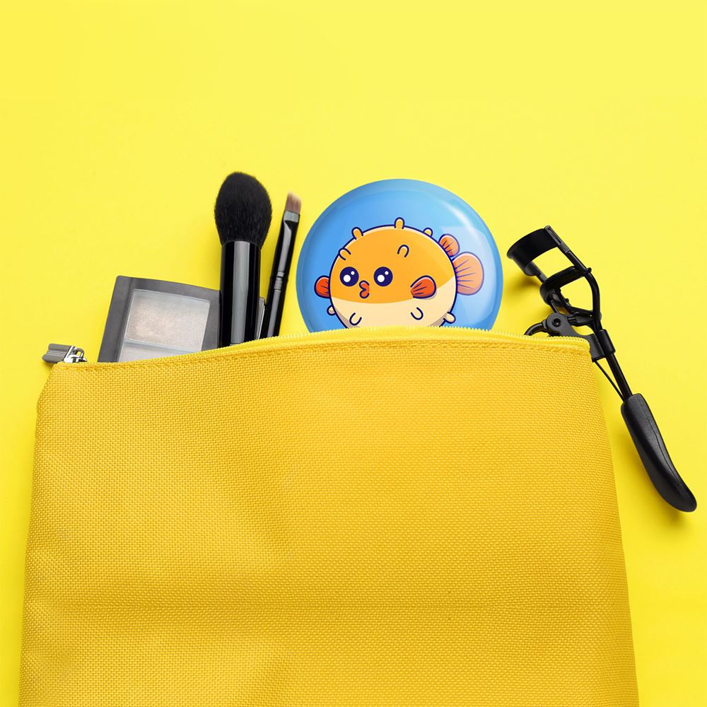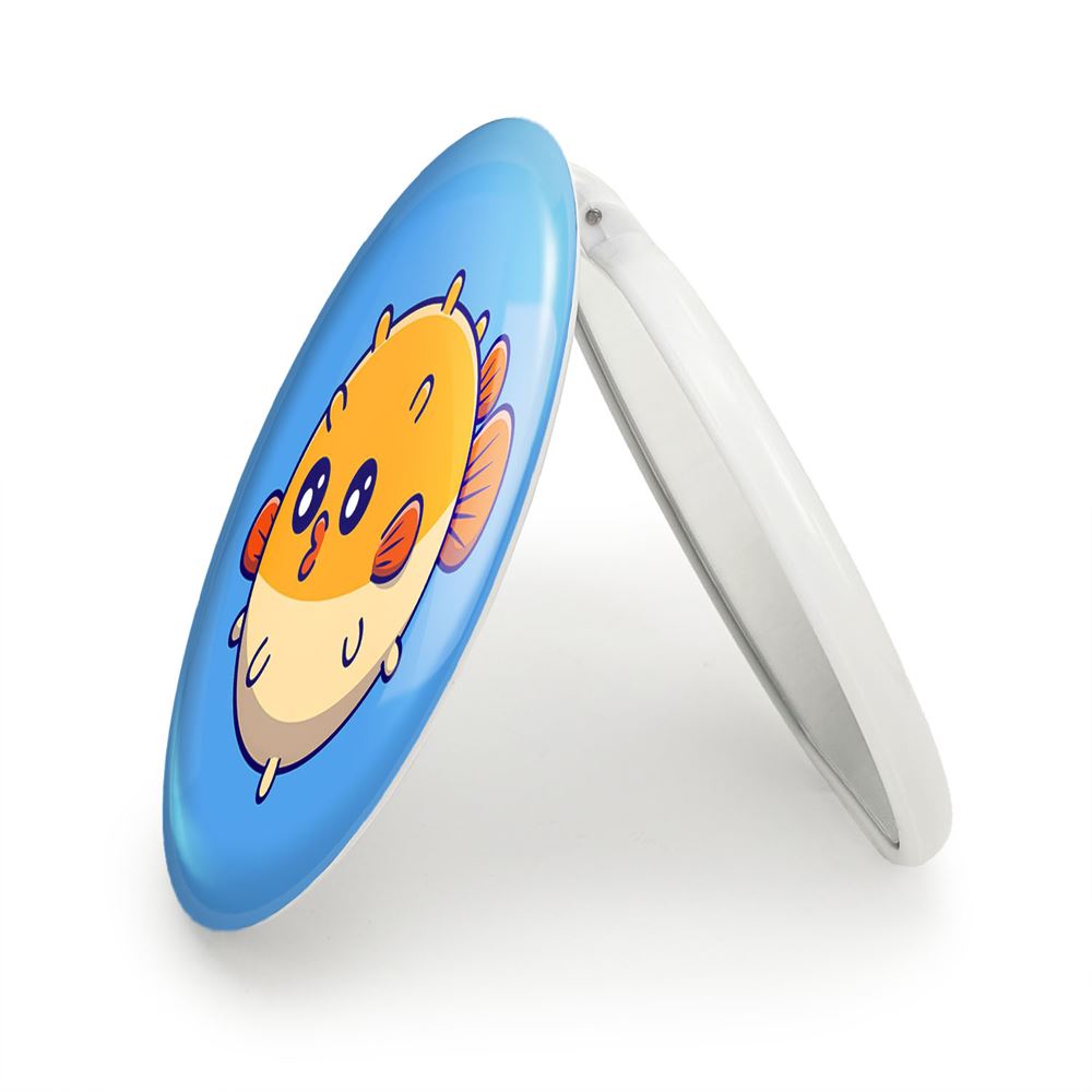 آینه های تاشو حیوانات بامزه ماهی بادکنکی خندالو، از جنس پلاستیک فشرده ABS تولید شده و به رنگ سفید می باشد. یکی از آینه ها ابعاد واقعی را نشان داده و دیگری با قابلیت بزرگنمایی، جزئیات را بهتر نمایش می دهد. ابعاد هر یک از آینه ها، دایره ای به قطر 7.5 سانت می باشد که نه خیلی بزرگ و غیر قابل استفاده در کیف آرایشی ست و نه خیلی کوچک که تصویر خاصی در آن مشاهده نشود. آینه تاشو حیوانات بامزه ماهی بادکنکی سایزی استاندارد و کارآمد دارد و در هر کیفی جا میگیرد. چاپ طرح بوسیله چاپگرهای دیجیتال شش رنگ با شفافیت و کیفیتی مثال زدنی بر روی یک وجه از بدنه ی آینه انجام گرفته و با روکش لمینت حرارتی پوشیده شده که در مقابل آسیب و خط و خش مقاوم بوده و کیفیت بالایی دارد. درب آینه بوسیله قفل بدنه ی آن، باز نمی ماند و کاملا بسته می شود و مناسب قرار گیری در کیف لوازم آرایش و کیف های کوچک دستی نیز هست. آینه های تاشو حیوانات بامزه ماهی بادکنکی خندالو با تنوع طرحی بسیار بالا، سلیقه هر نوع مخاطبی را تامین میکند.