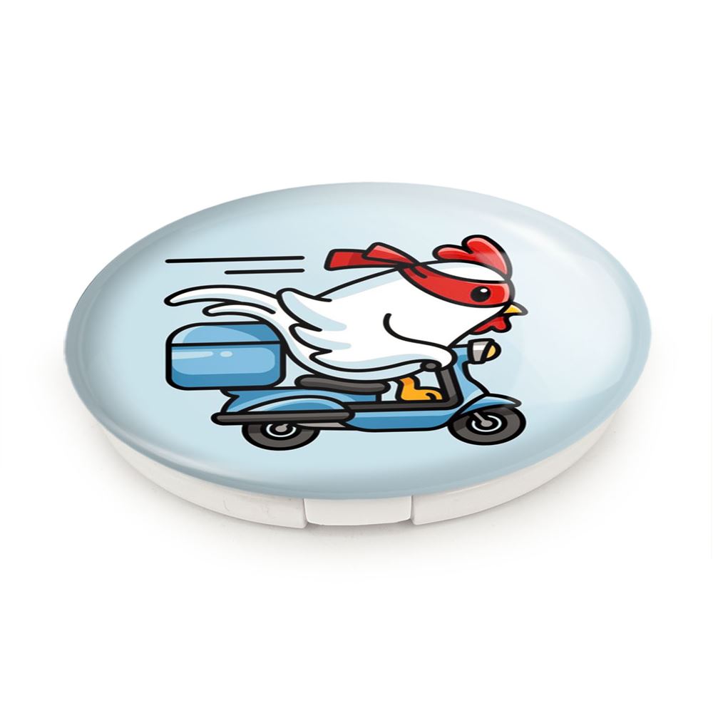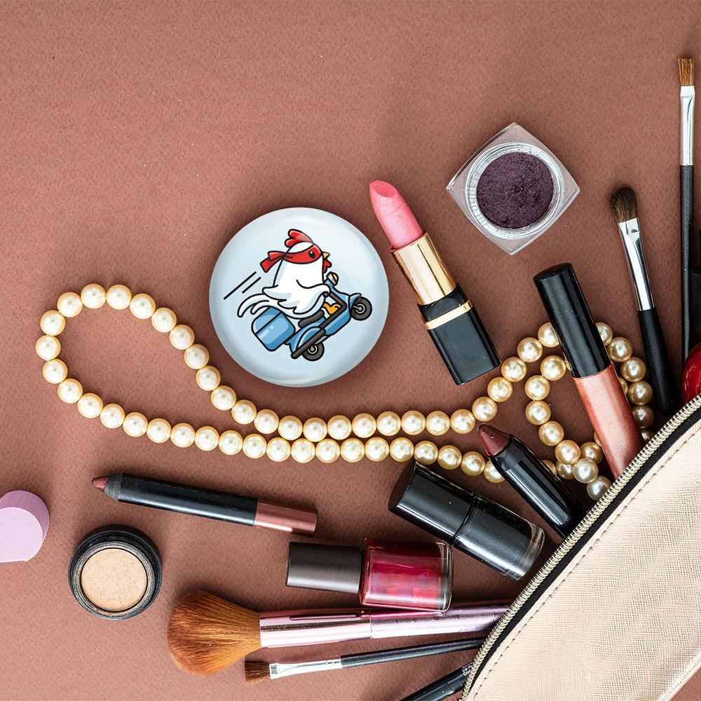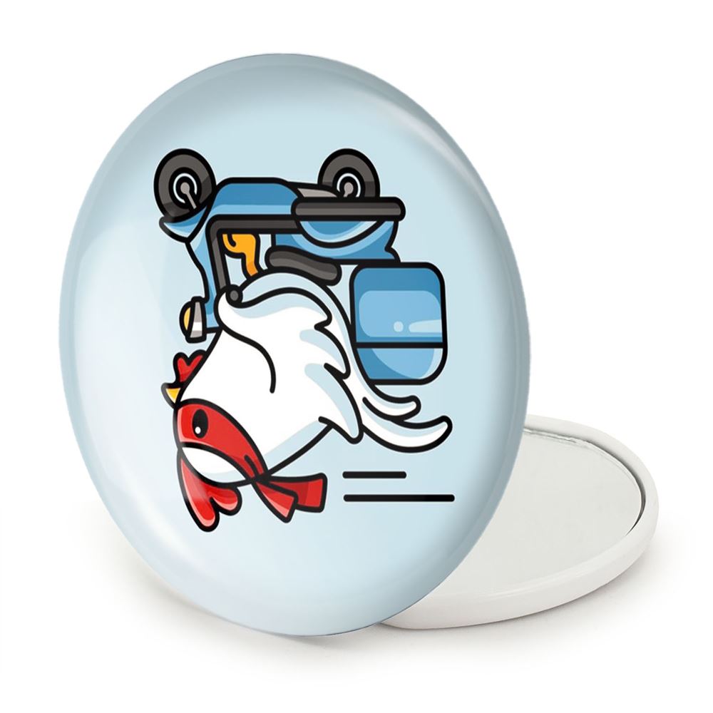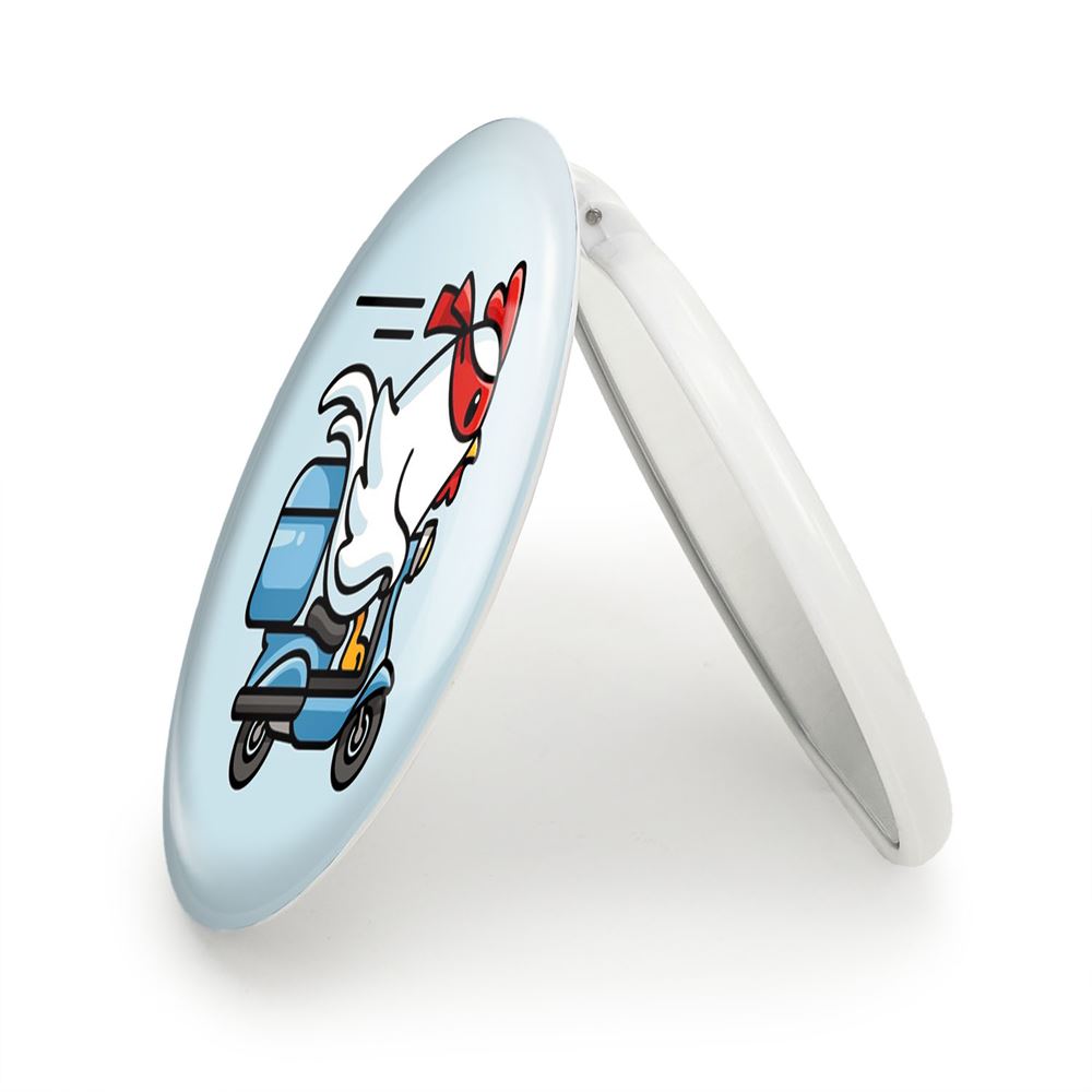آینه های تاشو حیوانات بامزه مرغ خندالو، از جنس پلاستیک فشرده ABS تولید شده و به رنگ سفید می باشد. یکی از آینه ها ابعاد واقعی را نشان داده و دیگری با قابلیت بزرگنمایی، جزئیات را بهتر نمایش می دهد. ابعاد هر یک از آینه ها، دایره ای به قطر 7.5 سانت می باشد که نه خیلی بزرگ و غیر قابل استفاده در کیف آرایشی ست و نه خیلی کوچک که تصویر خاصی در آن مشاهده نشود. آینه تاشو حیوانات بامزه مرغ سایزی استاندارد و کارآمد دارد و در هر کیفی جا میگیرد. چاپ طرح بوسیله چاپگرهای دیجیتال شش رنگ با شفافیت و کیفیتی مثال زدنی بر روی یک وجه از بدنه ی آینه انجام گرفته و با روکش لمینت حرارتی پوشیده شده که در مقابل آسیب و خط و خش مقاوم بوده و کیفیت بالایی دارد. درب آینه بوسیله قفل بدنه ی آن، باز نمی ماند و کاملا بسته می شود و مناسب قرار گیری در کیف لوازم آرایش و کیف های کوچک دستی نیز هست. آینه های تاشو حیوانات بامزه مرغ خندالو با تنوع طرحی بسیار بالا، سلیقه هر نوع مخاطبی را تامین میکند.