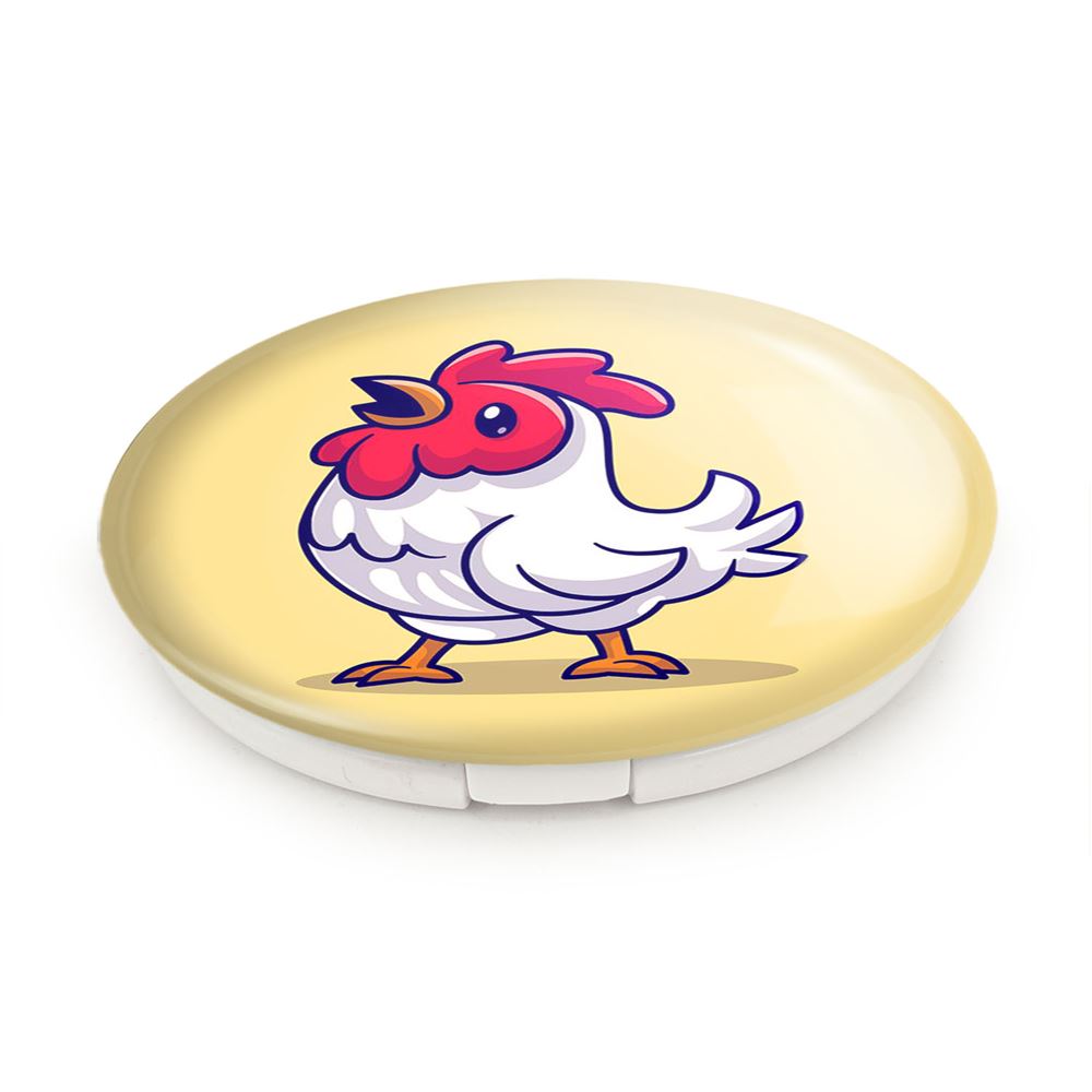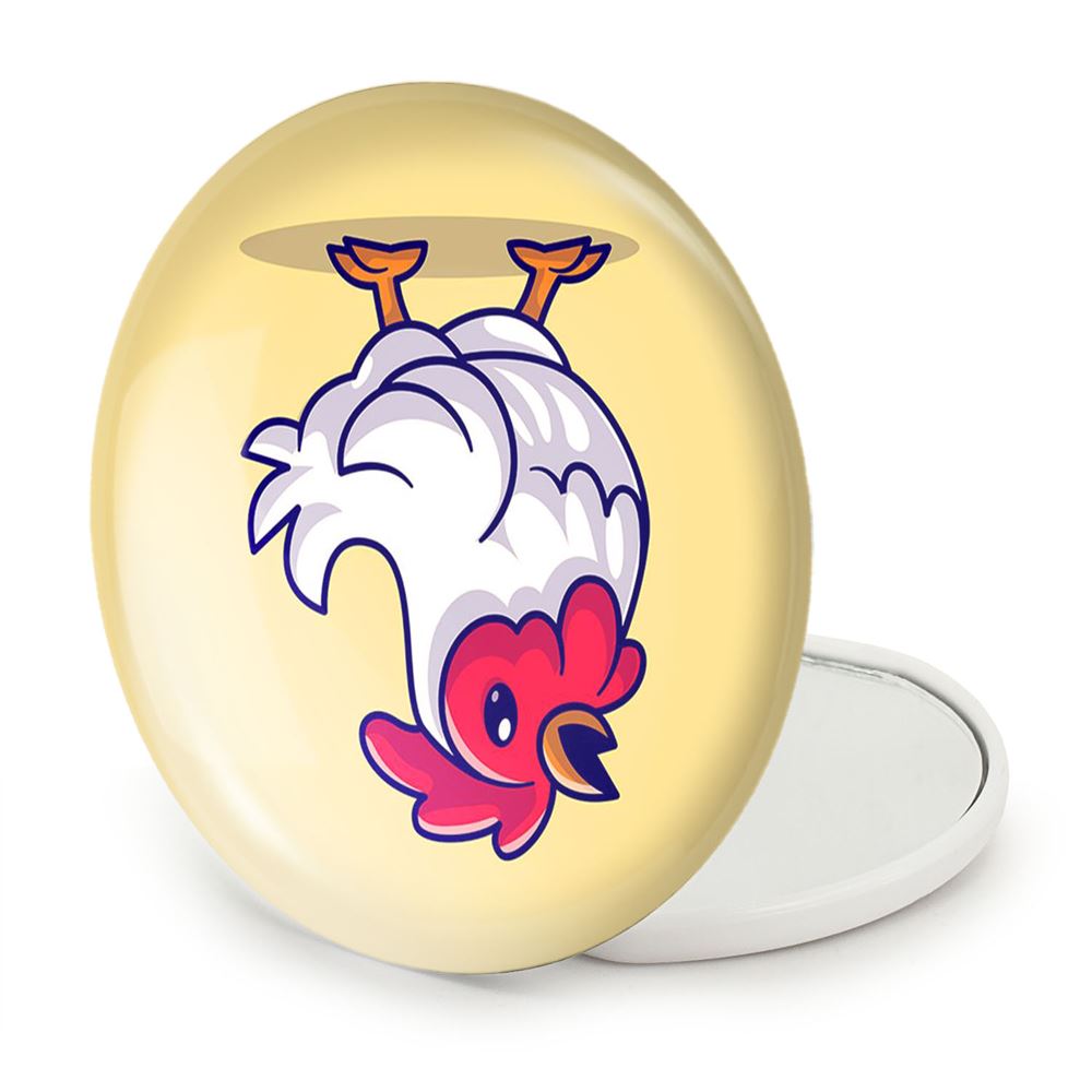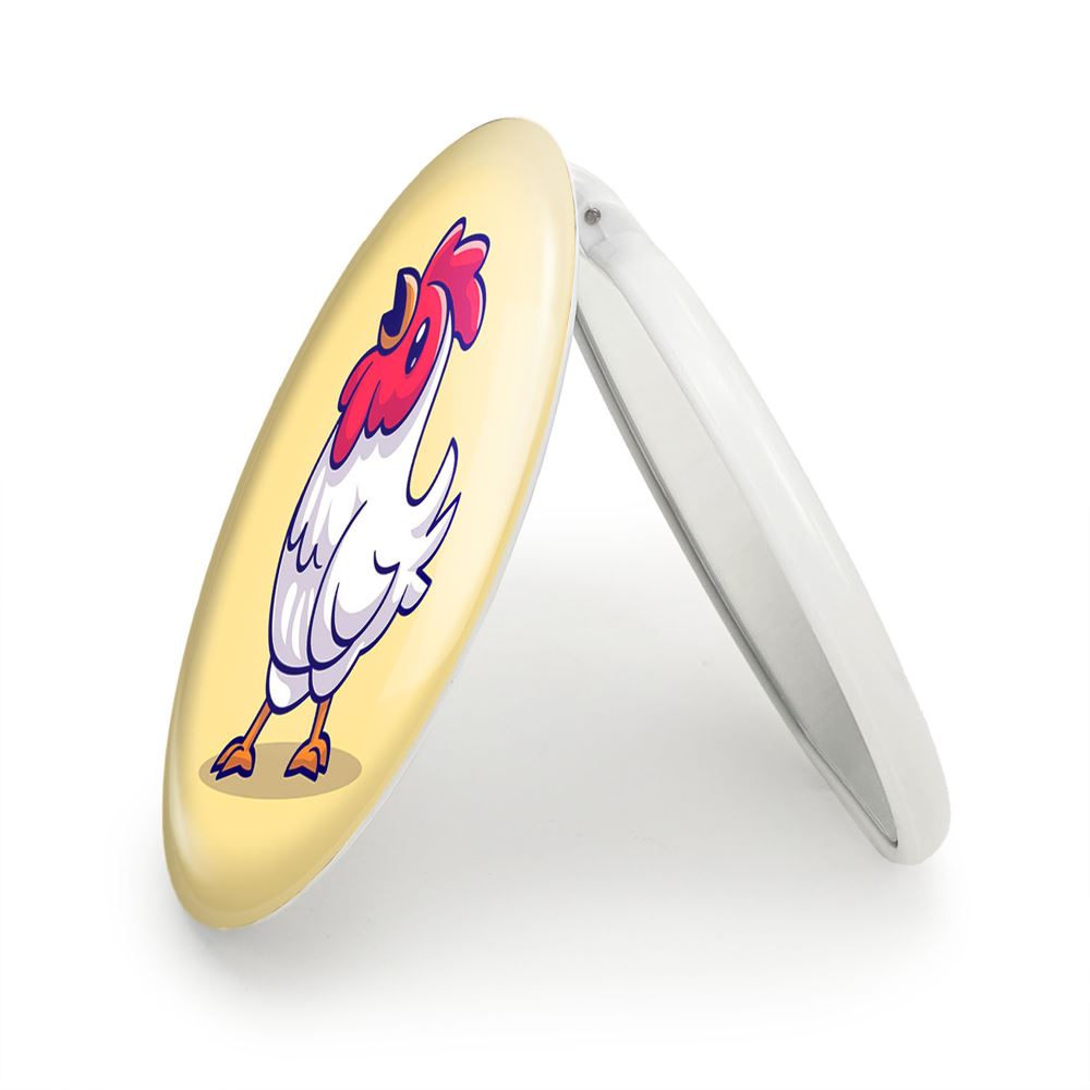 آینه های تاشو حیوانات بامزه مرغ خندالو، از جنس پلاستیک فشرده ABS تولید شده و به رنگ سفید می باشد. یکی از آینه ها ابعاد واقعی را نشان داده و دیگری با قابلیت بزرگنمایی، جزئیات را بهتر نمایش می دهد. ابعاد هر یک از آینه ها، دایره ای به قطر 7.5 سانت می باشد که نه خیلی بزرگ و غیر قابل استفاده در کیف آرایشی ست و نه خیلی کوچک که تصویر خاصی در آن مشاهده نشود. آینه تاشو حیوانات بامزه مرغ سایزی استاندارد و کارآمد دارد و در هر کیفی جا میگیرد. چاپ طرح بوسیله چاپگرهای دیجیتال شش رنگ با شفافیت و کیفیتی مثال زدنی بر روی یک وجه از بدنه ی آینه انجام گرفته و با روکش لمینت حرارتی پوشیده شده که در مقابل آسیب و خط و خش مقاوم بوده و کیفیت بالایی دارد. درب آینه بوسیله قفل بدنه ی آن، باز نمی ماند و کاملا بسته می شود و مناسب قرار گیری در کیف لوازم آرایش و کیف های کوچک دستی نیز هست. آینه های تاشو حیوانات بامزه مرغ خندالو با تنوع طرحی بسیار بالا، سلیقه هر نوع مخاطبی را تامین میکند.
