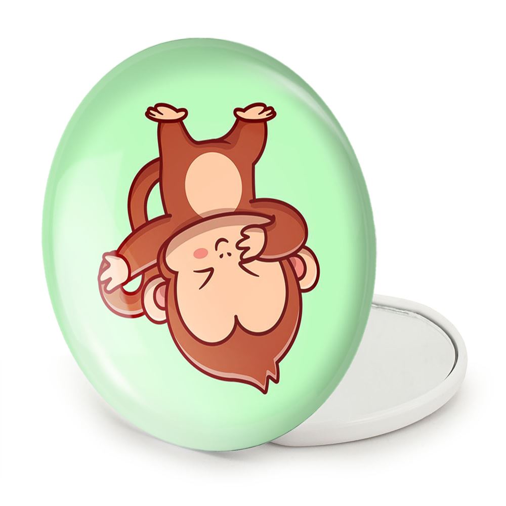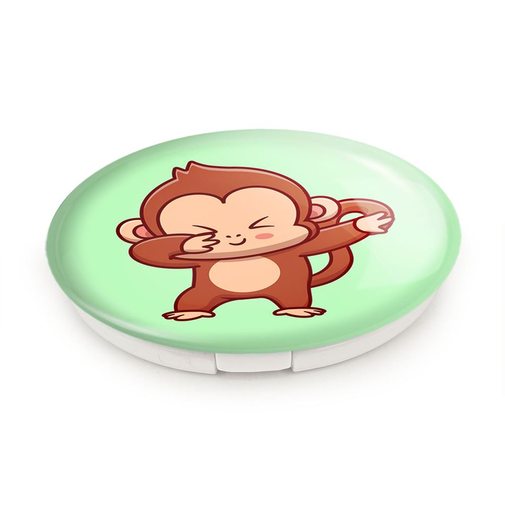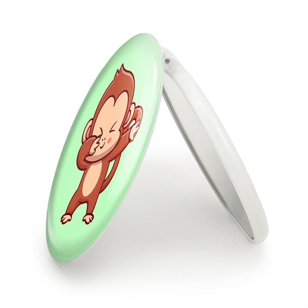 آینه های تاشو حیوانات بامزه میمون خندالو، از جنس پلاستیک فشرده ABS تولید شده و به رنگ سفید می باشد. یکی از آینه ها ابعاد واقعی را نشان داده و دیگری با قابلیت بزرگنمایی، جزئیات را بهتر نمایش می دهد. ابعاد هر یک از آینه ها، دایره ای به قطر 7.5 سانت می باشد که نه خیلی بزرگ و غیر قابل استفاده در کیف آرایشی ست و نه خیلی کوچک که تصویر خاصی در آن مشاهده نشود. آینه تاشو حیوانات بامزه میمون سایزی استاندارد و کارآمد دارد و در هر کیفی جا میگیرد. چاپ طرح بوسیله چاپگرهای دیجیتال شش رنگ با شفافیت و کیفیتی مثال زدنی بر روی یک وجه از بدنه ی آینه انجام گرفته و با روکش لمینت حرارتی پوشیده شده که در مقابل آسیب و خط و خش مقاوم بوده و کیفیت بالایی دارد. درب آینه بوسیله قفل بدنه ی آن، باز نمی ماند و کاملا بسته می شود و مناسب قرار گیری در کیف لوازم آرایش و کیف های کوچک دستی نیز هست. آینه های تاشو حیوانات بامزه میمون خندالو با تنوع طرحی بسیار بالا، سلیقه هر نوع مخاطبی را تامین میکند.