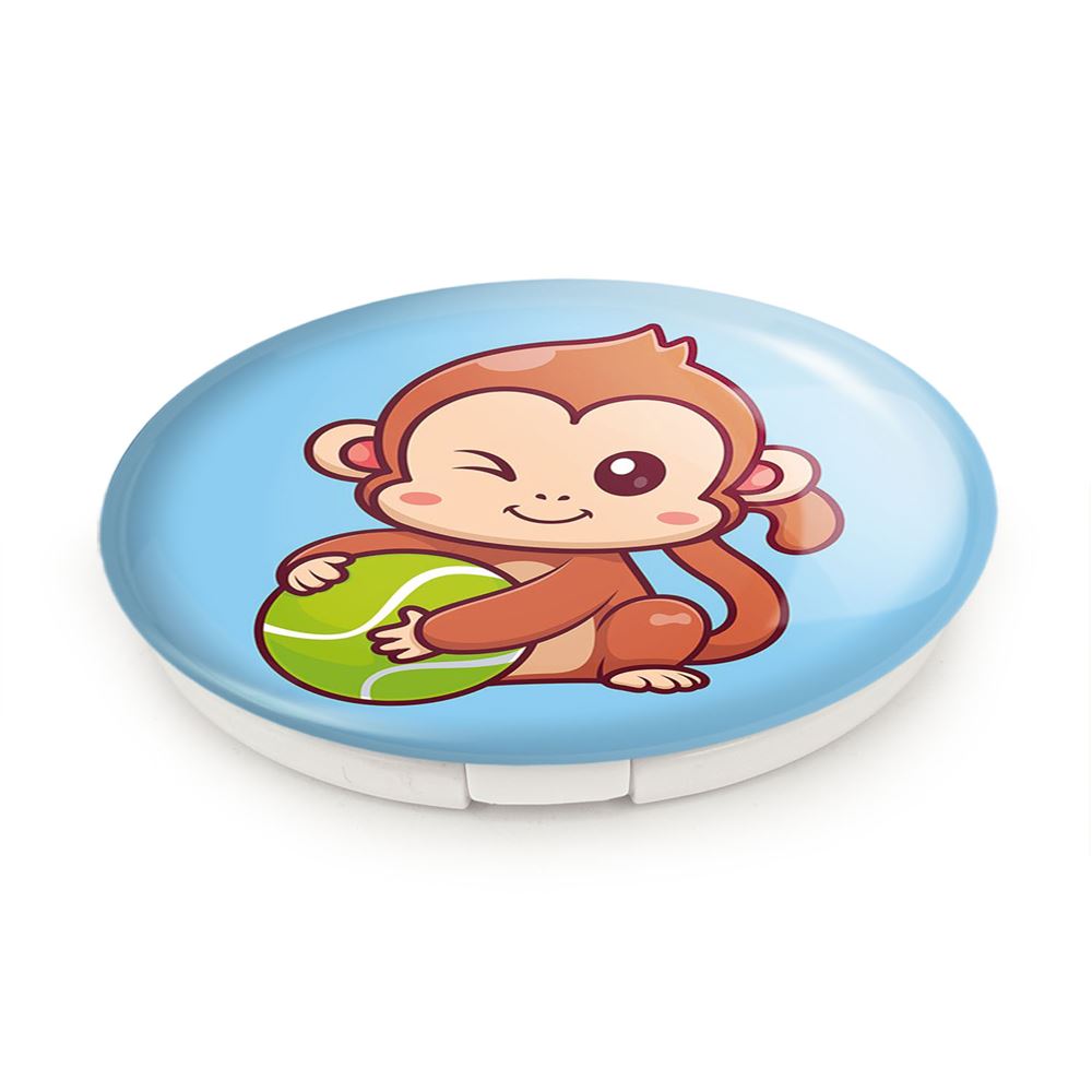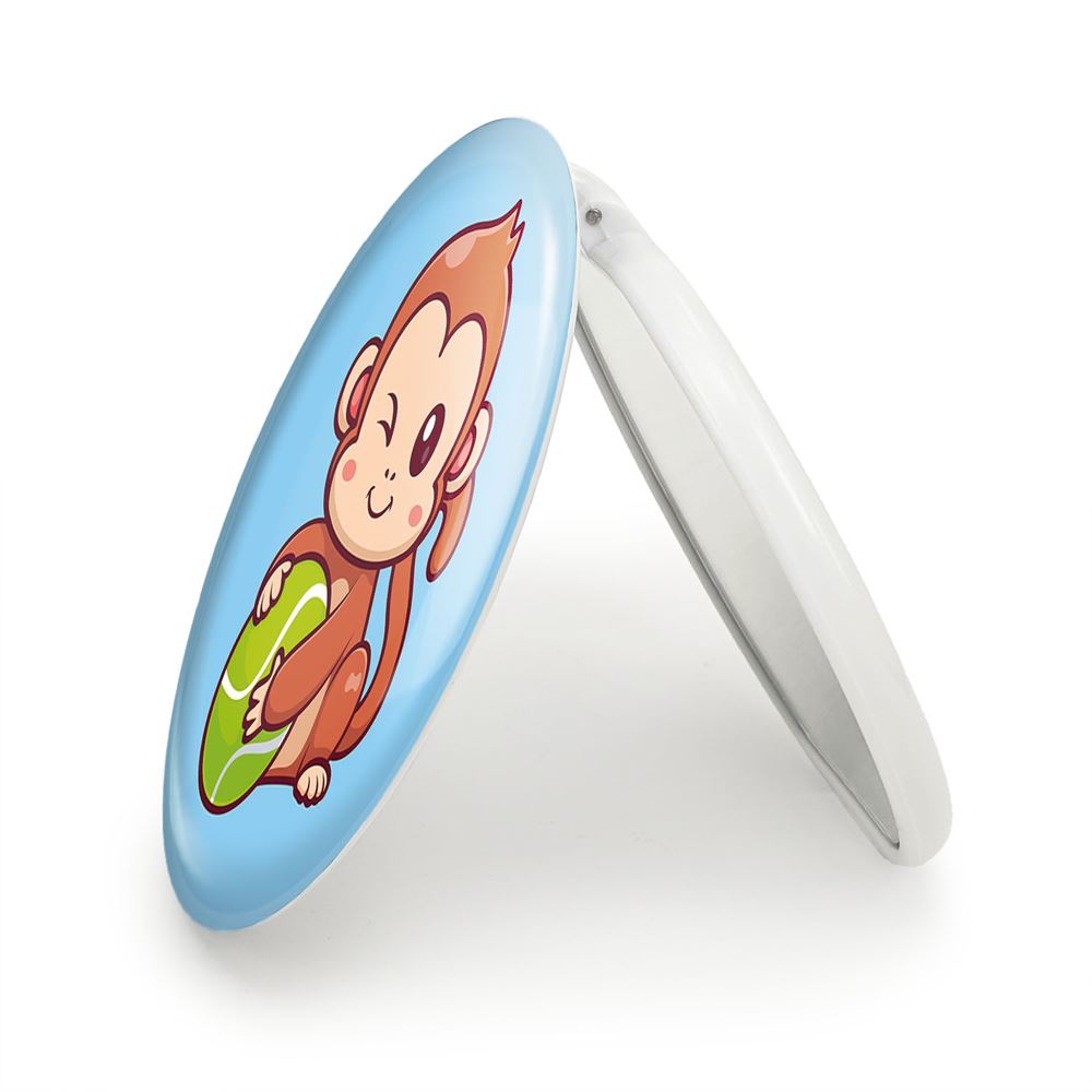 آینه های تاشو حیوانات بامزه میمون خندالو، از جنس پلاستیک فشرده ABS تولید شده و به رنگ سفید می باشد. یکی از آینه ها ابعاد واقعی را نشان داده و دیگری با قابلیت بزرگنمایی، جزئیات را بهتر نمایش می دهد. ابعاد هر یک از آینه ها، دایره ای به قطر 7.5 سانت می باشد که نه خیلی بزرگ و غیر قابل استفاده در کیف آرایشی ست و نه خیلی کوچک که تصویر خاصی در آن مشاهده نشود. آینه تاشو حیوانات بامزه میمون سایزی استاندارد و کارآمد دارد و در هر کیفی جا میگیرد. چاپ طرح بوسیله چاپگرهای دیجیتال شش رنگ با شفافیت و کیفیتی مثال زدنی بر روی یک وجه از بدنه ی آینه انجام گرفته و با روکش لمینت حرارتی پوشیده شده که در مقابل آسیب و خط و خش مقاوم بوده و کیفیت بالایی دارد. درب آینه بوسیله قفل بدنه ی آن، باز نمی ماند و کاملا بسته می شود و مناسب قرار گیری در کیف لوازم آرایش و کیف های کوچک دستی نیز هست. آینه های تاشو حیوانات بامزه میمون خندالو با تنوع طرحی بسیار بالا، سلیقه هر نوع مخاطبی را تامین میکند.