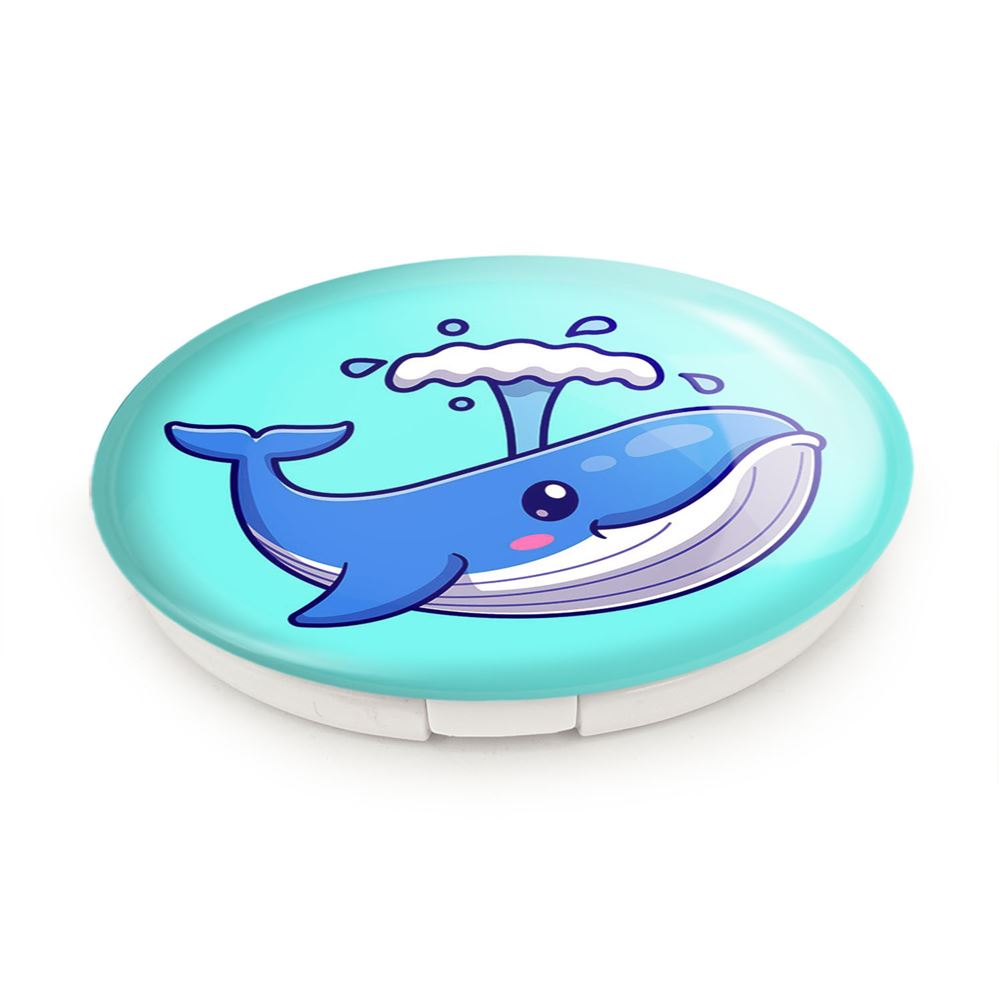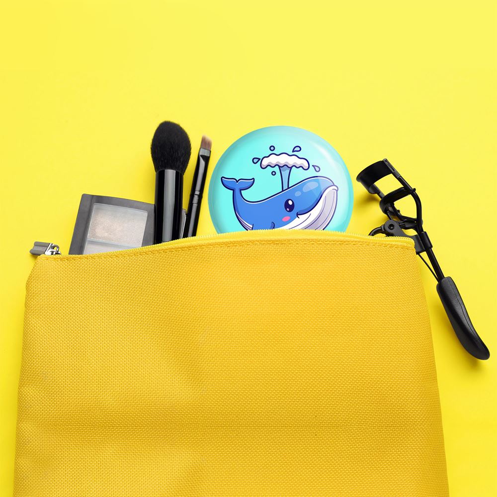 آینه های تاشو حیوانات بامزه نهنگ خندالو، از جنس پلاستیک فشرده ABS تولید شده و به رنگ سفید می باشد. یکی از آینه ها ابعاد واقعی را نشان داده و دیگری با قابلیت بزرگنمایی، جزئیات را بهتر نمایش می دهد. ابعاد هر یک از آینه ها، دایره ای به قطر 7.5 سانت می باشد که نه خیلی بزرگ و غیر قابل استفاده در کیف آرایشی ست و نه خیلی کوچک که تصویر خاصی در آن مشاهده نشود. آینه تاشو حیوانات بامزه نهنگ سایزی استاندارد و کارآمد دارد و در هر کیفی جا میگیرد. چاپ طرح بوسیله چاپگرهای دیجیتال شش رنگ با شفافیت و کیفیتی مثال زدنی بر روی یک وجه از بدنه ی آینه انجام گرفته و با روکش لمینت حرارتی پوشیده شده که در مقابل آسیب و خط و خش مقاوم بوده و کیفیت بالایی دارد. درب آینه بوسیله قفل بدنه ی آن، باز نمی ماند و کاملا بسته می شود و مناسب قرار گیری در کیف لوازم آرایش و کیف های کوچک دستی نیز هست. آینه های تاشو حیوانات بامزه نهنگ خندالو با تنوع طرحی بسیار بالا، سلیقه هر نوع مخاطبی را تامین میکند.