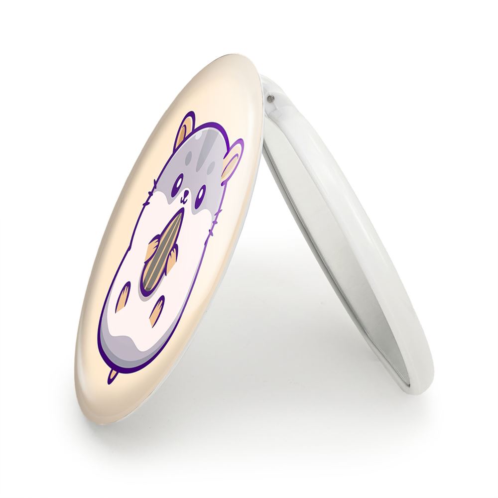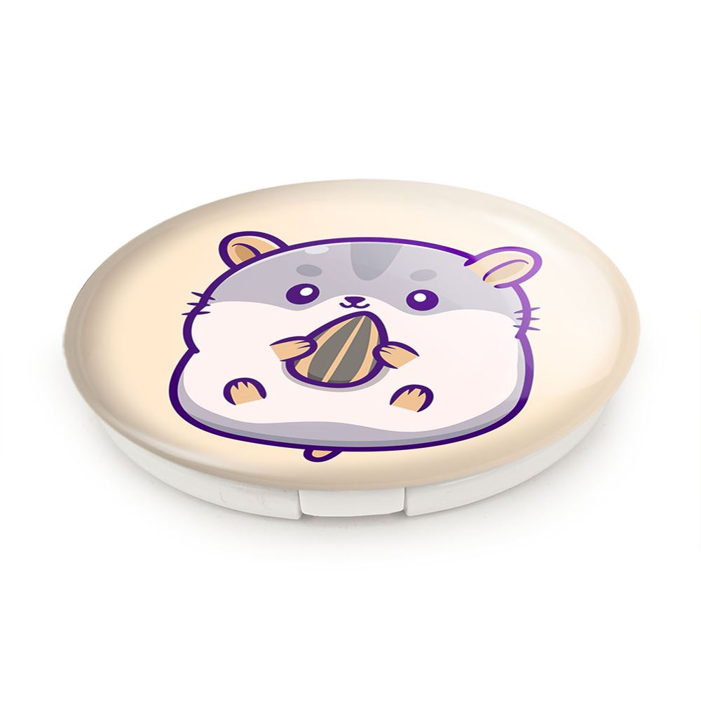آینه های تاشو حیوانات بامزه همستر خندالو، از جنس پلاستیک فشرده ABS تولید شده و به رنگ سفید می باشد. یکی از آینه ها ابعاد واقعی را نشان داده و دیگری با قابلیت بزرگنمایی، جزئیات را بهتر نمایش می دهد. ابعاد هر یک از آینه ها، دایره ای به قطر 7.5 سانت می باشد که نه خیلی بزرگ و غیر قابل استفاده در کیف آرایشی ست و نه خیلی کوچک که تصویر خاصی در آن مشاهده نشود. آینه تاشو حیوانات بامزه همستر سایزی استاندارد و کارآمد دارد و در هر کیفی جا میگیرد. چاپ طرح بوسیله چاپگرهای دیجیتال شش رنگ با شفافیت و کیفیتی مثال زدنی بر روی یک وجه از بدنه ی آینه انجام گرفته و با روکش لمینت حرارتی پوشیده شده که در مقابل آسیب و خط و خش مقاوم بوده و کیفیت بالایی دارد. درب آینه بوسیله قفل بدنه ی آن، باز نمی ماند و کاملا بسته می شود و مناسب قرار گیری در کیف لوازم آرایش و کیف های کوچک دستی نیز هست. آینه های تاشو حیوانات بامزه همستر خندالو با تنوع طرحی بسیار بالا، سلیقه هر نوع مخاطبی را تامین میکند.