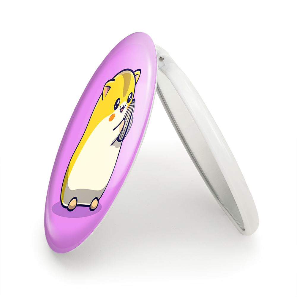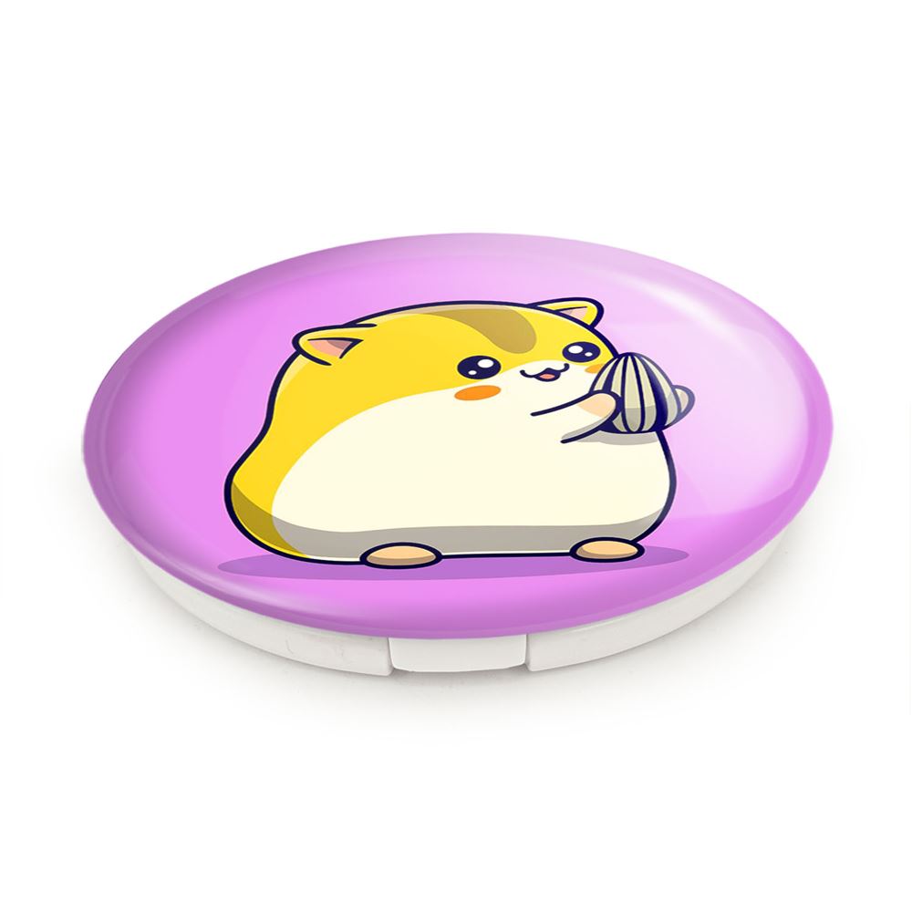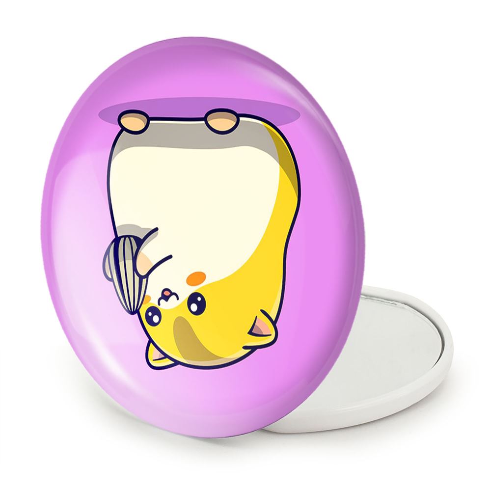 آینه های تاشو حیوانات بامزه همستر خندالو، از جنس پلاستیک فشرده ABS تولید شده و به رنگ سفید می باشد. یکی از آینه ها ابعاد واقعی را نشان داده و دیگری با قابلیت بزرگنمایی، جزئیات را بهتر نمایش می دهد. ابعاد هر یک از آینه ها، دایره ای به قطر 7.5 سانت می باشد که نه خیلی بزرگ و غیر قابل استفاده در کیف آرایشی ست و نه خیلی کوچک که تصویر خاصی در آن مشاهده نشود. آینه تاشو حیوانات بامزه همستر سایزی استاندارد و کارآمد دارد و در هر کیفی جا میگیرد. چاپ طرح بوسیله چاپگرهای دیجیتال شش رنگ با شفافیت و کیفیتی مثال زدنی بر روی یک وجه از بدنه ی آینه انجام گرفته و با روکش لمینت حرارتی پوشیده شده که در مقابل آسیب و خط و خش مقاوم بوده و کیفیت بالایی دارد. درب آینه بوسیله قفل بدنه ی آن، باز نمی ماند و کاملا بسته می شود و مناسب قرار گیری در کیف لوازم آرایش و کیف های کوچک دستی نیز هست. آینه های تاشو حیوانات بامزه همستر خندالو با تنوع طرحی بسیار بالا، سلیقه هر نوع مخاطبی را تامین میکند.