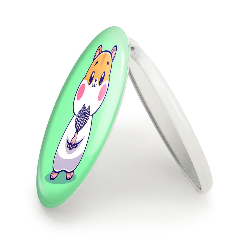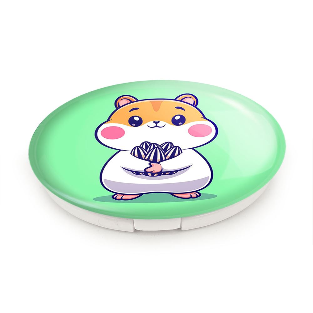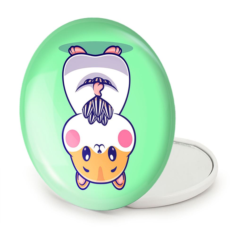 آینه های تاشو حیوانات بامزه همستر خندالو، از جنس پلاستیک فشرده ABS تولید شده و به رنگ سفید می باشد. یکی از آینه ها ابعاد واقعی را نشان داده و دیگری با قابلیت بزرگنمایی، جزئیات را بهتر نمایش می دهد. ابعاد هر یک از آینه ها، دایره ای به قطر 7.5 سانت می باشد که نه خیلی بزرگ و غیر قابل استفاده در کیف آرایشی ست و نه خیلی کوچک که تصویر خاصی در آن مشاهده نشود. آینه تاشو حیوانات بامزه همستر سایزی استاندارد و کارآمد دارد و در هر کیفی جا میگیرد. چاپ طرح بوسیله چاپگرهای دیجیتال شش رنگ با شفافیت و کیفیتی مثال زدنی بر روی یک وجه از بدنه ی آینه انجام گرفته و با روکش لمینت حرارتی پوشیده شده که در مقابل آسیب و خط و خش مقاوم بوده و کیفیت بالایی دارد. درب آینه بوسیله قفل بدنه ی آن، باز نمی ماند و کاملا بسته می شود و مناسب قرار گیری در کیف لوازم آرایش و کیف های کوچک دستی نیز هست. آینه های تاشو حیوانات بامزه همستر خندالو با تنوع طرحی بسیار بالا، سلیقه هر نوع مخاطبی را تامین میکند.