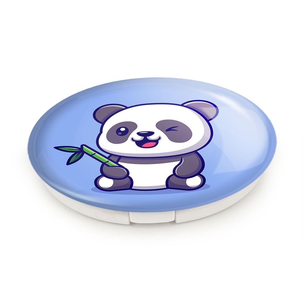 آینه های تاشو حیوانات بامزه پاندا خندالو، از جنس پلاستیک فشرده ABS تولید شده و به رنگ سفید می باشد. یکی از آینه ها ابعاد واقعی را نشان داده و دیگری با قابلیت بزرگنمایی، جزئیات را بهتر نمایش می دهد. ابعاد هر یک از آینه ها، دایره ای به قطر 7.5 سانت می باشد که نه خیلی بزرگ و غیر قابل استفاده در کیف آرایشی ست و نه خیلی کوچک که تصویر خاصی در آن مشاهده نشود. آینه تاشو حیوانات بامزه پاندا سایزی استاندارد و کارآمد دارد و در هر کیفی جا میگیرد. چاپ طرح بوسیله چاپگرهای دیجیتال شش رنگ با شفافیت و کیفیتی مثال زدنی بر روی یک وجه از بدنه ی آینه انجام گرفته و با روکش لمینت حرارتی پوشیده شده که در مقابل آسیب و خط و خش مقاوم بوده و کیفیت بالایی دارد. درب آینه بوسیله قفل بدنه ی آن، باز نمی ماند و کاملا بسته می شود و مناسب قرار گیری در کیف لوازم آرایش و کیف های کوچک دستی نیز هست. آینه های تاشو حیوانات بامزه پاندا خندالو با تنوع طرحی بسیار بالا، سلیقه هر نوع مخاطبی را تامین میکند.