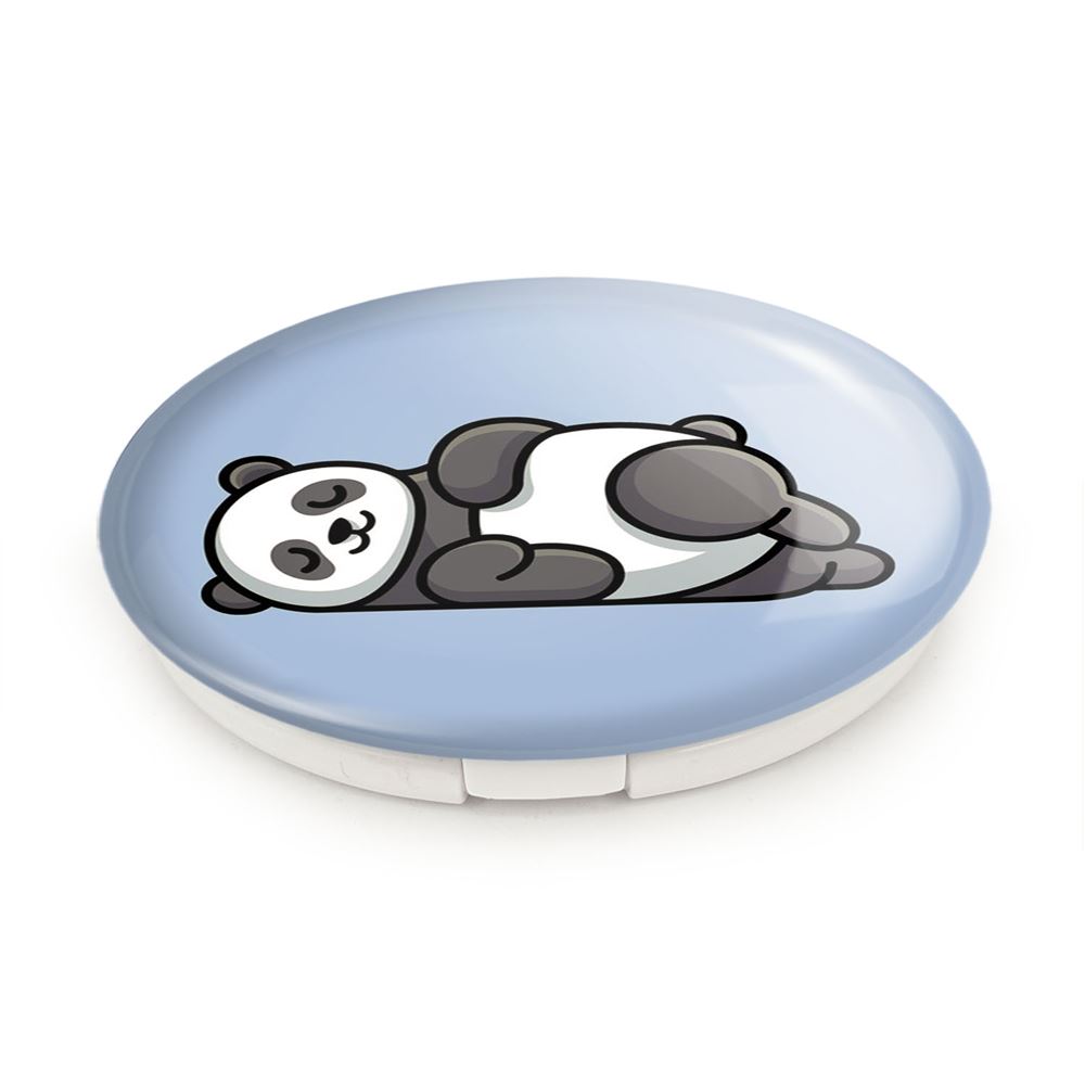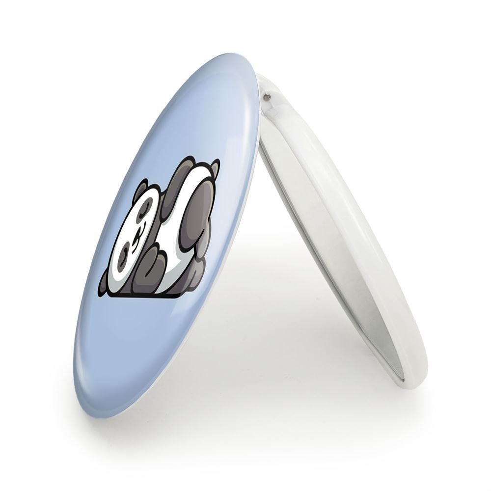 آینه های تاشو حیوانات بامزه پاندا خندالو، از جنس پلاستیک فشرده ABS تولید شده و به رنگ سفید می باشد. یکی از آینه ها ابعاد واقعی را نشان داده و دیگری با قابلیت بزرگنمایی، جزئیات را بهتر نمایش می دهد. ابعاد هر یک از آینه ها، دایره ای به قطر 7.5 سانت می باشد که نه خیلی بزرگ و غیر قابل استفاده در کیف آرایشی ست و نه خیلی کوچک که تصویر خاصی در آن مشاهده نشود. آینه تاشو حیوانات بامزه پاندا سایزی استاندارد و کارآمد دارد و در هر کیفی جا میگیرد. چاپ طرح بوسیله چاپگرهای دیجیتال شش رنگ با شفافیت و کیفیتی مثال زدنی بر روی یک وجه از بدنه ی آینه انجام گرفته و با روکش لمینت حرارتی پوشیده شده که در مقابل آسیب و خط و خش مقاوم بوده و کیفیت بالایی دارد. درب آینه بوسیله قفل بدنه ی آن، باز نمی ماند و کاملا بسته می شود و مناسب قرار گیری در کیف لوازم آرایش و کیف های کوچک دستی نیز هست. آینه های تاشو حیوانات بامزه پاندا خندالو با تنوع طرحی بسیار بالا، سلیقه هر نوع مخاطبی را تامین میکند.
