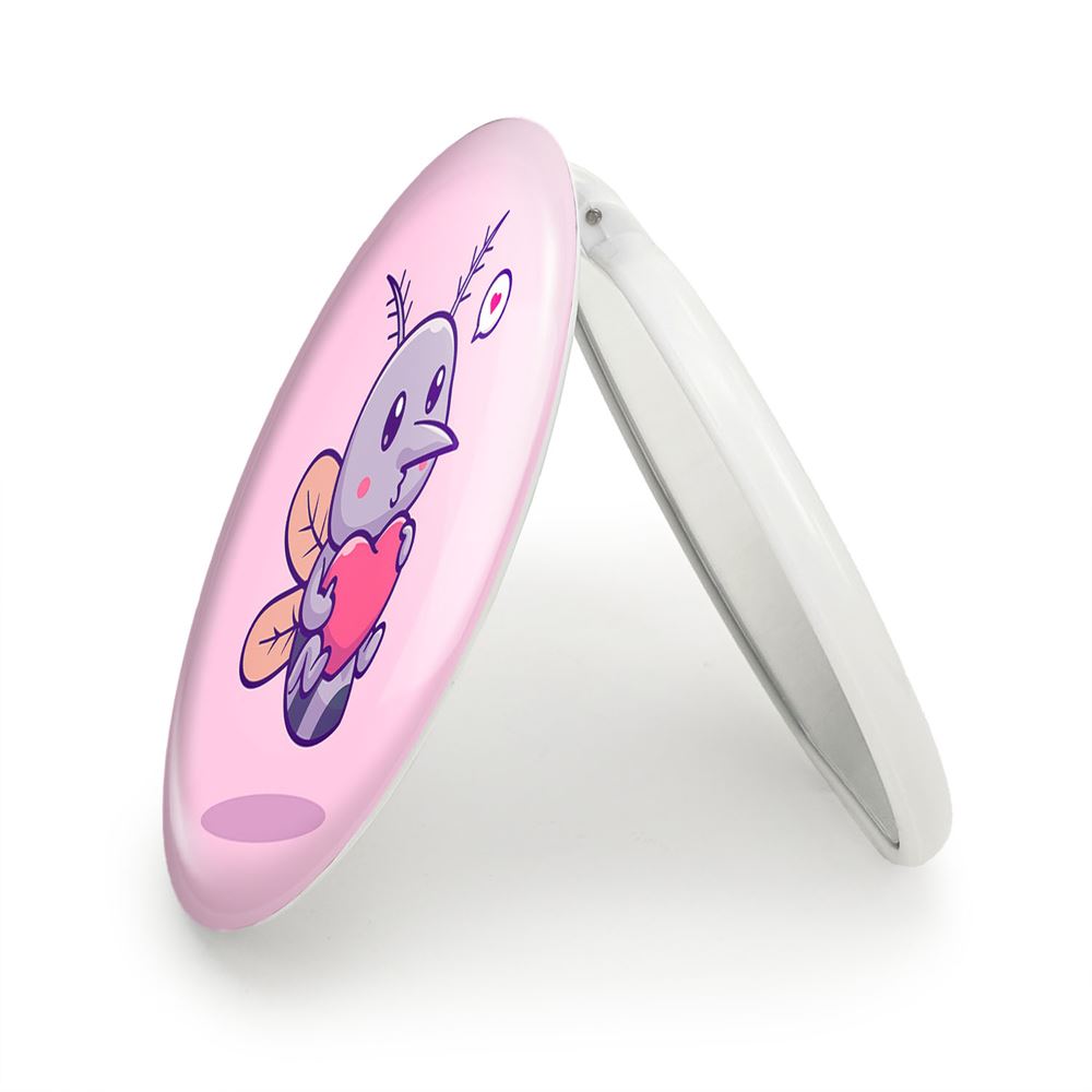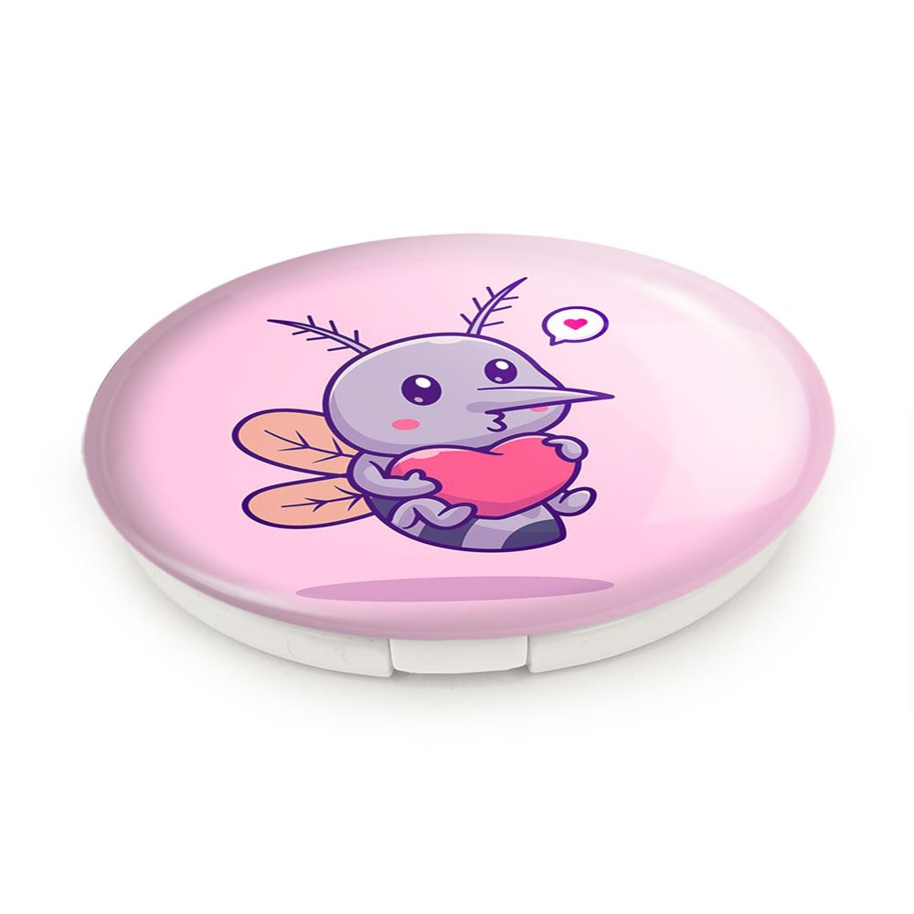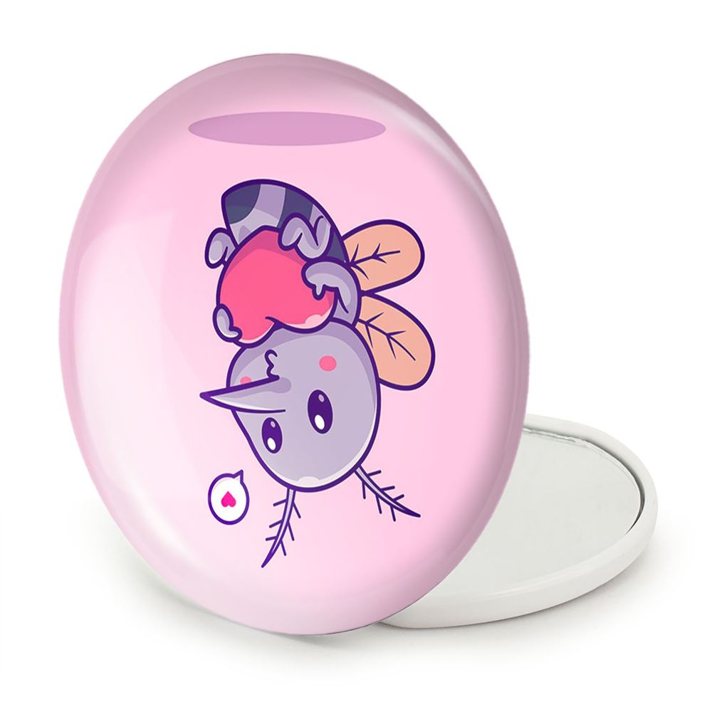 آینه های تاشو حیوانات بامزه پشه خندالو، از جنس پلاستیک فشرده ABS تولید شده و به رنگ سفید می باشد. یکی از آینه ها ابعاد واقعی را نشان داده و دیگری با قابلیت بزرگنمایی، جزئیات را بهتر نمایش می دهد. ابعاد هر یک از آینه ها، دایره ای به قطر 7.5 سانت می باشد که نه خیلی بزرگ و غیر قابل استفاده در کیف آرایشی ست و نه خیلی کوچک که تصویر خاصی در آن مشاهده نشود. آینه تاشو حیوانات بامزه پشه سایزی استاندارد و کارآمد دارد و در هر کیفی جا میگیرد. چاپ طرح بوسیله چاپگرهای دیجیتال شش رنگ با شفافیت و کیفیتی مثال زدنی بر روی یک وجه از بدنه ی آینه انجام گرفته و با روکش لمینت حرارتی پوشیده شده که در مقابل آسیب و خط و خش مقاوم بوده و کیفیت بالایی دارد. درب آینه بوسیله قفل بدنه ی آن، باز نمی ماند و کاملا بسته می شود و مناسب قرار گیری در کیف لوازم آرایش و کیف های کوچک دستی نیز هست. آینه های تاشو حیوانات بامزه پشه خندالو با تنوع طرحی بسیار بالا، سلیقه هر نوع مخاطبی را تامین میکند.