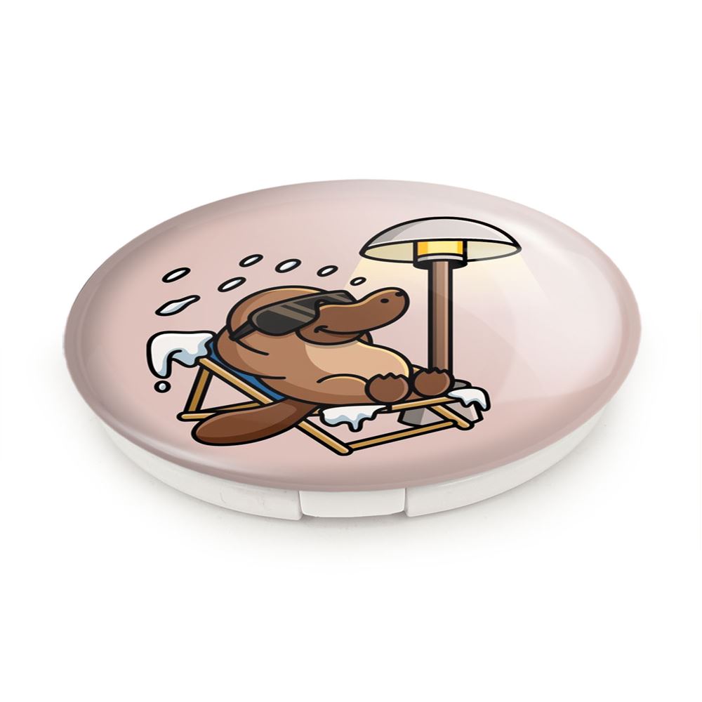 آینه های تاشو حیوانات بامزه پلاتیپوس خندالو، از جنس پلاستیک فشرده ABS تولید شده و به رنگ سفید می باشد. یکی از آینه ها ابعاد واقعی را نشان داده و دیگری با قابلیت بزرگنمایی، جزئیات را بهتر نمایش می دهد. ابعاد هر یک از آینه ها، دایره ای به قطر 7.5 سانت می باشد که نه خیلی بزرگ و غیر قابل استفاده در کیف آرایشی ست و نه خیلی کوچک که تصویر خاصی در آن مشاهده نشود. آینه تاشو حیوانات بامزه پلاتیپوس سایزی استاندارد و کارآمد دارد و در هر کیفی جا میگیرد. چاپ طرح بوسیله چاپگرهای دیجیتال شش رنگ با شفافیت و کیفیتی مثال زدنی بر روی یک وجه از بدنه ی آینه انجام گرفته و با روکش لمینت حرارتی پوشیده شده که در مقابل آسیب و خط و خش مقاوم بوده و کیفیت بالایی دارد. درب آینه بوسیله قفل بدنه ی آن، باز نمی ماند و کاملا بسته می شود و مناسب قرار گیری در کیف لوازم آرایش و کیف های کوچک دستی نیز هست. آینه های تاشو حیوانات بامزه پلاتیپوس خندالو با تنوع طرحی بسیار بالا، سلیقه هر نوع مخاطبی را تامین میکند.