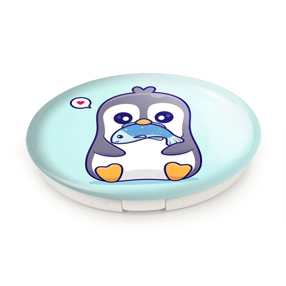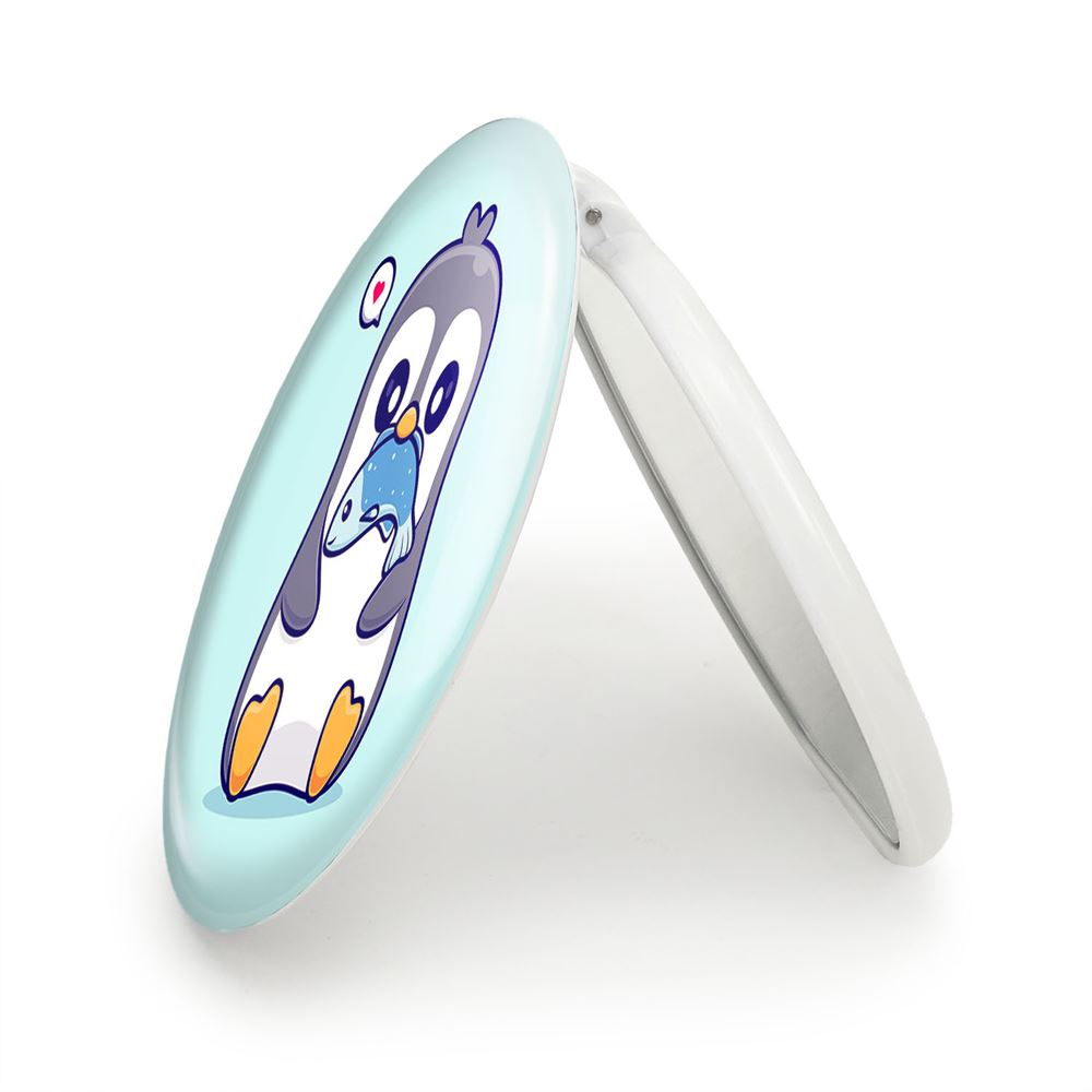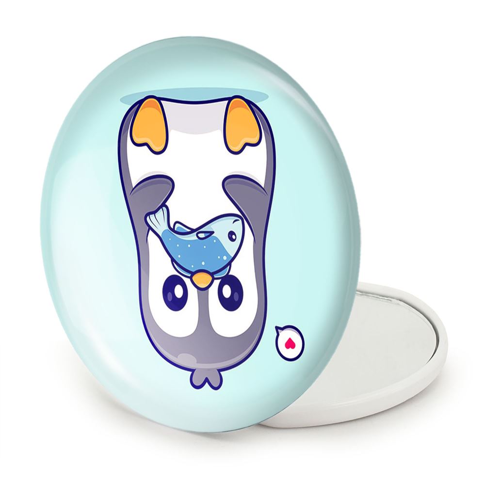آینه های تاشو حیوانات بامزه پنگوئن خندالو، از جنس پلاستیک فشرده ABS تولید شده و به رنگ سفید می باشد. یکی از آینه ها ابعاد واقعی را نشان داده و دیگری با قابلیت بزرگنمایی، جزئیات را بهتر نمایش می دهد. ابعاد هر یک از آینه ها، دایره ای به قطر 7.5 سانت می باشد که نه خیلی بزرگ و غیر قابل استفاده در کیف آرایشی ست و نه خیلی کوچک که تصویر خاصی در آن مشاهده نشود. آینه تاشو حیوانات بامزه پنگوئن سایزی استاندارد و کارآمد دارد و در هر کیفی جا میگیرد. چاپ طرح بوسیله چاپگرهای دیجیتال شش رنگ با شفافیت و کیفیتی مثال زدنی بر روی یک وجه از بدنه ی آینه انجام گرفته و با روکش لمینت حرارتی پوشیده شده که در مقابل آسیب و خط و خش مقاوم بوده و کیفیت بالایی دارد. درب آینه بوسیله قفل بدنه ی آن، باز نمی ماند و کاملا بسته می شود و مناسب قرار گیری در کیف لوازم آرایش و کیف های کوچک دستی نیز هست. آینه های تاشو حیوانات بامزه پنگوئن خندالو با تنوع طرحی بسیار بالا، سلیقه هر نوع مخاطبی را تامین میکند.