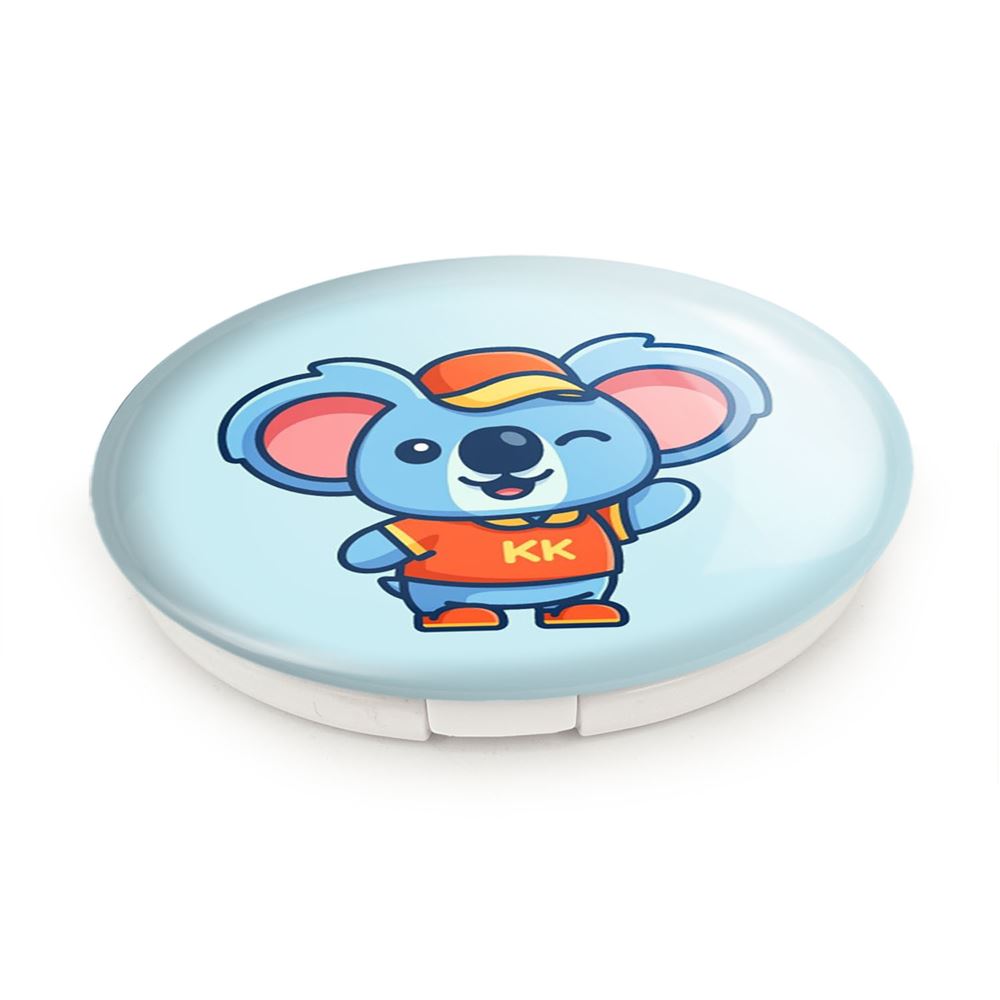 آینه های تاشو حیوانات بامزه کوآلا خندالو، از جنس پلاستیک فشرده ABS تولید شده و به رنگ سفید می باشد. یکی از آینه ها ابعاد واقعی را نشان داده و دیگری با قابلیت بزرگنمایی، جزئیات را بهتر نمایش می دهد. ابعاد هر یک از آینه ها، دایره ای به قطر 7.5 سانت می باشد که نه خیلی بزرگ و غیر قابل استفاده در کیف آرایشی ست و نه خیلی کوچک که تصویر خاصی در آن مشاهده نشود. آینه تاشو حیوانات بامزه کوآلا سایزی استاندارد و کارآمد دارد و در هر کیفی جا میگیرد. چاپ طرح بوسیله چاپگرهای دیجیتال شش رنگ با شفافیت و کیفیتی مثال زدنی بر روی یک وجه از بدنه ی آینه انجام گرفته و با روکش لمینت حرارتی پوشیده شده که در مقابل آسیب و خط و خش مقاوم بوده و کیفیت بالایی دارد. درب آینه بوسیله قفل بدنه ی آن، باز نمی ماند و کاملا بسته می شود و مناسب قرار گیری در کیف لوازم آرایش و کیف های کوچک دستی نیز هست. آینه های تاشو حیوانات بامزه کوآلا خندالو با تنوع طرحی بسیار بالا، سلیقه هر نوع مخاطبی را تامین میکند.