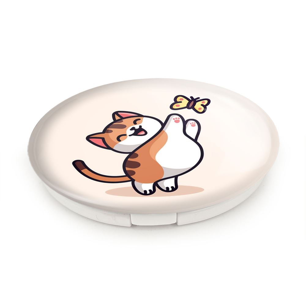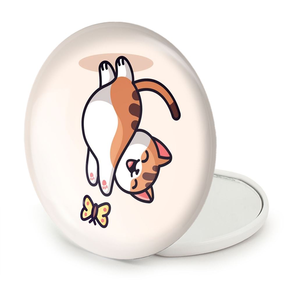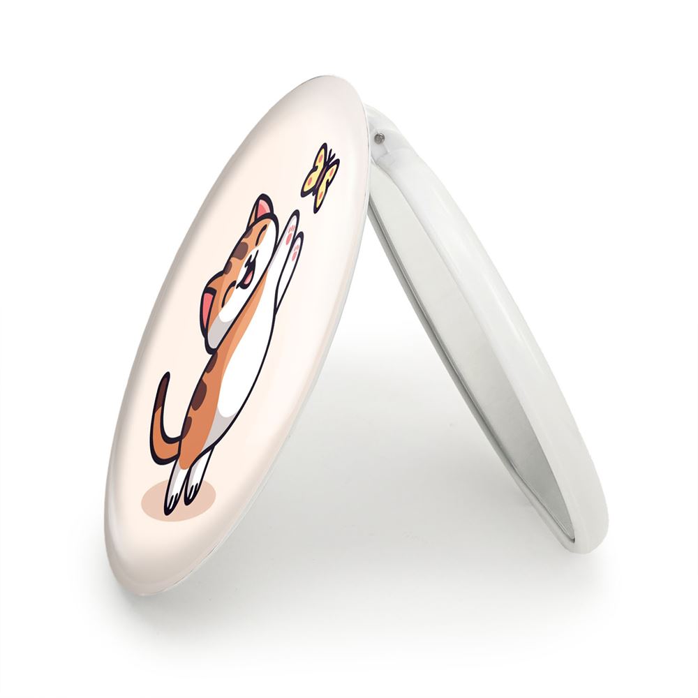 آینه های تاشو حیوانات بامزه گربه و پروانه خندالو، از جنس پلاستیک فشرده ABS تولید شده و به رنگ سفید می باشد. یکی از آینه ها ابعاد واقعی را نشان داده و دیگری با قابلیت بزرگنمایی، جزئیات را بهتر نمایش می دهد. ابعاد هر یک از آینه ها، دایره ای به قطر 7.5 سانت می باشد که نه خیلی بزرگ و غیر قابل استفاده در کیف آرایشی ست و نه خیلی کوچک که تصویر خاصی در آن مشاهده نشود. آینه تاشو حیوانات بامزه گربه و پروانه سایزی استاندارد و کارآمد دارد و در هر کیفی جا میگیرد. چاپ طرح بوسیله چاپگرهای دیجیتال شش رنگ با شفافیت و کیفیتی مثال زدنی بر روی یک وجه از بدنه ی آینه انجام گرفته و با روکش لمینت حرارتی پوشیده شده که در مقابل آسیب و خط و خش مقاوم بوده و کیفیت بالایی دارد. درب آینه بوسیله قفل بدنه ی آن، باز نمی ماند و کاملا بسته می شود و مناسب قرار گیری در کیف لوازم آرایش و کیف های کوچک دستی نیز هست. آینه های تاشو حیوانات بامزه گربه و پروانه خندالو با تنوع طرحی بسیار بالا، سلیقه هر نوع مخاطبی را تامین میکند.