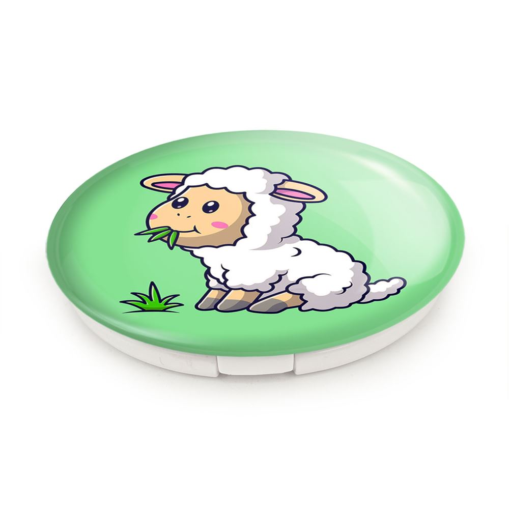 آینه های تاشو حیوانات بامزه گوسفند خندالو، از جنس پلاستیک فشرده ABS تولید شده و به رنگ سفید می باشد. یکی از آینه ها ابعاد واقعی را نشان داده و دیگری با قابلیت بزرگنمایی، جزئیات را بهتر نمایش می دهد. ابعاد هر یک از آینه ها، دایره ای به قطر 7.5 سانت می باشد که نه خیلی بزرگ و غیر قابل استفاده در کیف آرایشی ست و نه خیلی کوچک که تصویر خاصی در آن مشاهده نشود. آینه تاشو حیوانات بامزه گوسفند سایزی استاندارد و کارآمد دارد و در هر کیفی جا میگیرد. چاپ طرح بوسیله چاپگرهای دیجیتال شش رنگ با شفافیت و کیفیتی مثال زدنی بر روی یک وجه از بدنه ی آینه انجام گرفته و با روکش لمینت حرارتی پوشیده شده که در مقابل آسیب و خط و خش مقاوم بوده و کیفیت بالایی دارد. درب آینه بوسیله قفل بدنه ی آن، باز نمی ماند و کاملا بسته می شود و مناسب قرار گیری در کیف لوازم آرایش و کیف های کوچک دستی نیز هست. آینه های تاشو حیوانات بامزه گوسفند خندالو با تنوع طرحی بسیار بالا، سلیقه هر نوع مخاطبی را تامین میکند.