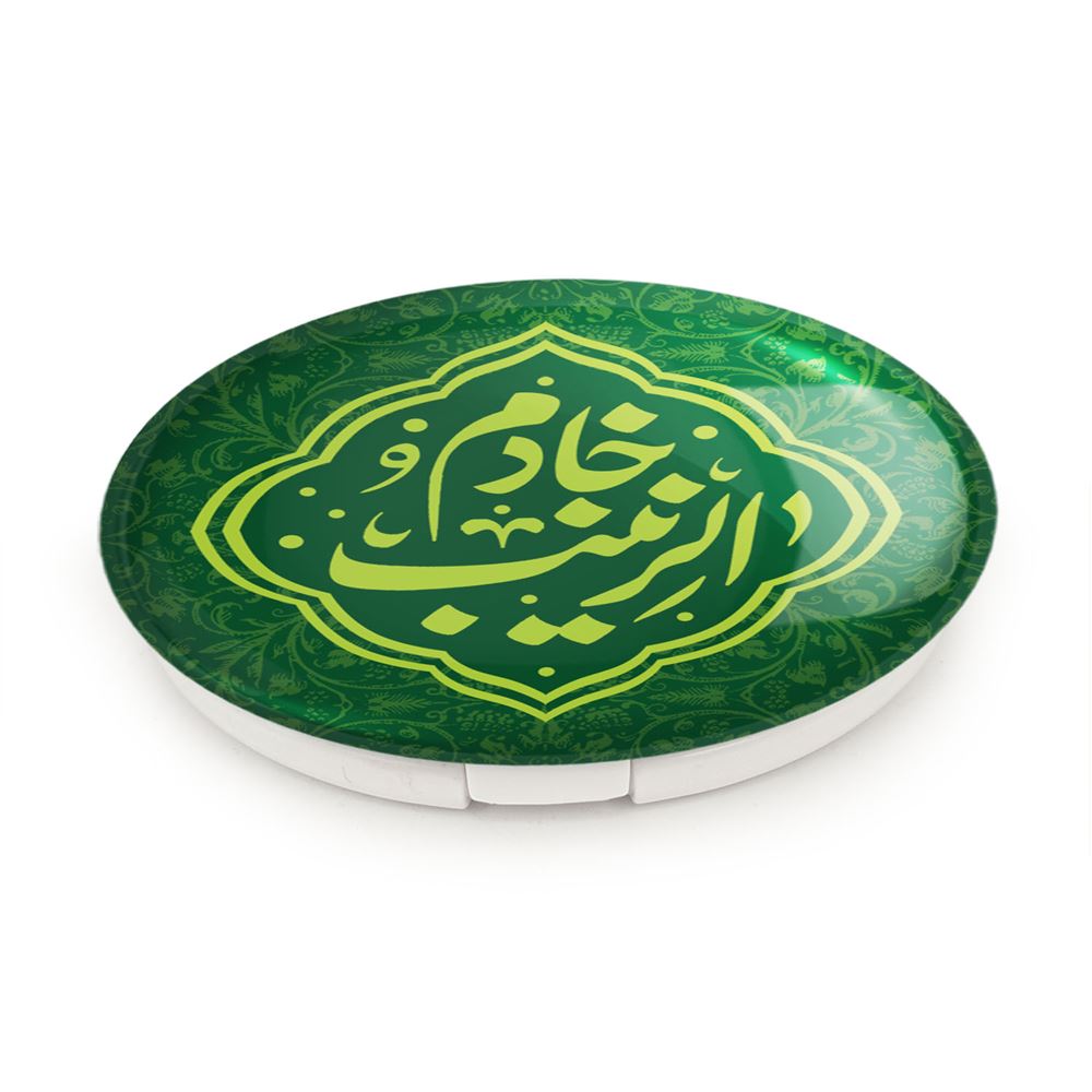 آینه های تاشو خادم الزینب خندالو، از جنس پلاستیک فشرده ABS تولید شده و به رنگ سفید می باشد. یکی از آینه ها ابعاد واقعی را نشان داده و دیگری با قابلیت بزرگنمایی، جزئیات را بهتر نمایش می دهد.