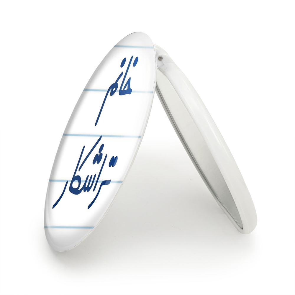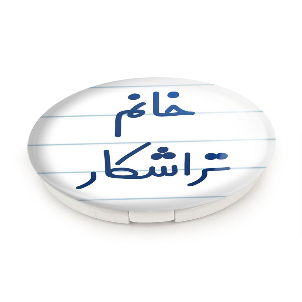 آینه های تاشو خانم تراشکار خندالو، از جنس پلاستیک فشرده ABS تولید شده و به رنگ سفید می باشد. یکی از آینه ها ابعاد واقعی را نشان داده و دیگری با قابلیت بزرگنمایی، جزئیات را بهتر نمایش می دهد. ابعاد هر یک از آینه ها، دایره ای به قطر 7.5 سانت می باشد که نه خیلی بزرگ و غیر قابل استفاده در کیف آرایشی ست و نه خیلی کوچک که تصویر خاصی در آن مشاهده نشود. آینه تاشو خانم تراشکار سایزی استاندارد و کارآمد دارد و در هر کیفی جا میگیرد. چاپ طرح بوسیله چاپگرهای دیجیتال شش رنگ با شفافیت و کیفیتی مثال زدنی بر روی یک وجه از بدنه ی آینه انجام گرفته و با روکش لمینت حرارتی پوشیده شده که در مقابل آسیب و خط و خش مقاوم بوده و کیفیت بالایی دارد. درب آینه بوسیله قفل بدنه ی آن، باز نمی ماند و کاملا بسته می شود و مناسب قرار گیری در کیف لوازم آرایش و کیف های کوچک دستی نیز هست. آینه های تاشو خانم تراشکار خندالو با تنوع طرحی بسیار بالا، سلیقه هر نوع مخاطبی را تامین میکند.