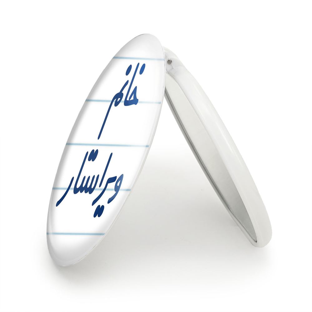 آینه های تاشو خانم ویراستار خندالو، از جنس پلاستیک فشرده ABS تولید شده و به رنگ سفید می باشد. یکی از آینه ها ابعاد واقعی را نشان داده و دیگری با قابلیت بزرگنمایی، جزئیات را بهتر نمایش می دهد. ابعاد هر یک از آینه ها، دایره ای به قطر 7.5 سانت می باشد که نه خیلی بزرگ و غیر قابل استفاده در کیف آرایشی ست و نه خیلی کوچک که تصویر خاصی در آن مشاهده نشود. آینه تاشو خانم ویراستار سایزی استاندارد و کارآمد دارد و در هر کیفی جا میگیرد. چاپ طرح بوسیله چاپگرهای دیجیتال شش رنگ با شفافیت و کیفیتی مثال زدنی بر روی یک وجه از بدنه ی آینه انجام گرفته و با روکش لمینت حرارتی پوشیده شده که در مقابل آسیب و خط و خش مقاوم بوده و کیفیت بالایی دارد. درب آینه بوسیله قفل بدنه ی آن، باز نمی ماند و کاملا بسته می شود و مناسب قرار گیری در کیف لوازم آرایش و کیف های کوچک دستی نیز هست. آینه های تاشو خانم ویراستار خندالو با تنوع طرحی بسیار بالا، سلیقه هر نوع مخاطبی را تامین میکند.