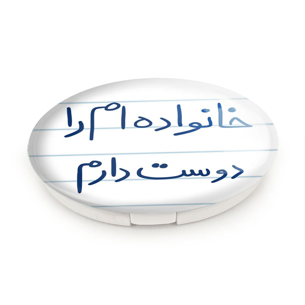 آینه های تاشو خانواده ام را دوست دارم خندالو، از جنس پلاستیک فشرده ABS تولید شده و به رنگ سفید می باشد. یکی از آینه ها ابعاد واقعی را نشان داده و دیگری با قابلیت بزرگنمایی، جزئیات را بهتر نمایش می دهد. ابعاد هر یک از آینه ها، دایره ای به قطر 7.5 سانت می باشد که نه خیلی بزرگ و غیر قابل استفاده در کیف آرایشی ست و نه خیلی کوچک که تصویر خاصی در آن مشاهده نشود. آینه تاشو خانواده ام را دوست دارم سایزی استاندارد و کارآمد دارد و در هر کیفی جا میگیرد. چاپ طرح بوسیله چاپگرهای دیجیتال شش رنگ با شفافیت و کیفیتی مثال زدنی بر روی یک وجه از بدنه ی آینه انجام گرفته و با روکش لمینت حرارتی پوشیده شده که در مقابل آسیب و خط و خش مقاوم بوده و کیفیت بالایی دارد. درب آینه بوسیله قفل بدنه ی آن، باز نمی ماند و کاملا بسته می شود و مناسب قرار گیری در کیف لوازم آرایش و کیف های کوچک دستی نیز هست. آینه های تاشو خانواده ام را دوست دارم خندالو با تنوع طرحی بسیار بالا، سلیقه هر نوع مخاطبی را تامین میکند.