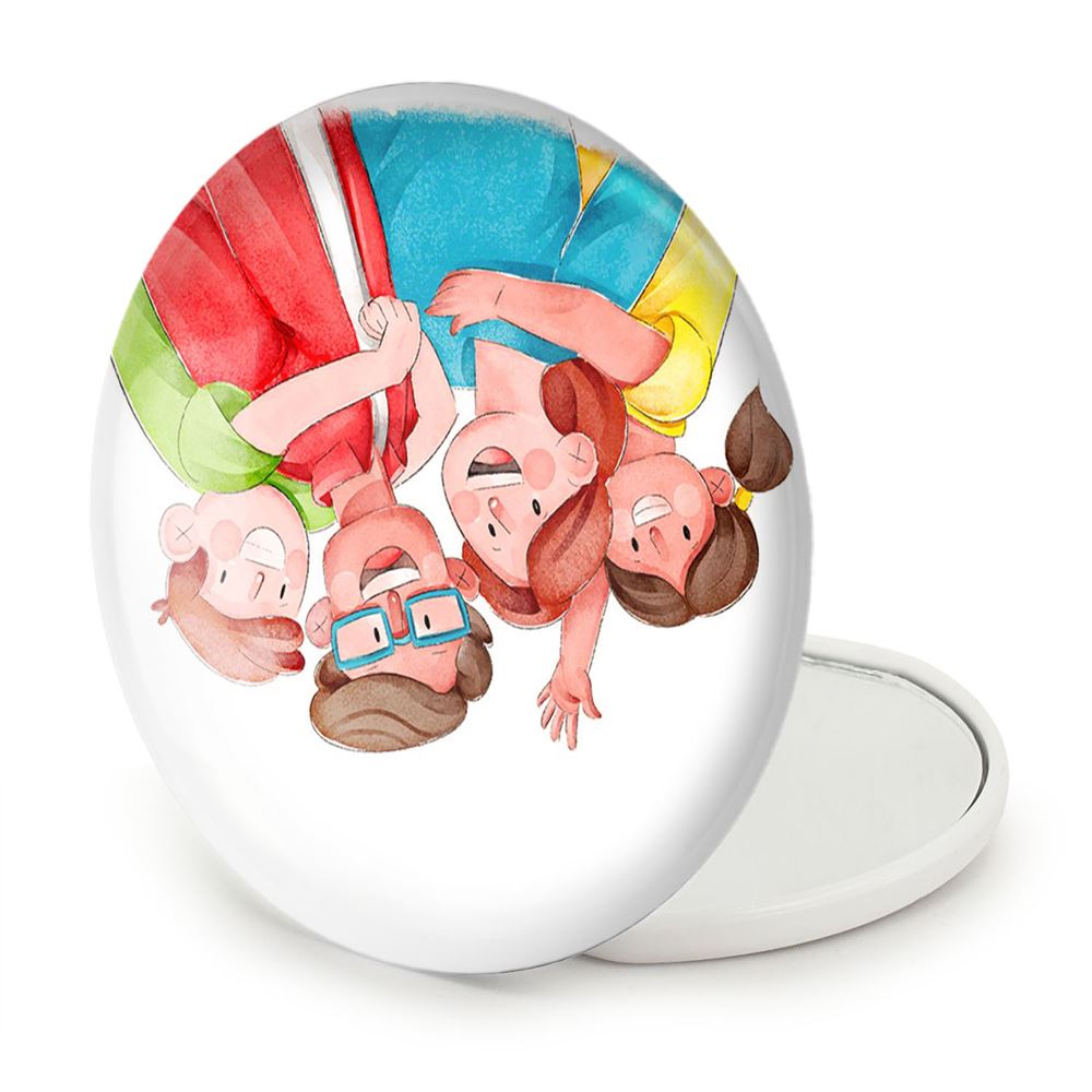 آینه های تاشو خانواده شاد خندالو، از جنس پلاستیک فشرده ABS تولید شده و به رنگ سفید می باشد. یکی از آینه ها ابعاد واقعی را نشان داده و دیگری با قابلیت بزرگنمایی، جزئیات را بهتر نمایش می دهد.