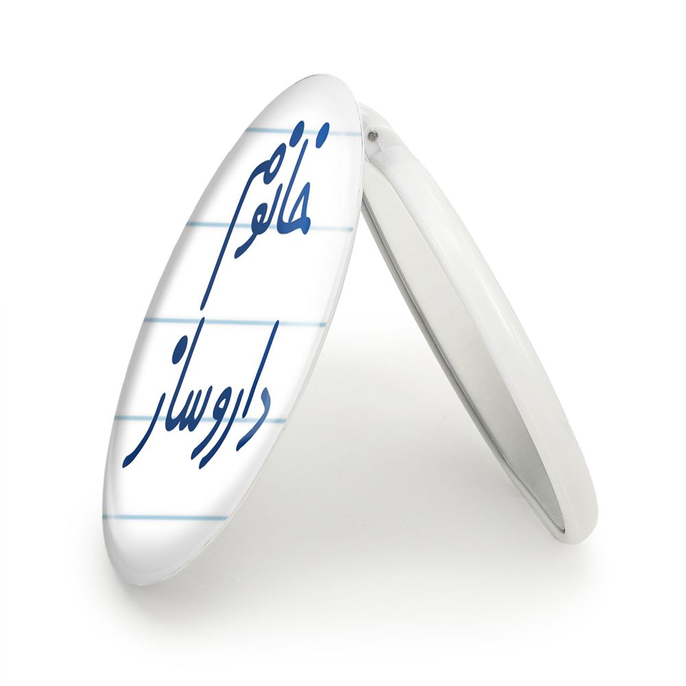 آینه های تاشو خانوم داروساز خندالو، از جنس پلاستیک فشرده ABS تولید شده و به رنگ سفید می باشد. یکی از آینه ها ابعاد واقعی را نشان داده و دیگری با قابلیت بزرگنمایی، جزئیات را بهتر نمایش می دهد. ابعاد هر یک از آینه ها، دایره ای به قطر 7.5 سانت می باشد که نه خیلی بزرگ و غیر قابل استفاده در کیف آرایشی ست و نه خیلی کوچک که تصویر خاصی در آن مشاهده نشود. آینه تاشو خانوم داروساز سایزی استاندارد و کارآمد دارد و در هر کیفی جا میگیرد. چاپ طرح بوسیله چاپگرهای دیجیتال شش رنگ با شفافیت و کیفیتی مثال زدنی بر روی یک وجه از بدنه ی آینه انجام گرفته و با روکش لمینت حرارتی پوشیده شده که در مقابل آسیب و خط و خش مقاوم بوده و کیفیت بالایی دارد. درب آینه بوسیله قفل بدنه ی آن، باز نمی ماند و کاملا بسته می شود و مناسب قرار گیری در کیف لوازم آرایش و کیف های کوچک دستی نیز هست. آینه های تاشو خانوم داروساز خندالو با تنوع طرحی بسیار بالا، سلیقه هر نوع مخاطبی را تامین میکند.