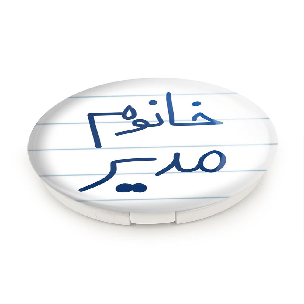 آینه های تاشو خانوم مدیر خندالو، از جنس پلاستیک فشرده ABS تولید شده و به رنگ سفید می باشد. یکی از آینه ها ابعاد واقعی را نشان داده و دیگری با قابلیت بزرگنمایی، جزئیات را بهتر نمایش می دهد. ابعاد هر یک از آینه ها، دایره ای به قطر 7.5 سانت می باشد که نه خیلی بزرگ و غیر قابل استفاده در کیف آرایشی ست و نه خیلی کوچک که تصویر خاصی در آن مشاهده نشود. آینه تاشو خانوم مدیر سایزی استاندارد و کارآمد دارد و در هر کیفی جا میگیرد. چاپ طرح بوسیله چاپگرهای دیجیتال شش رنگ با شفافیت و کیفیتی مثال زدنی بر روی یک وجه از بدنه ی آینه انجام گرفته و با روکش لمینت حرارتی پوشیده شده که در مقابل آسیب و خط و خش مقاوم بوده و کیفیت بالایی دارد. درب آینه بوسیله قفل بدنه ی آن، باز نمی ماند و کاملا بسته می شود و مناسب قرار گیری در کیف لوازم آرایش و کیف های کوچک دستی نیز هست. آینه های تاشو خانوم مدیر خندالو با تنوع طرحی بسیار بالا، سلیقه هر نوع مخاطبی را تامین میکند.