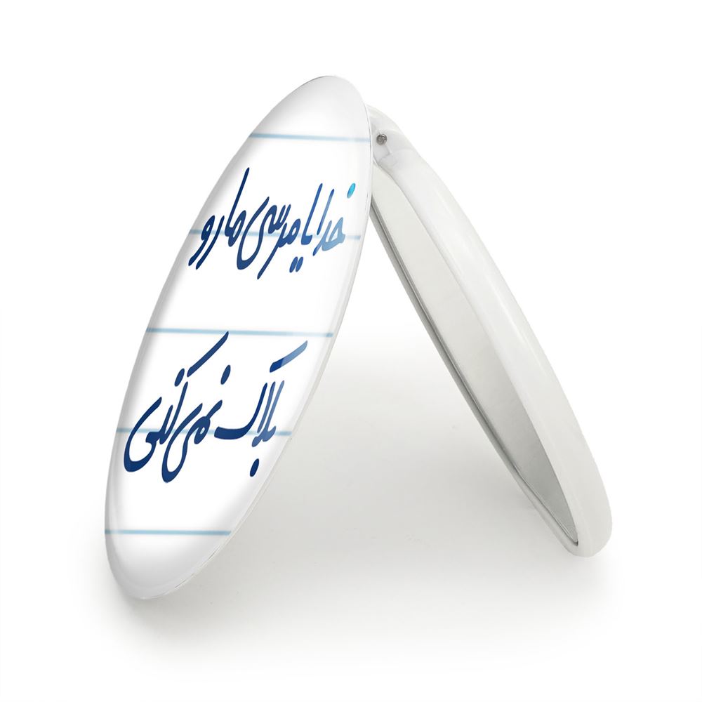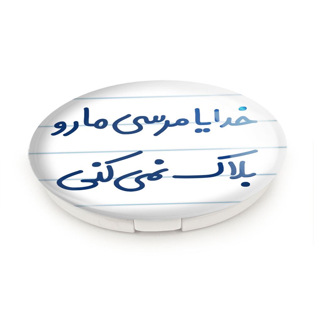 آینه های تاشو خدایا مرسی مارو بلاک نمی کنی خندالو، از جنس پلاستیک فشرده ABS تولید شده و به رنگ سفید می باشد. یکی از آینه ها ابعاد واقعی را نشان داده و دیگری با قابلیت بزرگنمایی، جزئیات را بهتر نمایش می دهد. ابعاد هر یک از آینه ها، دایره ای به قطر 7.5 سانت می باشد که نه خیلی بزرگ و غیر قابل استفاده در کیف آرایشی ست و نه خیلی کوچک که تصویر خاصی در آن مشاهده نشود. آینه تاشو خدایا مرسی مارو بلاک نمی کنی سایزی استاندارد و کارآمد دارد و در هر کیفی جا میگیرد. چاپ طرح بوسیله چاپگرهای دیجیتال شش رنگ با شفافیت و کیفیتی مثال زدنی بر روی یک وجه از بدنه ی آینه انجام گرفته و با روکش لمینت حرارتی پوشیده شده که در مقابل آسیب و خط و خش مقاوم بوده و کیفیت بالایی دارد. درب آینه بوسیله قفل بدنه ی آن، باز نمی ماند و کاملا بسته می شود و مناسب قرار گیری در کیف لوازم آرایش و کیف های کوچک دستی نیز هست. آینه های تاشو خدایا مرسی مارو بلاک نمی کنی خندالو با تنوع طرحی بسیار بالا، سلیقه هر نوع مخاطبی را تامین میکند.
