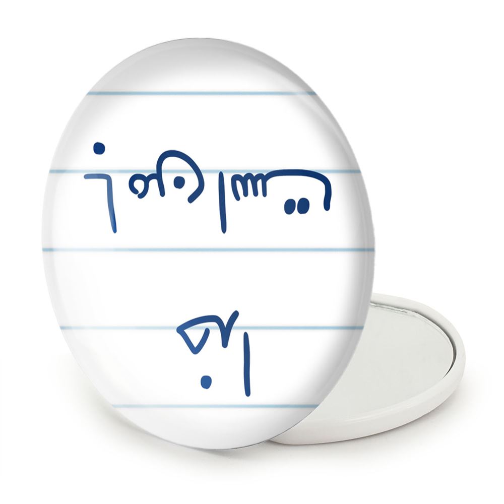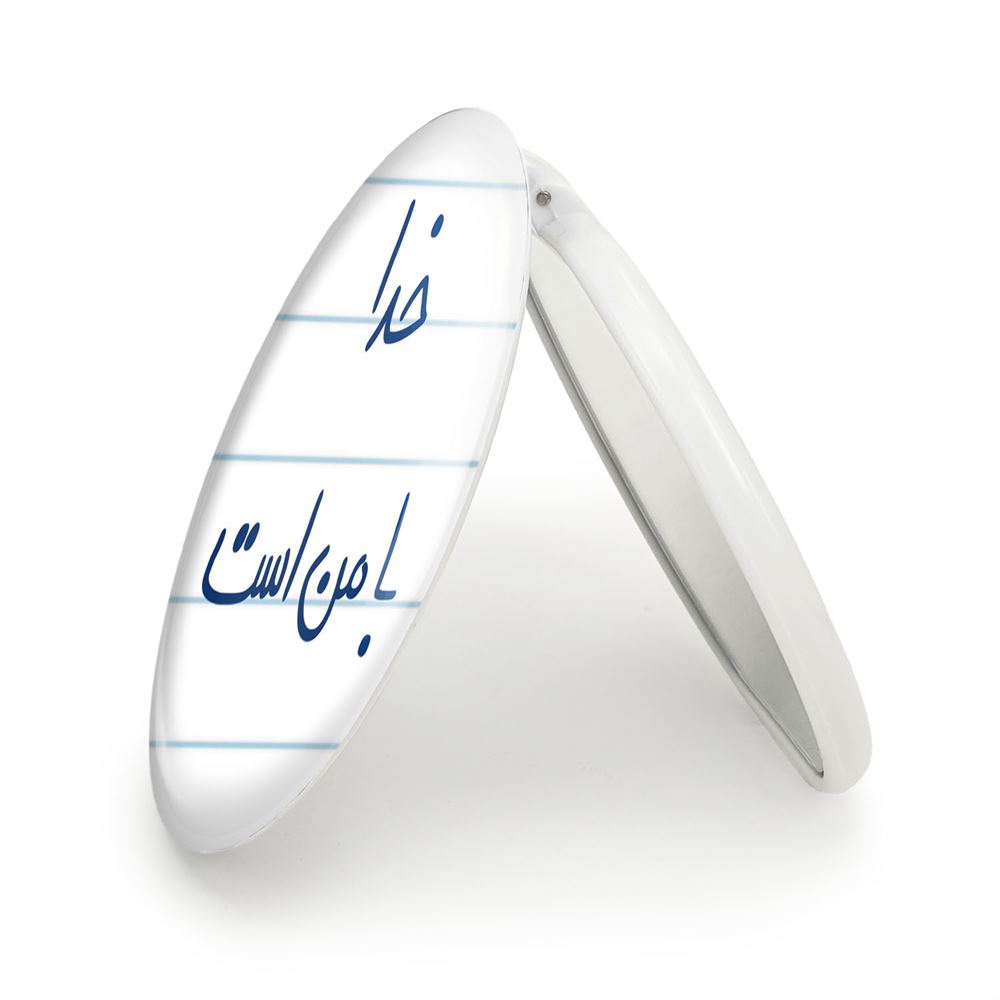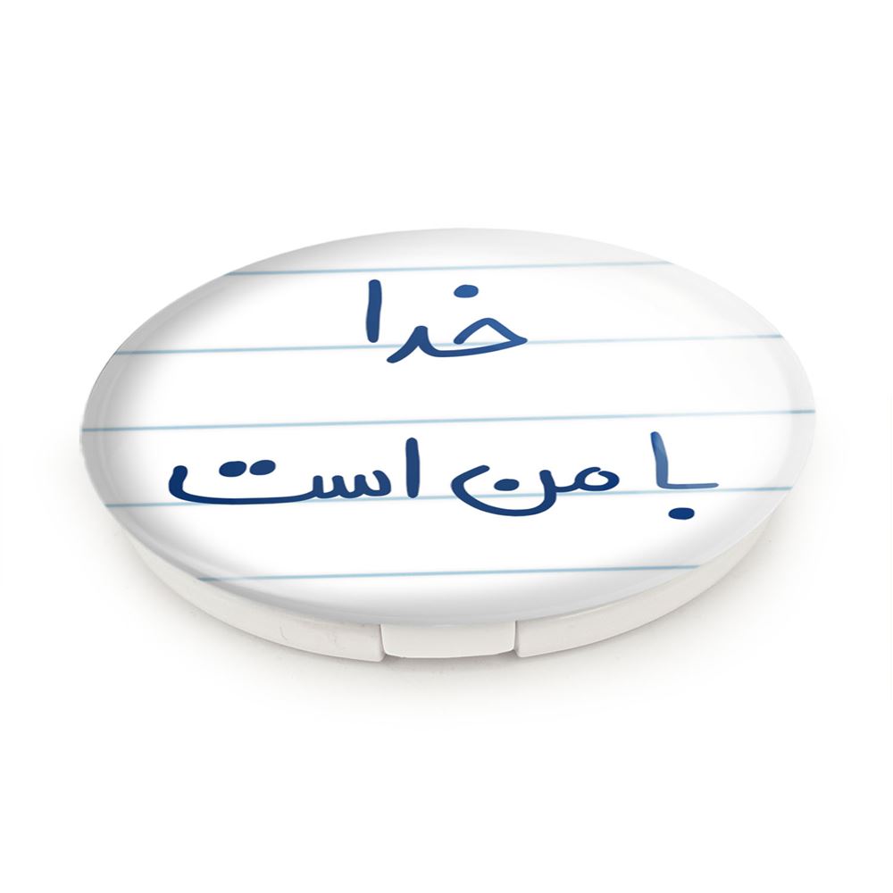 آینه های تاشو خدا با من است خندالو، از جنس پلاستیک فشرده ABS تولید شده و به رنگ سفید می باشد. یکی از آینه ها ابعاد واقعی را نشان داده و دیگری با قابلیت بزرگنمایی، جزئیات را بهتر نمایش می دهد. ابعاد هر یک از آینه ها، دایره ای به قطر 7.5 سانت می باشد که نه خیلی بزرگ و غیر قابل استفاده در کیف آرایشی ست و نه خیلی کوچک که تصویر خاصی در آن مشاهده نشود. آینه تاشو خدا با من است سایزی استاندارد و کارآمد دارد و در هر کیفی جا میگیرد. چاپ طرح بوسیله چاپگرهای دیجیتال شش رنگ با شفافیت و کیفیتی مثال زدنی بر روی یک وجه از بدنه ی آینه انجام گرفته و با روکش لمینت حرارتی پوشیده شده که در مقابل آسیب و خط و خش مقاوم بوده و کیفیت بالایی دارد. درب آینه بوسیله قفل بدنه ی آن، باز نمی ماند و کاملا بسته می شود و مناسب قرار گیری در کیف لوازم آرایش و کیف های کوچک دستی نیز هست. آینه های تاشو خدا با من است خندالو با تنوع طرحی بسیار بالا، سلیقه هر نوع مخاطبی را تامین میکند.