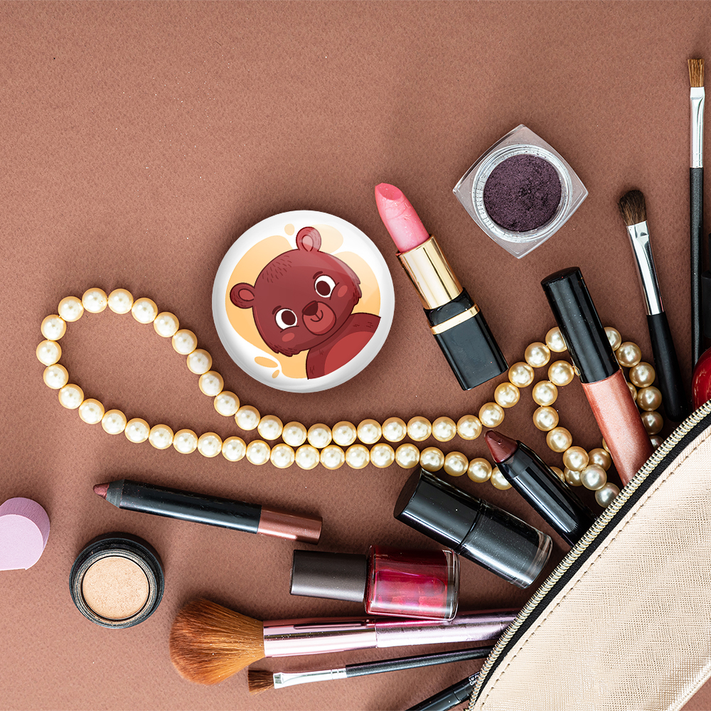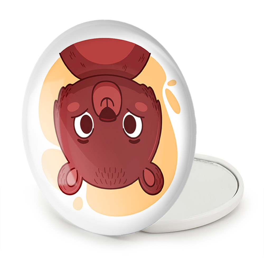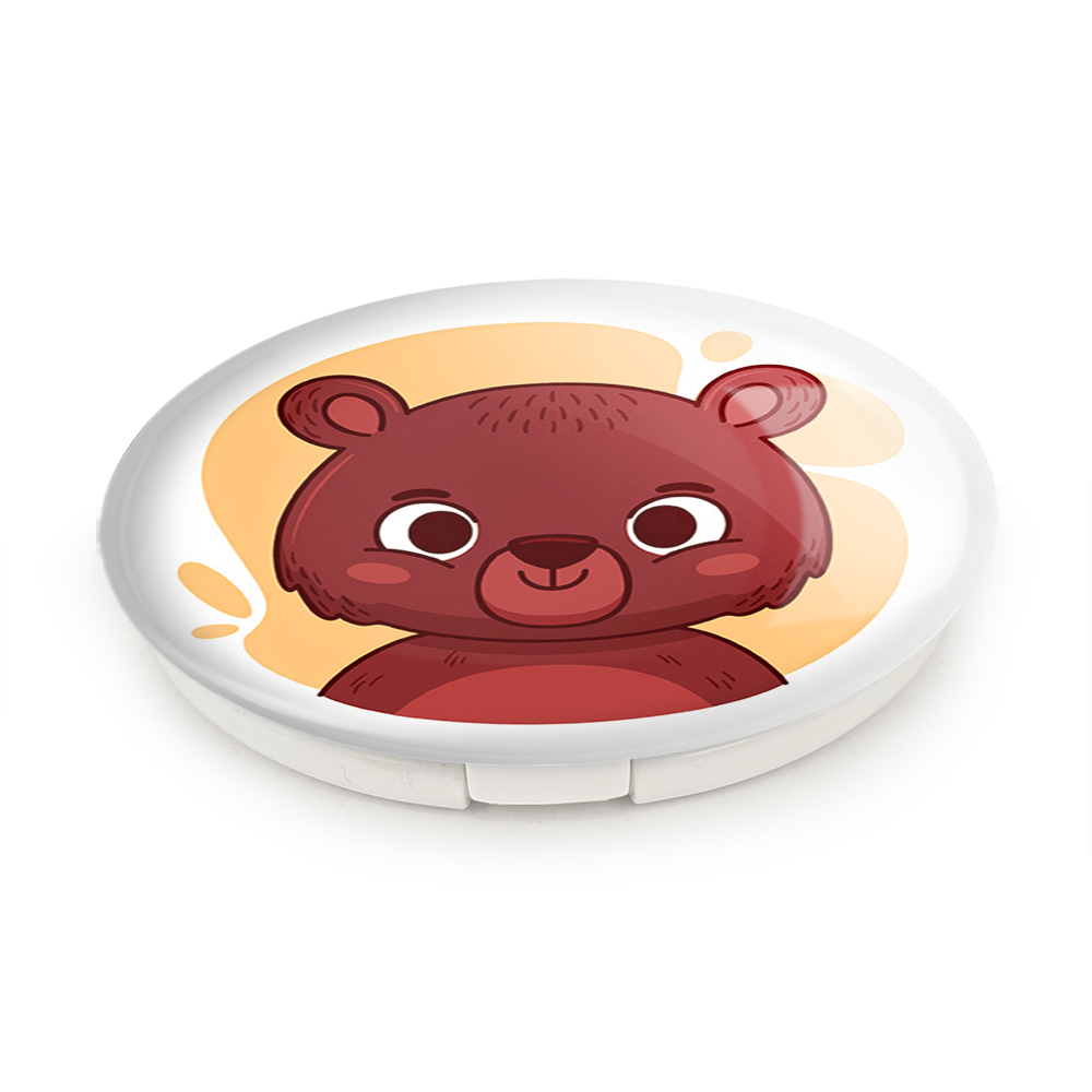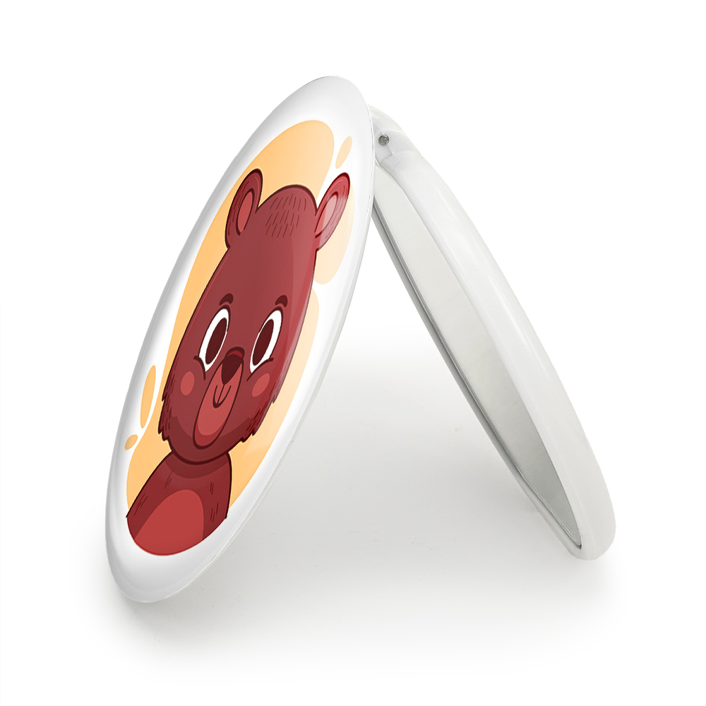 آینه های تاشو خرس حیوانات بامزه خندالو، از جنس پلاستیک فشرده ABS تولید شده و به رنگ سفید می باشد. یکی از آینه ها ابعاد واقعی را نشان داده و دیگری با قابلیت بزرگنمایی، جزئیات را بهتر نمایش می دهد. ابعاد هر یک از آینه ها، دایره ای به قطر 7.5 سانت می باشد که نه خیلی بزرگ و غیر قابل استفاده در کیف آرایشی ست و نه خیلی کوچک که تصویر خاصی در آن مشاهده نشود. آینه تاشو خرس حیوانات بامزه سایزی استاندارد و کارآمد دارد و در هر کیفی جا میگیرد. چاپ طرح بوسیله چاپگرهای دیجیتال شش رنگ با شفافیت و کیفیتی مثال زدنی بر روی یک وجه از بدنه ی آینه انجام گرفته و با روکش لمینت حرارتی پوشیده شده که در مقابل آسیب و خط و خش مقاوم بوده و کیفیت بالایی دارد. درب آینه بوسیله قفل بدنه ی آن، باز نمی ماند و کاملا بسته می شود و مناسب قرار گیری در کیف لوازم آرایش و کیف های کوچک دستی نیز هست. آینه های تاشو خرس حیوانات بامزه خندالو با تنوع طرحی بسیار بالا، سلیقه هر نوع مخاطبی را تامین میکند.