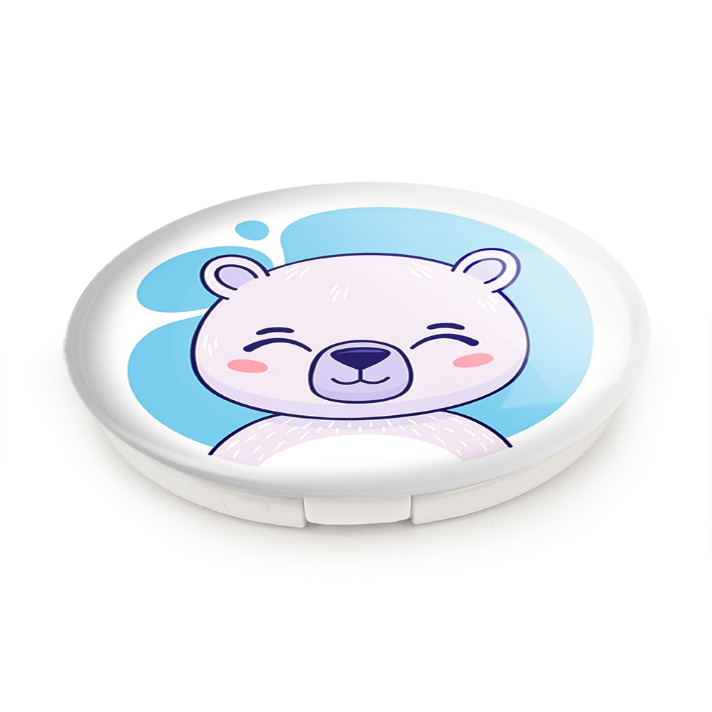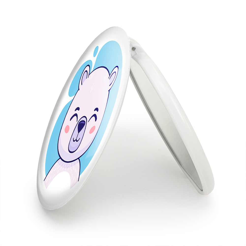 آینه های تاشو خرس قطبی حیوانات بامزه خندالو، از جنس پلاستیک فشرده ABS تولید شده و به رنگ سفید می باشد. یکی از آینه ها ابعاد واقعی را نشان داده و دیگری با قابلیت بزرگنمایی، جزئیات را بهتر نمایش می دهد. ابعاد هر یک از آینه ها، دایره ای به قطر 7.5 سانت می باشد که نه خیلی بزرگ و غیر قابل استفاده در کیف آرایشی ست و نه خیلی کوچک که تصویر خاصی در آن مشاهده نشود. آینه تاشو خرس قطبی حیوانات بامزه سایزی استاندارد و کارآمد دارد و در هر کیفی جا میگیرد. چاپ طرح بوسیله چاپگرهای دیجیتال شش رنگ با شفافیت و کیفیتی مثال زدنی بر روی یک وجه از بدنه ی آینه انجام گرفته و با روکش لمینت حرارتی پوشیده شده که در مقابل آسیب و خط و خش مقاوم بوده و کیفیت بالایی دارد. درب آینه بوسیله قفل بدنه ی آن، باز نمی ماند و کاملا بسته می شود و مناسب قرار گیری در کیف لوازم آرایش و کیف های کوچک دستی نیز هست. آینه های تاشو خرس قطبی حیوانات بامزه خندالو با تنوع طرحی بسیار بالا، سلیقه هر نوع مخاطبی را تامین میکند.