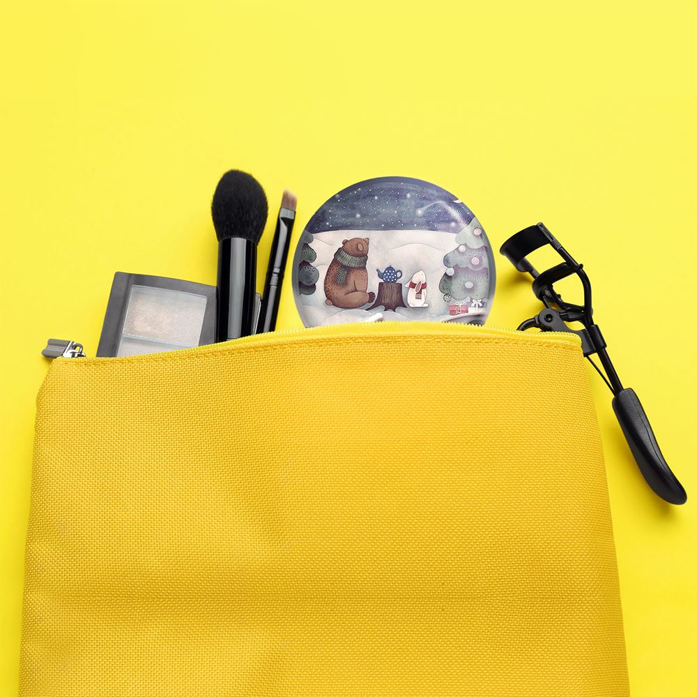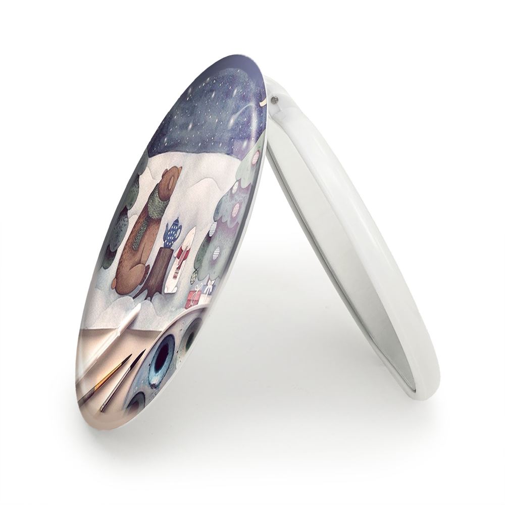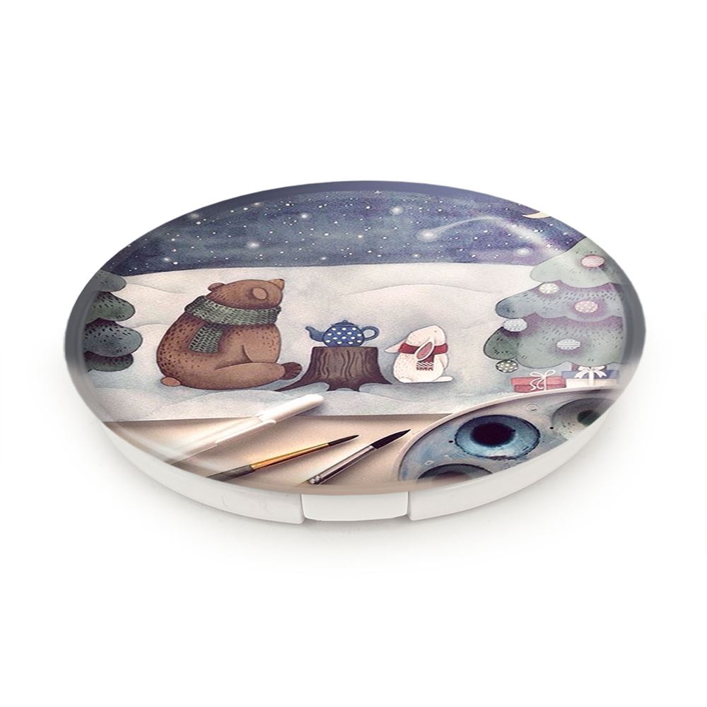 آینه های تاشو خرس و خرگوش خندالو، از جنس پلاستیک فشرده ABS تولید شده و به رنگ سفید می باشد. یکی از آینه ها ابعاد واقعی را نشان داده و دیگری با قابلیت بزرگنمایی، جزئیات را بهتر نمایش می دهد. ابعاد هر یک از آینه ها، دایره ای به قطر 7.5 سانت می باشد که نه خیلی بزرگ و غیر قابل استفاده در کیف آرایشی ست و نه خیلی کوچک که تصویر خاصی در آن مشاهده نشود. آینه تاشو خرس و خرگوش سایزی استاندارد و کارآمد دارد و در هر کیفی جا میگیرد. چاپ طرح بوسیله چاپگرهای دیجیتال شش رنگ با شفافیت و کیفیتی مثال زدنی بر روی یک وجه از بدنه ی آینه انجام گرفته و با روکش لمینت حرارتی پوشیده شده که در مقابل آسیب و خط و خش مقاوم بوده و کیفیت بالایی دارد. درب آینه بوسیله قفل بدنه ی آن، باز نمی ماند و کاملا بسته می شود و مناسب قرار گیری در کیف لوازم آرایش و کیف های کوچک دستی نیز هست. آینه های تاشو خرس و خرگوش خندالو با تنوع طرحی بسیار بالا، سلیقه هر نوع مخاطبی را تامین میکند.